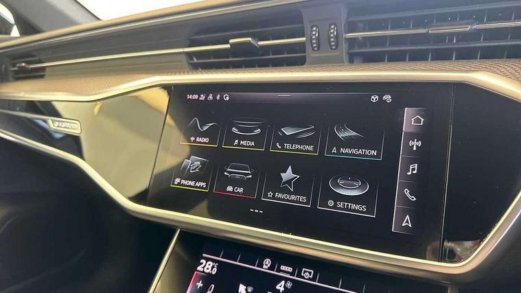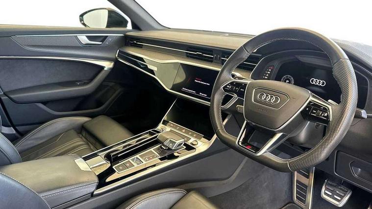Matt brushed aluminium dark inlays, LED Interior Ambient Lighting Pack - A6, Non smoking pack - A6, 20" 5 V spoke star design Audi sport cast aluminium alloy wheels in matt titanium look, Anti theft alarm with tow away protection, Anti-theft wheel bolts and wheel loosening detection, Immobiliser, Keyless Go, Remote central locking, Audi music interface, Audi sound system, Auxiliary input socket, DAB Digital radio, USB connection, 3 point seatbelts on all seats, Airbags - Front side, front and rear including head, Audi pre-sense front, Black seatbelts, EBD - Electronic brakeforce distribution, Electromechanical parking brake, Electronic Stability Control (ESC) including ABS, ASR and EDL, Extended pedestrian protection measures, Seatbelt monitoring, Tyre pressure warning light, Warning triangle and first aid kit, Electric front/rear windows, Frameless auto dimming interior rear view mirror, Gloss black exterior mirror housings, Gloss black highlights on the exterior area of the Audi Single frame, Gloss black highlights on the front and rear bumpers, Gloss black highlights on the radiator grille, Gloss black highlights on the side windows trim strips, Headlight washers, Heat insulating glass in side and rear windows, Heat insulating glass in windshield, LED rear lights, LED signature front daytime running light, Matrix LED headlights with dynamic rear indicators, Matt black rear diffuser with diffuser strip and tailpipes in chrome, Matt black side air intake grille with inlay in matt aluminium, Privacy glass, Rain and light sensors, Signature rear LED light design, 2 zone deluxe electronic climate control, 4 way electric lumbar support for driver and front passenger, 40/20/40 split folding 3 rear seat bench in 3 parts with rear centre armrest, Black cloth headlining, Electrically adjustable front seats with driver memory, Front centre armrest, Front head restraints, Front/rear floor mats, Heated front seats, Height/reach adjust steering wheel, Illuminated door sill trims with S logo, Illuminated sun visors with vanity mirrors, ISOFIX child seat mounting and Top Tether with front passenger airbag deactivation, Leather gear knob, Rear headrests, Stainless steel pedals and foot rest, Tool kit and car jack, 7" high resolution colour driver information display system, Audi connect safety and service (e-call), Audi drive select, Audi parking system plus - acoustic and visual park assist system for front and rear, Audi smartphone interface, Automatic start/stop system with coasting functionality, Bluetooth interface, Electric boot lid release, Lane departure warning system, MMI navigation with MMI touch + twin touch screens 8.8" and 8.6" with haptic and acoustic feedback, Progressive steering, Rear view camera, Service interval indicator, Voice control system, 12V Mild hybrid, 24 litre AdBlue tank, Diesel particulate filter, Quattro on demand, Sports suspension,