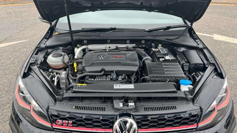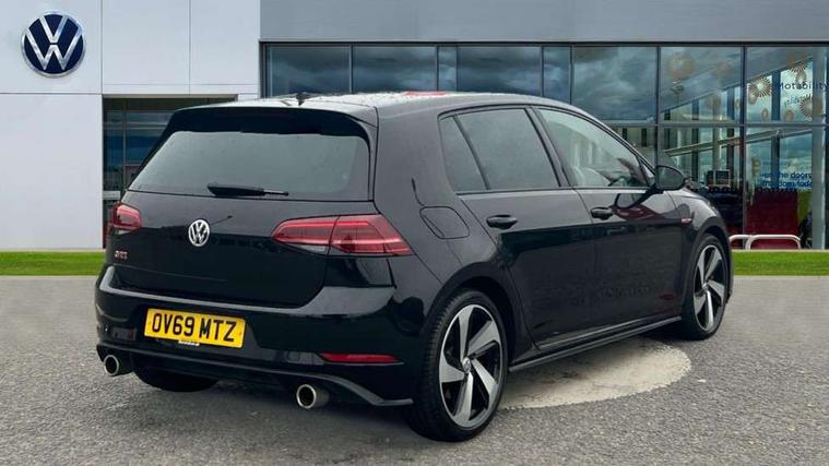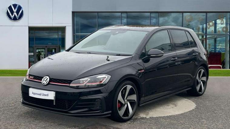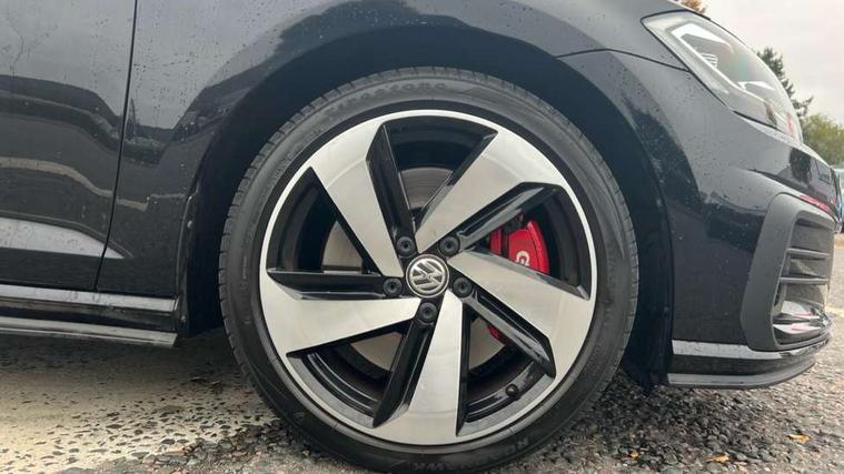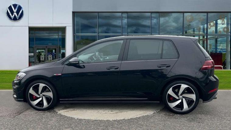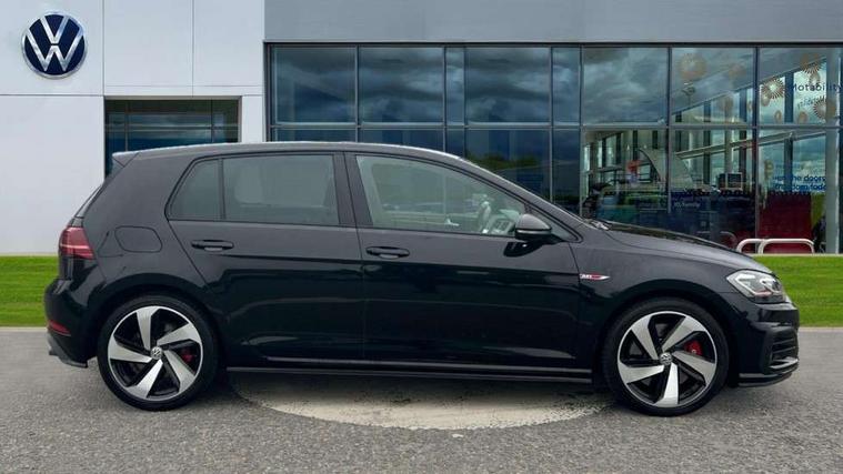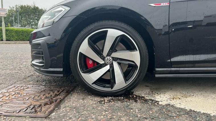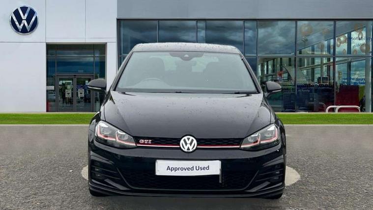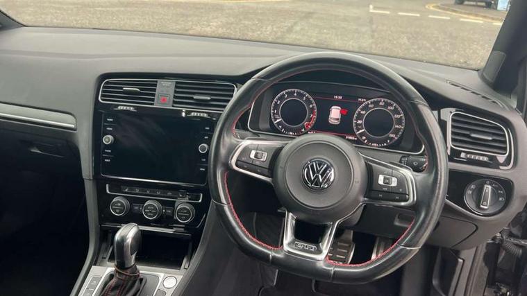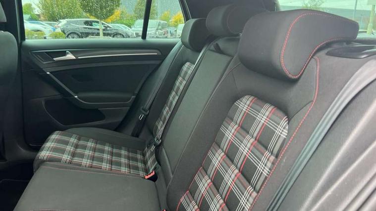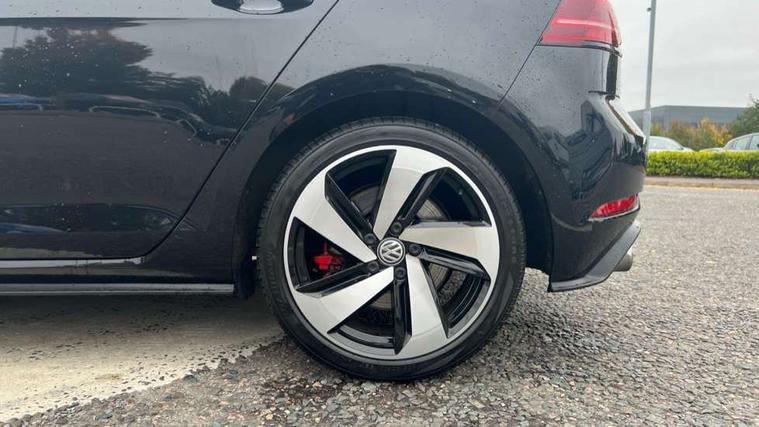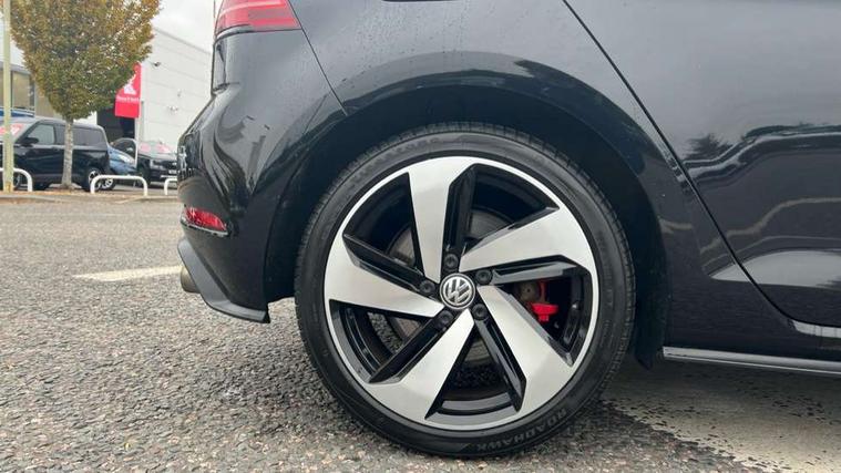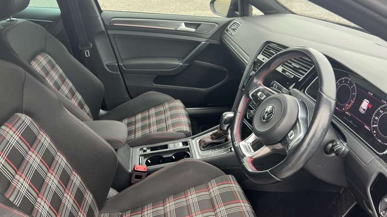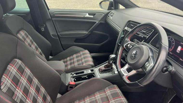 Chrome plated air vent surround, Chrome plated electric mirror adjustment switch surround, Chrome-plated light switch surround, Honeycomb black decorative inserts, Piano black decorative inserts in centre console, Tumbler decorative inserts, Ambient lighting pack - Golf, Convenience Pack - Golf, Light and Sight pack - Golf, Mirror pack - Golf, Steel space saver spare wheel, Alarm with interior protection and deactivation via infotainment system, Electronic engine immobiliser, Keyless entry with start/stop button on centre console and front centre armrest, Composition media system, DAB Digital radio receiver, Driver Personalisation profile selection, MP3/WMA compatability, Multi device interface (MDI) with USB connection, Premium USB cable in choice of either Apple or Android smartphone compatibility, SMS Functionality, USB and SD card connectivity, Volkswagen media control, 3 rear three point seatbelts, Airbags - Driver's and front passenger's, curtain airbag, Driver's knee, front side impact and passenger's airbag deactivation switch, Anti-lock Braking System (ABS) with Hydraulic Brake Assist (HBA), Automatic post collision braking system, Child locks on rear doors, Driver/Passenger optimised head restraints, Electronic parking brake with auto hold, Electronic stability control (ESC) including Electronic differential lock (EDL) and ASR (Traction control) with deactivation via infotainment system, Front ventilated disc brakes and rear disc brakes, Larger diameter brake discs and GTI logo on red brake calipers, Pre crash preventive occupant protection, Three point height adjustable front seatbelts with tensioners, Tyre pressure loss indicator, 3D-LED tinted rear light clusters with indicator sweep function, Black front air intake and radiator grille with chrome insert, Body colour door handles, Body colour door mirrors with integrated indicators, Body colour rear roof spoiler, Electric front windows, Electric rear windows, Electrically adjustable and heated door mirrors, Extended sill strips flared, Front and rear unique GTI badging in red, Fully galvanised body, GTI logo in red on front and back, GTI logo lettering on front wings on right and left, Heated rear windscreen, High level 3rd brake light incorporating LED Technology, Honeycomb front air intake - Black, Honeycomb radiator grille with red stripe, LED daytime running lights incorporating red stripe, LED front fog lights, LED headlights with dynamic light assist, Rear fog lamp, Rear number plate lights incorporating LED technology, Rear window aerial, Rear window wash/wipe with intermittent wipe, Reflectors in all doors, Remote electrically foldable door mirrors, door mirror puddle lights and reverse activated kerb-view adjustment on passengers door mirror, Shiny black aerofoil downside, Twin exhaust tailpipe, Uniquely shaped front/rear bumpers, Windscreen wipers/ intermittent wipe + 4 position delay, 12V socket in luggage compartment, 3 rear headrests, 4 load lashing points in luggage compartment, 60/40 split folding rear seat backrest, Bag hook in luggage compartment x 2, Black decorative sleeve on gear handles, Black headlining, Black rear diffuser with chrome exhaust tailpipes in left and right, Black roof lining, Climate control - 2 zone electronic air conditioning with automatic air recirculation and allergy filter, Cooled glovebox, Dust/pollen filter, Front + rear carpet mats, Front centre armrest with storage compartment and two rear air vents, Front seat back storage pockets, Grab handles front x 2, rear x 2 with integrated coat hooks, Height and reach adjustable steering wheel, Illuminated door sills, Illuminated vanity mirrors, Instrument lighting white adjustable panel illumination, Interior light delay, Isofix preparation for 2 rear child seats, Leather gear knob and handbrake grip, Load through provision with rear centre armrest and cupholders x2, Luggage compartment lighting, Overhead storage box, Stainless steel pedals, Storage box in luggage compartment, Storage compartment in roof console with cover, Storage compartments in front doors, Storage compartments in rear doors, Stowable luggage compartment cover, Sun visors, Three spoke multifunction leather steering wheel with GTI logo and red stitching including gearknob gaiter, Variable boot floor, height adjustable and removable, 'Lights On' Reminder warning buzzer, ACC - Adaptive cruise control with front assist, forward collision warning, distance monitoring, city emergency brake and speed limiter, Active information display - 12.3" high resolution TFT display, Bluetooth telephone and audio connection for compatible devices, Brake pad wear indicator warning light, Driver alert system, Driving Mode Selection with four preset modes - Eco, normal, sport or individual modes, Multifunction computer with visual gear change recommendation for fuel consumption, Progressive steering, Push tank flap, Rear view camera, Speedo, rev counter, electronic odometer, trip, service interval display, exterior temperature and fuel gauge, Think blue trainer driver tips and journey analysis, Unique GTI instrument cluster, Warning buzzer and light for front seatbelts unfastened, Anti-tramp function, Battery regeneration during braking, Lowered sports suspension, Mechanical limited slip differential,