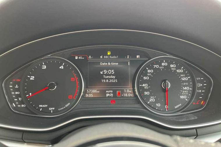 Non Smokers pack, Tyre repair kit, Anti theft alarm system, Anti theft wheel bolts, Immobiliser, Keyless Go, Remote central locking, CD player, DAB Digital radio, Two SDXC card slots, 3x3 point rear seatbelts, 6 airbags - Driver, front passenger, curtain and side airbags, Electromechanical parking brake, Electronic Stabilisation Control (ESC) including ABS, ASR and EDL, Front passenger airbag deactivation, Height adjustable front seatbelts, Hill hold function, Multi-Collision braking, Pop-up bonnet for pedestrian protection, Pre sense city, Seatbelt monitoring, Tyre pressure warning, Variable restraint system, Warning triangle and first aid kit, Air inlet in matt aluminium with horizontal inlay, Aluminium roof frame and window trim, Auto dimming rear view mirror, Black grained rear grille, Body colour bumpers, Body coloured door mirrors, Chrome plated exhaust pipe, Electric adjustable heated door mirrors, Electric front windows, Front fog lights, High beam assistant, High gloss black B pillar trims and triangular rear door trim, Honeycomb side air inlet in titan black, Rain and light sensors, Rear diffuser in Twilight grey matt with honeycomb grille, S line badges on front wings, S Line body styling, S Line front and rear bumpers, S Line side skirts in black, S line sill plates, Twilight grey matt radiator grille in matt aluminium inlay, Windscreen with acoustic glazing, 2 x USB charging port with aux input socket, 40/20/40 split folding 3 seater rear bench seat, Adjustable steering column, Black headlining, Black perforated leather gearknob, Centre console with cupholders, Contrast stitching on seats, steering wheel and gear lever gaiter, Deluxe 3 zone electronic climate control, Front centre armrest, Front head restraints, Front/rear floor mats, Gearshift paddles, Illuminated door sill trim with S logo, ISOFIX child seat mounting and top tether, Jack and tool kit, Luggage compartment mat, Rear headrests, S embossed logo on front sport seats, Stainless steel pedals and foot rest, 7" Colour driver information system, Audi connect, Audi drive select, Audi parking system plus with front and rear sensors, Audi smartphone interface, Automatic start-stop system with coasting functionality and efficiency programme, Bluetooth interface, Electro-mechanical power steering, MMI Navigation, Power tailgate, Service interval indicator, Voice control system, Diesel particulate filter,