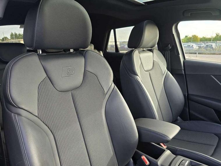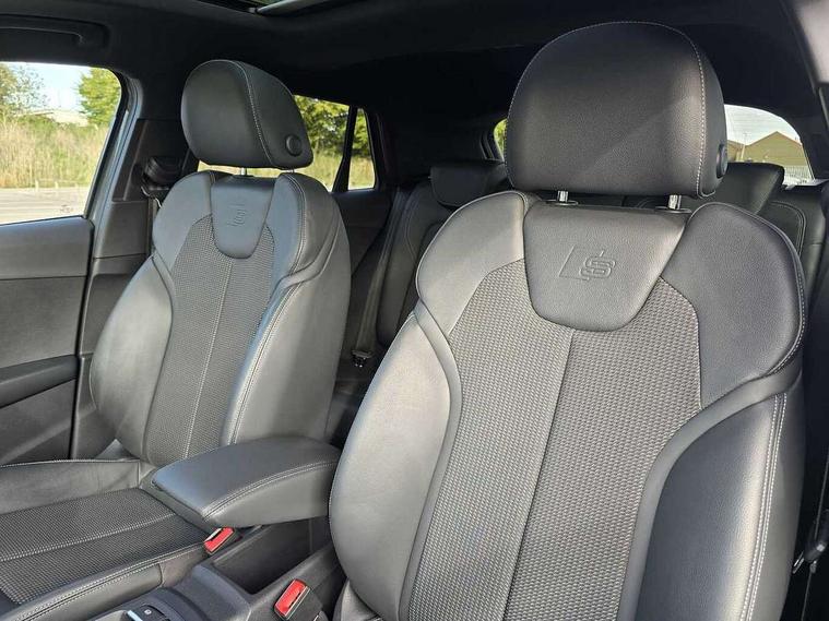 Audi drive select, Audi smartphone interface, Automatic start/stop system with recuperation, Bluetooth interface includes bluetooth audio streaming, Cruise control, MMI - Multi Media Interface control system, MMI SD card integrated nav with 3D map display, dynamic route guidance with TMC, MMI search, natural voice recognition and myAudi special destinations, Power operated tailgate, Progressive steering, Service interval indicator, Dynamic suspension, 2 x SDXC card reader, Audi music interface - apple iPod, apple iPhone, USB storage media, compatible MP3 players, 2 x USB charging points and 1 x Aux-in, CD Drive, DAB digital radio and AM/FM radio, MMI radio plus with 7" colour MMI screen and MMI controller, Black window trims, Bumper in full body colour paint finish, Chrome exhaust tailpipe, Electrically adjustable and heated door mirrors with integrated LED side indicators, Front and rear electric windows, Front underbody guard and rear diffuser trim in selenite silver, Front windscreen with grey tinted sunband, Headlight washers, Interior mirror, LED headlights with LED rear lights + dynamic rear indicators, LED indicator lights, Manual folding door mirrors, Privacy glass - dark tinted rear and rear side windows from B-pillar backwards, Rain and light sensors, Rear wiper, S Line body styling - front and rear bumpers, side skirts, radiator grille, rear diffuser insert and front air intakes, 3 spoke flat bottomed high multi-function leather sport steering wheel with gearshift paddles, 60/40 split folding rear seat bench, Black cloth headlining, Floor mats with contrast stitching, Front centre armrest, Front headrests, Front sport seats with S embossed logo, Height/reach adjust steering wheel, Illuminated door sill trims with S logo, ISOFIX child seat mounting for front passenger with airbag deactivation and outer rear seat including top tether attachment point for outer rear seats, Manual seat adjustment including seat height adjustment for front seats, Stainless steel pedals, Storage compartments - Glovebox, cupholder compartment in centre console, storage compartment in rear centre console, front and rear door pockets, Three rear headrests, Black styling pack - Q2, LED interior lighting pack - Q2, Non smoking pack - Q2, 3x3 point rear seatbelts, 6 airbags - Front, curtain and front side airbags, Electromechanical parking brake, Electronic stabilisation control including ABS, ASR and EDL, Extended and proactive pedestrian protection, Hill hold assist, Multi collision brake assist, Pre-sense front with pedestrian recognition, Seatbelt monitoring, Tyre pressure warning light, Warning triangle and first aid kit, Anti theft alarm, Anti theft wheel bolts, Central locking system with remote control key, Electronically operated child locks, Aluminium interior element, Black inlays - decorative trims in black for centre console and front and rear door pull handles,