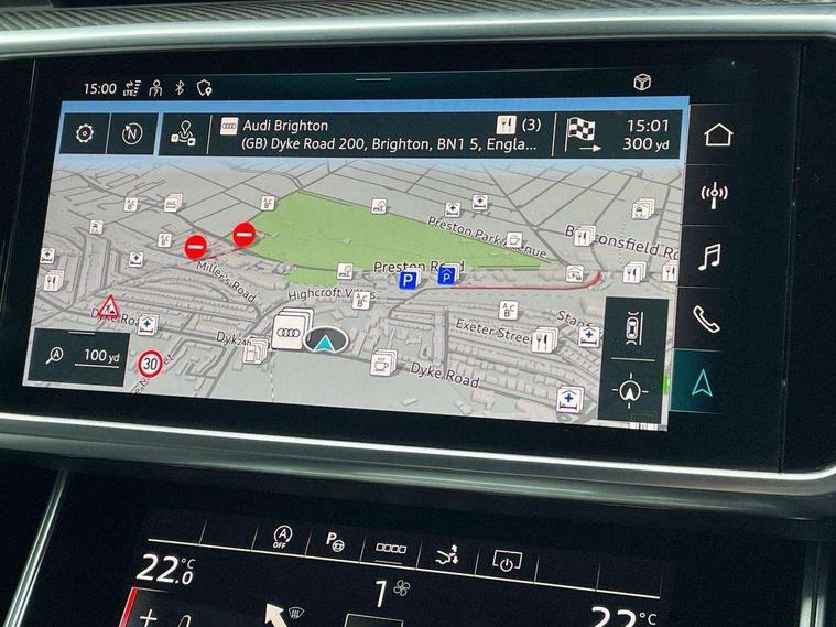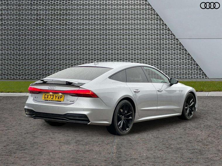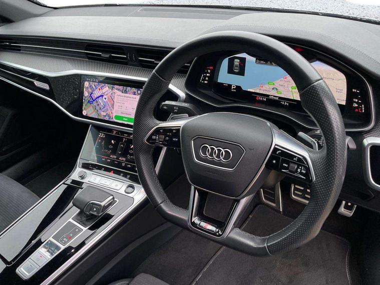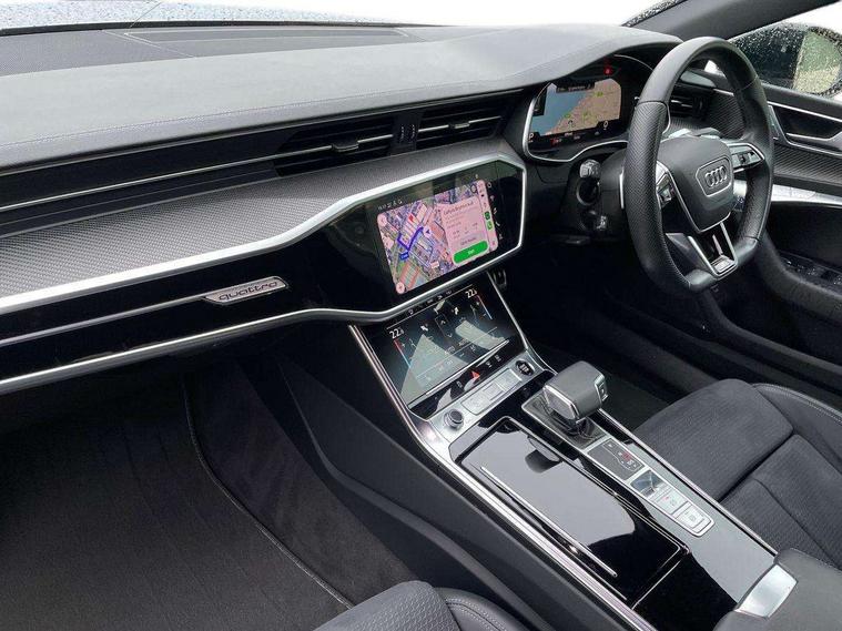 Carbon twill inlays, LED interior ambient lighting pack - A7, Non smoking pack - A7, 20" 5 double arm design Audi sport cast aluminium high sheen matt grey look alloy wheels, Anti theft alarm with tow away protection, Anti-theft wheel bolts and wheel loosening detection, Immobiliser, Keyless Go, Preparation for tracking system, Remote central locking, Audi music interface - 2 USB ports with charger and data functions, Audi sound system with 6 channel amplifier, 180 watt amplifying capacity and 10 loudspeakers including subwoofer, Auxiliary input socket, DAB digital radio module, 3 point seatbelts on all seats, Audi pre-sense front, Driver and passenger airbags, Electromechanical parking brake, Electronic stabilisation control including ABS, ASR and EDL, Extended pedestrian protection measures, Hill hold assist, Manual child lock in rear doors, Seatbelt monitoring, Tyre pressure warning light, Warning triangle and first aid kit, Coming/leaving home animations in front and rear, Frameless auto dimming interior rear view mirror, Front and rear electric windows, Gloss black highlights on the exterior area of the Audi Single frame, Gloss black highlights on the front and rear bumpers, Gloss black highlights on the radiator grille, Gloss black highlights on the side windows trim strips, HD Matrix LED headlights with dynamic front and rear indicators, Headlight washers, Heat insulating glass in side and rear windows, Rain and light sensors, Rear side wing doors, Rear wiper, Retractable rear spoiler, S line air inlet design with inlay in high gloss black, S Line badge on front fender, S line badge on front grille, S Line Black rear diffuser with chrome inlays and rear grille, S Line side skirts, Signature LED daytime running lights, Third brake light, Towbar preparation, Windscreen with heat-insulating glass, 2 zone deluxe electronic climate control, 4-way electric lumbar support, 40/20/40 split folding 3 seater rear seat bench with rear centre armrest, Black cloth headlining, Electrically adjustable front seats - driver seat with memory, Front and rear headrests, Front centre armrest, Heated front seats, Height/reach adjust steering wheel, Illuminated door sill trims with S logo, Illuminated sun visors with vanity mirrors, ISOFIX child seat mounting and top tether in front and outer rear seats with front passenger airbag deactivation, Leather gear knob, Leatherette upper instrument panel and door shoulders, Luggage compartment floor, S line front and rear floor mats with contrast stitching, Single front passenger seat, Stainless steel pedals and foot rest, Tool kit and car jack, Audi connect safety and service (e-call), Audi connect with Amazon Alexa Integration, Audi drive select, Audi parking system plus - acoustic and visual park assist system for front and rear, Audi smartphone interface, Audi virtual cockpit - 12.3" high resolution LCD digital instrument cluster display, Automatic start/stop system with coasting functionality, Bluetooth interface, Colour driver's information system display, Electric boot lid release, Lane departure warning system, MMI nav plus with MMI touch + 10.1" and 8.6" HD haptic touch screen/3D city models/country information/online map/route info and personal route assist, Operating buttons in black, glass look with haptic feedback, Power operated tailgate, Progressive steering, Rear view camera, Service indicator, Voice control system, Sports suspension,