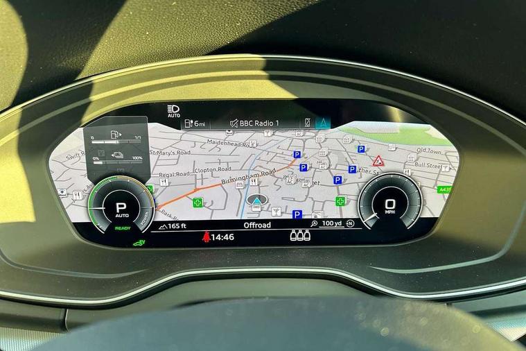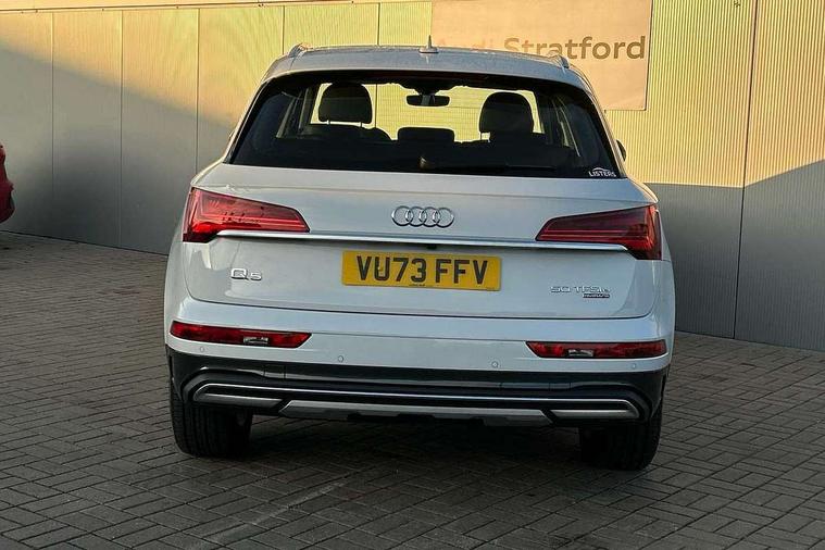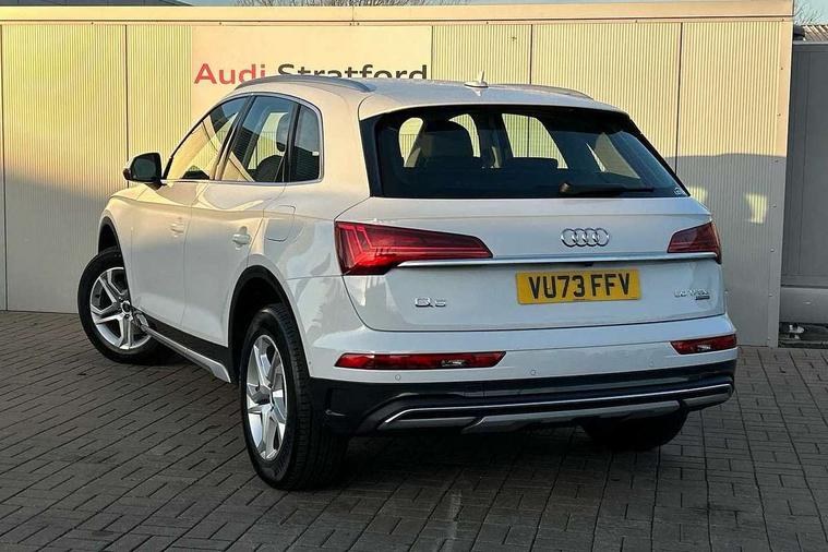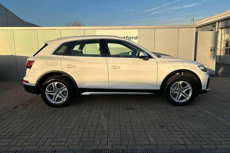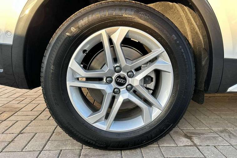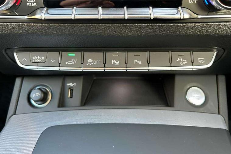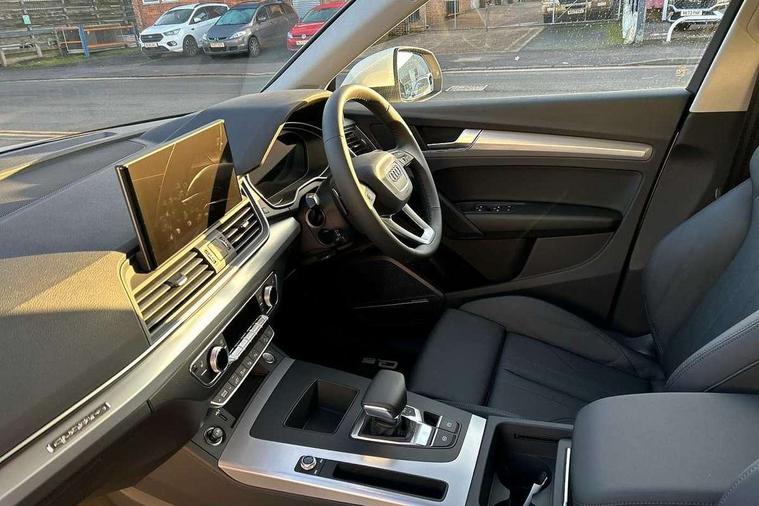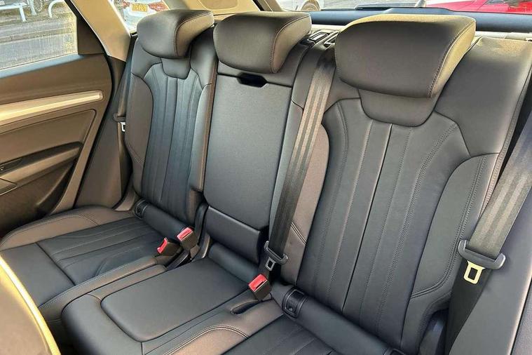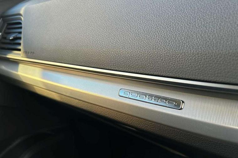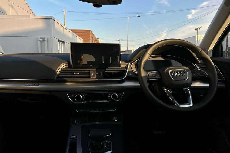Air vents inserts and centre console in matte black, Aluminium rhombus inlay, High gloss pack - Q5, LED interior light pack - Q5, Tyre repair kit, Anti theft alarm, Anti-theft wheel bolts, Remote central locking, Remote control key with SAFELOCK and keyless go, 8 loudspeakers, DAB Digital radio, 3 point seatbelts on all seats, 6 airbags - Driver, front passenger, curtain and side airbags, Attention and drowsiness assist, Electrically operated child locks on rear doors, Electromechanical parking brake, Electronic stabilisation control including ABS, ASR and EDL, First aid kit with warning triangle and vests, Front passenger airbag deactivation, Hill descent control, Hill hold assist, ISOFIX child seat mounting for front passenger seat and ISOFIX child seat mounting with Top Tether for outer rear seats, Multi collision brake assist, Pop-up bonnet for pedestrian protection, Pre sense city, Seatbelt monitoring, Tyre pressure warning, Acoustic windscreen, Air inlets in matt anthracite black with blades in matt aluminium silver, Aluminium roof rails, Auto dimming door mirrors, Auto dimming frameless rear view mirror, Automatic headlight adjustment, Automatic headlights and windscreen wipers, Body colour bumpers, Body colour door mirrors, Chrome plated exhaust trims, Daytime running lights, Door sills in Selenite silver, Electric adjustable/heated/folding door mirrors, Front and rear electric windows, LED 3rd brake light, LED headlights and LED tail lights, Lower bumpers painted in contrast Manhattan grey, Matt selenite silver underbody protection, Matt twilight grey radiator grille with chrome vertical struts, Rear chrome trim strip below lights, Rear diffuser strip in selenite silver, Rear side wing doors, Rear spoiler, Rear wiper, Roof bars, 2 x USB charging port with aux input socket, 3 rear headrests, 3 seater rear seat bench, 3 spoke multifunction leather steering wheel with shift paddles, Comfort front centre armrest, Deluxe 3 zone electronic climate control, Door sills trims with aluminium inlays, Front head restraints, Front sport seats, Front/rear floor mats, Heated front seats, Height/reach adjustable steering column, Loading edge protection in stainless steel, Luggage compartment cover, Manual seat adjustment with 4-way electric lumbar support, Rear seat bench plus-adjust for forwards/backwards position/backrest angle, load through hatch and remote backrest release, Single front passenger seat, Sunvisors with vanity mirrors, Tool kit, Twin leather upholstery, Acoustic front and rear parking sensor, Audi connect safety and service (e-call), Audi drive select, Audi virtual cockpit with 12.3" screen with specific display, Audi wireless smartphone interface, Automatic start-stop system with coasting functionality and efficiency programme, Bluetooth interface, Camera based traffic sign recognition, Electro - mechanical power assisted steering, Lane departure warning, MMI navigation plus with 10.1" touch screen, Power tailgate, Reversing camera, Service interval indicator, Voice control system with Audi hotword activation "Hey Audi", 3 pin 10 amp domestic charging cable, 7.4 kW onboard charger, Dynamic suspension, Industrial connector CEE 32A, 230V, Quattro on demand, Type 2 mode 3 22kW 32 amp charging cable, Type 2 socket for AC charging,