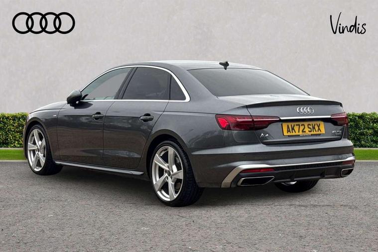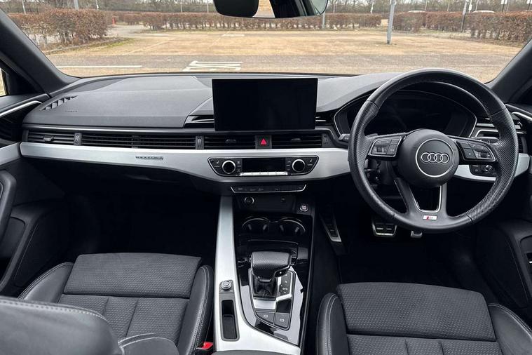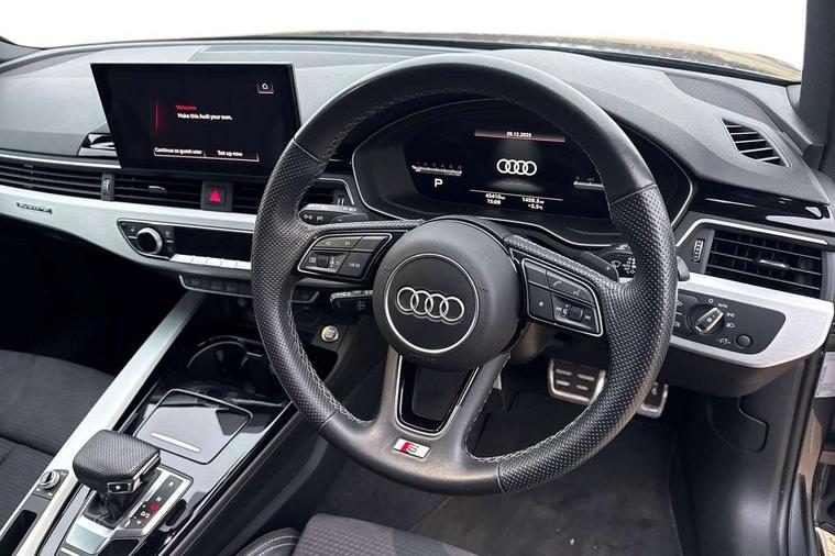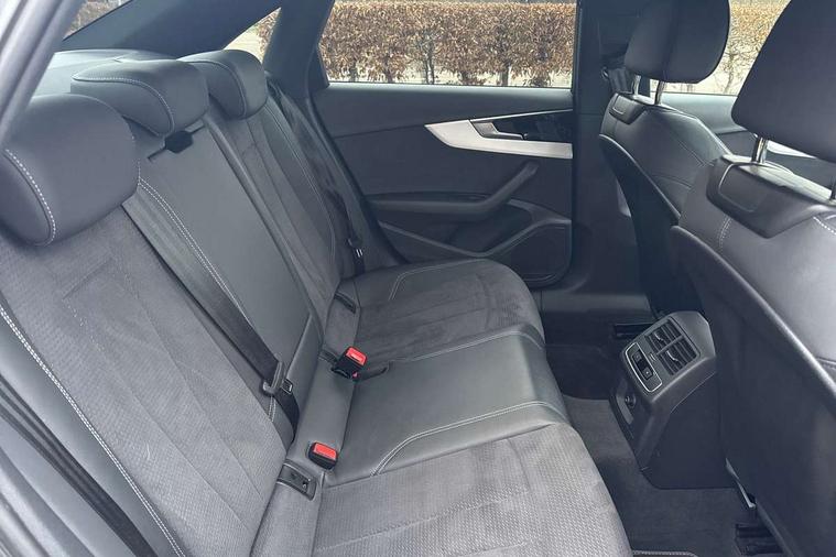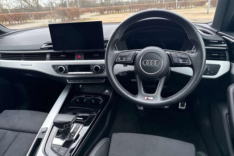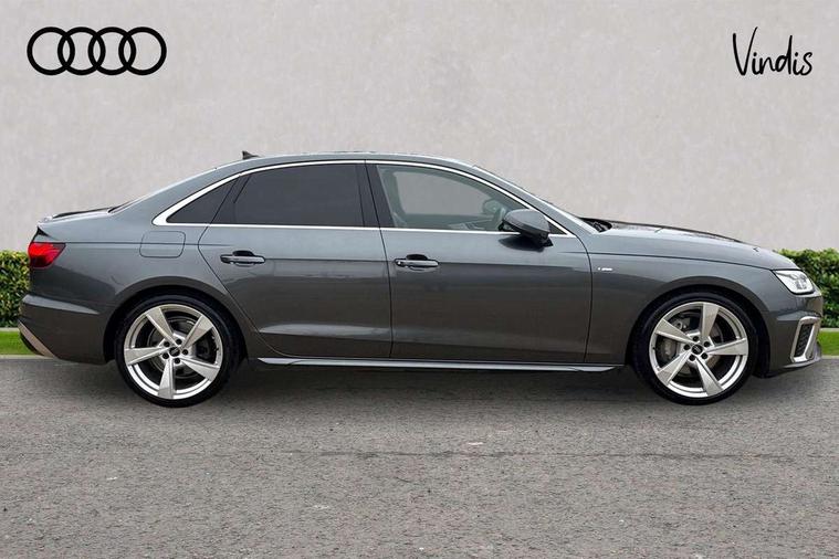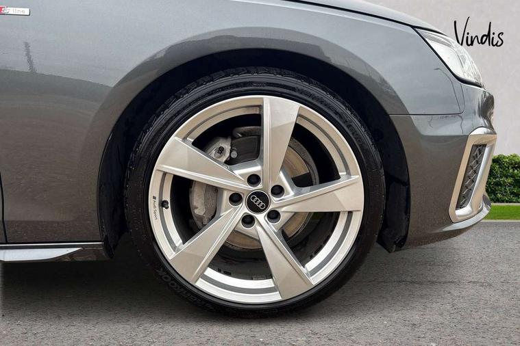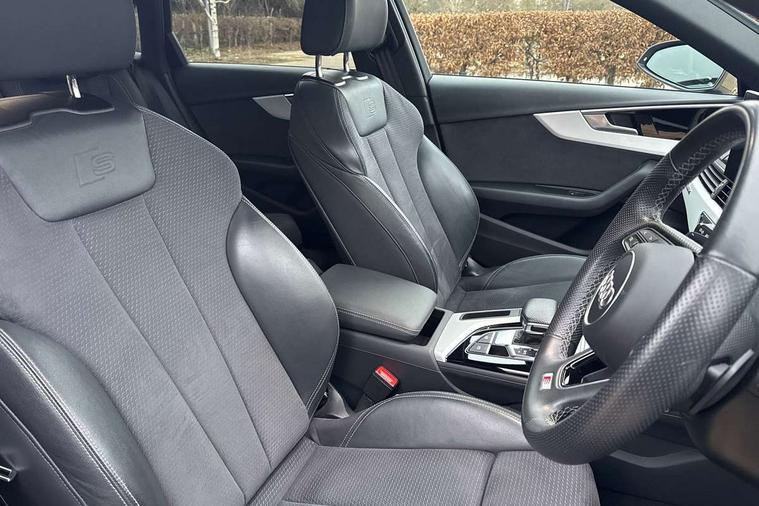Matt brushed aluminium inlays, High gloss package - A4, LED Interior light pack - A4/S4, Tyre repair kit, Anti theft alarm, Anti theft wheel bolts, Central locking, Keyless Go, 2 USB charging ports, 8 passive loudspeakers, DAB digital radio reception, 3 rear seatbelts, 6 airbags - Driver, front passenger, curtain and side windows, Electronic Stabilisation Control (ESC) including ABS, ASR and EDL, Hill hold assist, Multi collision brake assist, Pop-up bonnet for pedestrian protection, Pre sense city, Rear door child safety locks, Seatbelt monitoring, Warning triangle and first aid kit, Auto dimming rear view mirror, Body colour door handles, Body colour front spoiler lip, Body colour side sill trim, Body coloured door mirrors, Electrically folding auto dimming/adjustable/heated door mirrors with LED side indicators and kerb view function for passenger side, Grained matt black side air inlets with matt aluminium silver inlay, High beam assistant, Honeycomb structure radiator grille in grained matt black, LED headlights with LED rear lights + dynamic rear indicators + headlight adjustment and high beam, turning light + LED daytime running lights, LED third brake light, Matt aluminium silver tailpipe trim, Privacy glass, Rain and light sensors, Rear boot, Rear side wing doors, S Line badges on the front wings, S line front and rear bumpers with side skirts, S Line rear diffuser in matt titanium black with trim strip in matt aluminium silver, Variable intermittent front wash/wipe, Windscreen with acoustic glazing, 4 way electric lumbar support for driver and front passenger, 40/20/40 split folding 3 rear seat bench in 3 parts with rear centre armrest, Black cloth headlining, Black perforated leather gearknob, Contrast stitching on seats, steering wheel and gear lever gaiter, Deluxe 3 zone electronic climate control, Door sill trims with aluminium inlay, Front and rear head restraints, Front centre armrest, Heated front seats, Illuminated door sill trims with S logo, ISOFIX child seat mounting and top tether, Manual seat adjustment, Single front passenger seat, Stainless steel pedals and foot rest, Tool kit, Audi connect safety and service (e-call), Audi connect with Amazon Alexa Integration, Audi drive select, Audi smartphone interface, Audi virtual cockpit, Automatic start-stop system with coasting functionality and efficiency programme, Bluetooth interface, Electric boot lid release, Electromechanical power steering, Email, calendar and text messages displayed via MMI, MMI Navigation plus with MMI touch includes 10.1" high resolution colour MMI display, 3D map, Voice control system, 58 Litre fuel tank, Sports suspension lowered by 23mm,