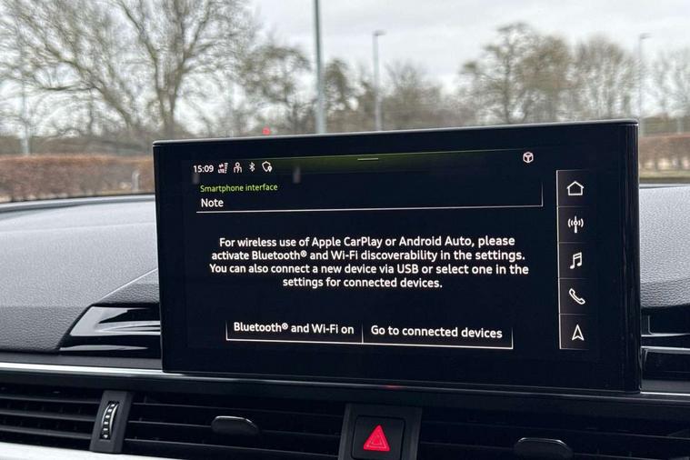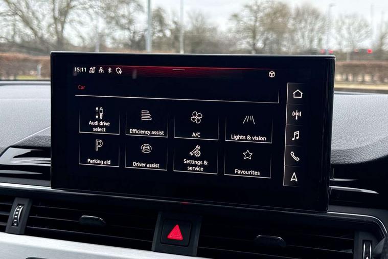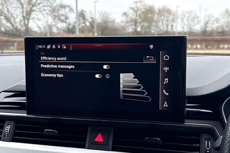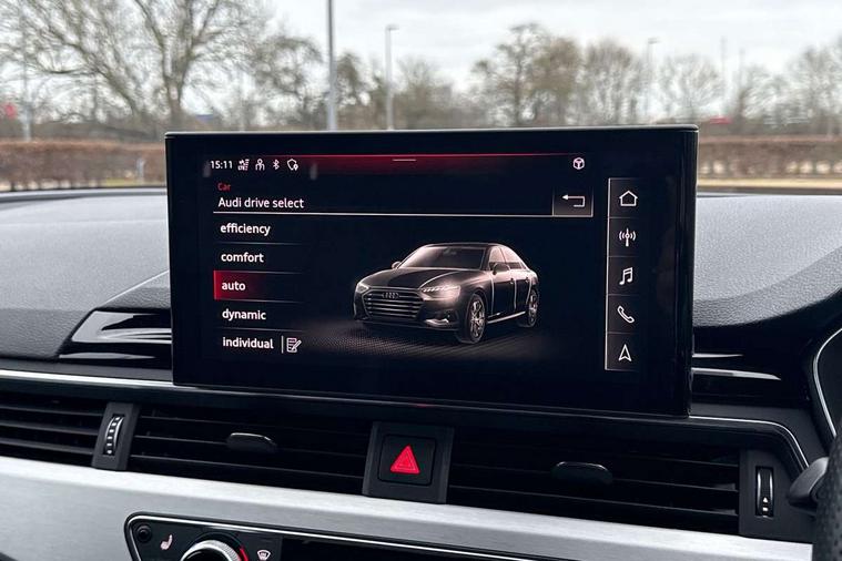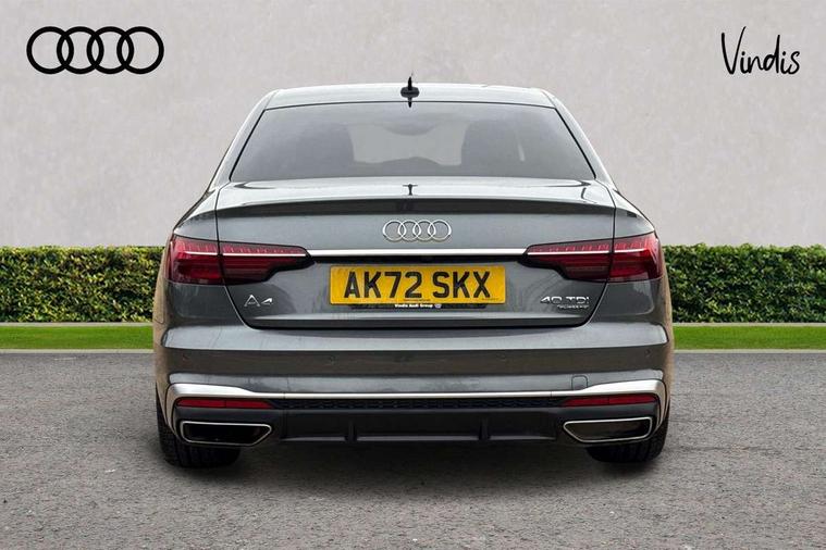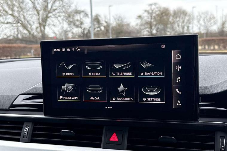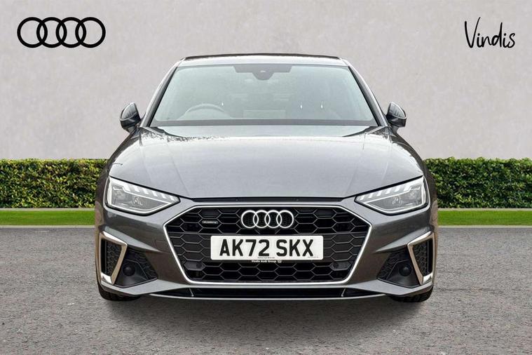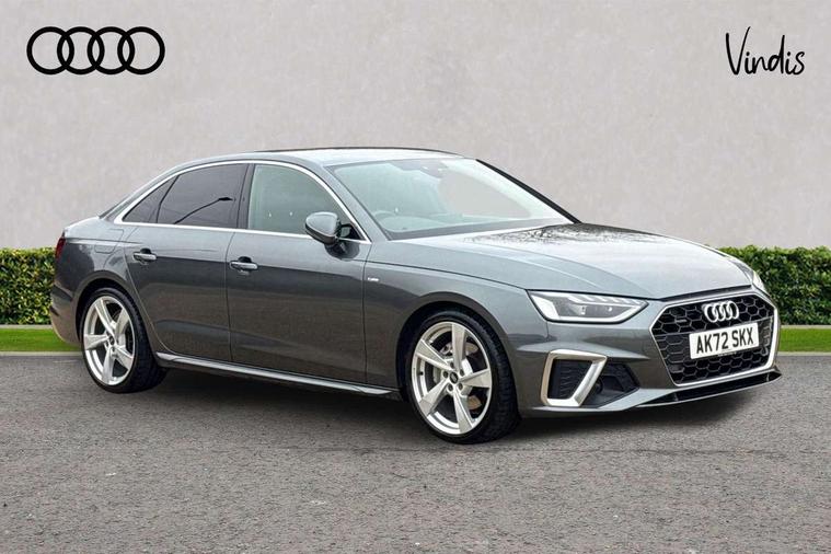 Matt brushed aluminium inlays, High gloss package - A4, LED Interior light pack - A4/S4, Tyre repair kit, Anti theft alarm, Anti theft wheel bolts, Central locking, Keyless Go, 2 USB charging ports, 8 passive loudspeakers, DAB digital radio reception, 3 rear seatbelts, 6 airbags - Driver, front passenger, curtain and side windows, Electronic Stabilisation Control (ESC) including ABS, ASR and EDL, Hill hold assist, Multi collision brake assist, Pop-up bonnet for pedestrian protection, Pre sense city, Rear door child safety locks, Seatbelt monitoring, Warning triangle and first aid kit, Auto dimming rear view mirror, Body colour door handles, Body colour front spoiler lip, Body colour side sill trim, Body coloured door mirrors, Electrically folding auto dimming/adjustable/heated door mirrors with LED side indicators and kerb view function for passenger side, Grained matt black side air inlets with matt aluminium silver inlay, High beam assistant, Honeycomb structure radiator grille in grained matt black, LED headlights with LED rear lights + dynamic rear indicators + headlight adjustment and high beam, turning light + LED daytime running lights, LED third brake light, Matt aluminium silver tailpipe trim, Privacy glass, Rain and light sensors, Rear boot, Rear side wing doors, S Line badges on the front wings, S line front and rear bumpers with side skirts, S Line rear diffuser in matt titanium black with trim strip in matt aluminium silver, Variable intermittent front wash/wipe, Windscreen with acoustic glazing, 4 way electric lumbar support for driver and front passenger, 40/20/40 split folding 3 rear seat bench in 3 parts with rear centre armrest, Black cloth headlining, Black perforated leather gearknob, Contrast stitching on seats, steering wheel and gear lever gaiter, Deluxe 3 zone electronic climate control, Door sill trims with aluminium inlay, Front and rear head restraints, Front centre armrest, Heated front seats, Illuminated door sill trims with S logo, ISOFIX child seat mounting and top tether, Manual seat adjustment, Single front passenger seat, Stainless steel pedals and foot rest, Tool kit, Audi connect safety and service (e-call), Audi connect with Amazon Alexa Integration, Audi drive select, Audi smartphone interface, Audi virtual cockpit, Automatic start-stop system with coasting functionality and efficiency programme, Bluetooth interface, Electric boot lid release, Electromechanical power steering, Email, calendar and text messages displayed via MMI, MMI Navigation plus with MMI touch includes 10.1" high resolution colour MMI display, 3D map, Voice control system, 58 Litre fuel tank, Sports suspension lowered by 23mm,
