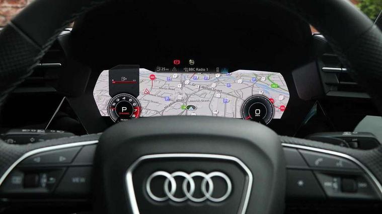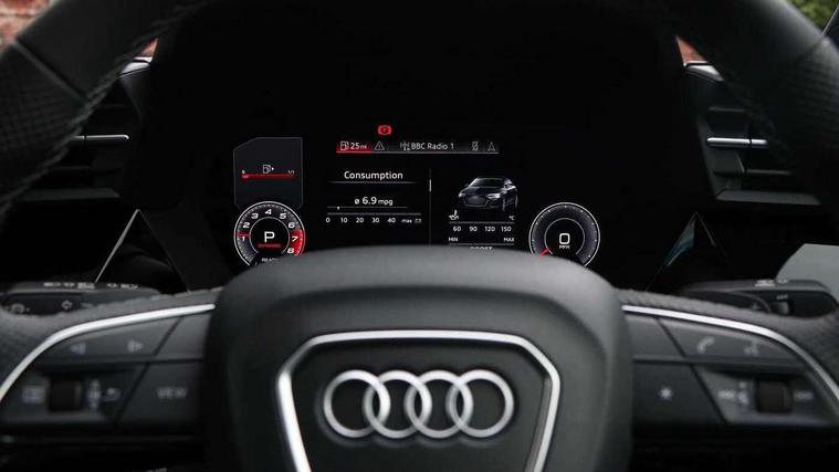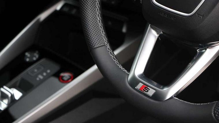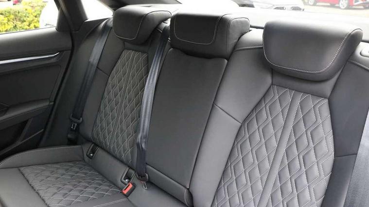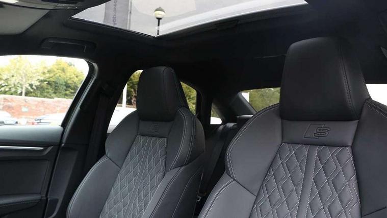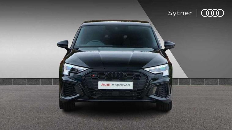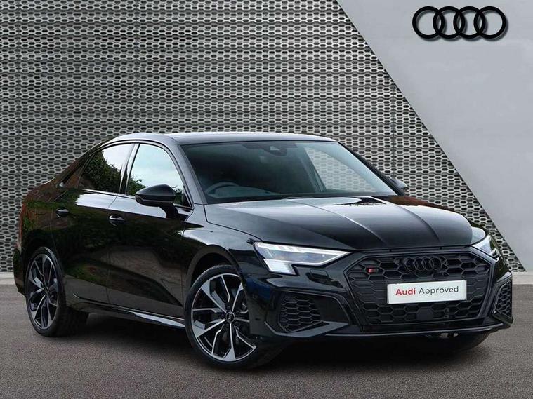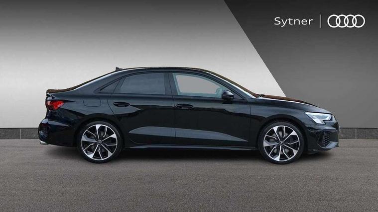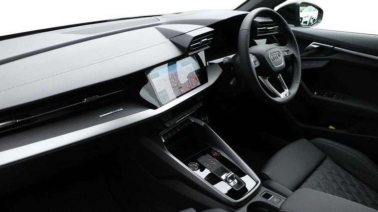 Aluminium air vent surrounds, Carbon inlays, accent surfaces in the dashboard and centre console in platinum grey silk effect paint finish, Aluminium interior elements pack - A3 Saloon, Black styling pack - A3 Saloon Vorsprung, Body styling design pack - S3, Driver Assistance pack - A3 Saloon, Extended ambient lighting pack - A3/S3 Saloon, Storage pack - A3/S3 Saloon, Technology pack pro with 360 camera - A3 Saloon/Voursprung, Anti theft alarm, Anti-theft wheel bolts, Electronically operated child locks, Immobiliser, Remote control central locking, 2x USB Type C ports (for charging and data transfer), CD player, DAB Digital radio, 3x3 point rear seat belts, Driver and front passenger airbag with passenger airbag deactivation, Electronic Stabilisation Control (ESC) including ABS, ASR and EDL, First aid kit with warning triangle and 2 safety vests, Front side airbags with head airbags and interaction airbag, Pre-sense front with pedestrian and cyclist detection, Seatbelt monitoring, Tyre pressure loss indicator, 3rd brake light, Acoustic glass windscreen, Audi Beam uses LEDs to project Vorsprung onto the ground as you exit your S3, Auto dimming frameless rear view mirror, Carbon door mirror housings, Dual branch oval twin tailpipes in chrome plated finish, Electrically adj heated/folding + automatically dimming exterior mirrors with memory + automatic kerb side function for passenger side exterior mirror, Front electric windows, Headlight washers, Heat insulating glass windscreen, Illuminated door sills with aluminium inserts at the front with S logo, Integrated LED indicators in door mirrors, LED daytime running lights, Light and rain sensors, Model and engine designation badges at rear, Privacy glass - dark tinted rear window, rear door and side windows, Rear boot, Rear electric windows, Rear side wing doors, 12V socket and storage compartment in front centre console, 3 seat bench in 2nd row, 3 spoke leather multifunction steering wheel with gear shift paddles, 4 way electrically adjustable lumbar support for driver and front passenger, 60/40 split folding rear seat bench, Black cloth headlining, Dual zone electronic climate control, Fine Nappa leather upholstery with front sports seats S embossed logo, Front and rear centre armrest in leather, Front and rear headrests, Front/rear floor mats, Height and reach adjustable steering wheel, Interior lighting - glove compartment light and right hand side, Luggage compartment floor covering, Single front passenger seat, Stainless steel pedals and front footrest in black, Audi connect emergency call and service, Audi drive select (Auto, Comfort, Dynamic, Efficiency and Individual), Audi smartphone interface, Audi virtual cockpit plus - 12.3" dynamic digital instrument cluster, Automatic start/stop system with recuperation, Bluetooth interface, Collision avoidance assistant, Head up Display, Lane change assistant with exit warning system and rear cross traffic alert, Lane departure warning system, MMI Navigation Plus with high resolution 10.1" colour touch screen display, Power operated tailgate - Luggage compartment lid opens electrically, Progressive steering, Service indicator, Voice control system with natural language interaction, Quattro permanent all wheel drive, S suspension with damper control,