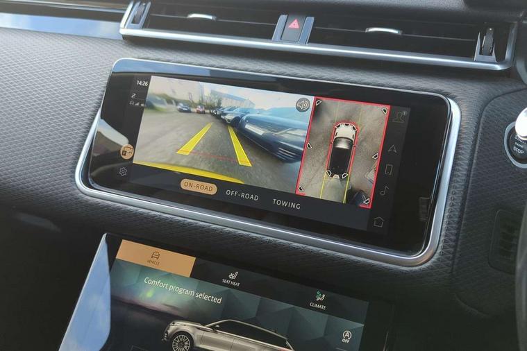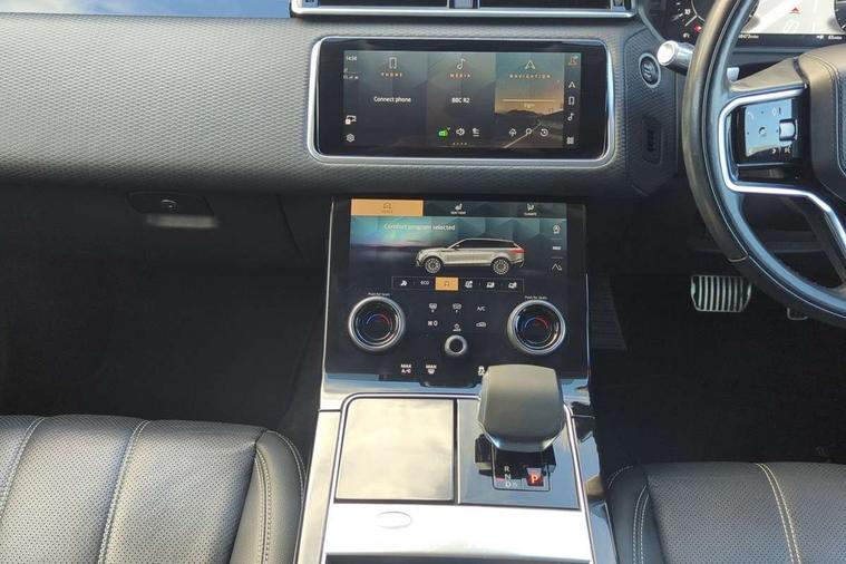 Online pack with data plan - Velar, Global lock and unlock switch on driver door, Immobiliser, Intrusion sensor, Keyless entry, Lock only switch on front passenger door, Locking wheel nuts, Perimetric alarm, Remote central locking, Digital Audio Broadcast radio-DAB, Steering wheel mounted controls, 355mm front brakes and 325mm rear brakes, 3x3 point rear seatbelts, Anti-lock braking system (ABS), Cornering brake control, Curtain airbags, Customer configurable autolock, Door side intrusion beams, Driver airbag, DSC - Dynamic Stability Control, Electronic brake force distribution, Electronic parking brake, Electronic traction control, Emergency brake assist, Emergency braking, Front and rear seatbelt reminder, Hill descent control, Hill launch assist, Low traction launch, Passenger airbag, Power operated child locks, Rear airbags, Roll stability control, Side airbags, Tyre pressure monitoring system, Unpainted brake calipers, Acoustic laminated windscreen, Adaptive front lighting system, Auto dimming interior rear view mirror, Automatic headlamp levelling, Automatic headlights, Body coloured bumpers, Boot protection plate, Electric heated/power fold door mirrors with approach lights and auto dimming driver side, Electric windows with one touch open/close and anti trap, Flush deployable exterior door handles, Follow me home headlights, Heated rear window with timer, Heated windscreen + heated windscreen washer jets, Metal load space scuff plates, Rain sensor windscreen wipers, Rear fog lights, Rear wash/wipe, SE badge, Tailgate/boot lid spoiler, Trailer stability assist, Velar and R-dynamic badge, 40:20:40 split folding rear seats, Ambient lighting, Bright metal pedals, Driver/passenger sunvisors with illuminated vanity mirrors, Isofix system on outer rear seats, Loadspace cover, Overhead lighting console, Overhead stowage for sunglasses, Passive front headrests, Rear air vents, Rear centre headrest, Satin chrome gearshift paddles, Standard interior, Twin front cupholders, Twin sliding front centre armrest, 10" touch screen, 3D Surround camera includes, clear sight ground view, 360 parking aid and wade sensing, Android Auto, Apple car play, Blind spot assist, Bluetooth connectivity, Brake pad wear indicator warning light, Driver condition monitor, InControl remote, Interactive Driver display instrument cluster, Land Rover InControl apps, Lane keep assist, Pivi pro connected includes upgraded infotainment, smart settings, connected navigation pro, Nuance speech licence, Powered gesture tailgate/boot lid, Push button start, Rear traffic monitor, Service indicator, Speed proportional electronic power assisted steering (EPAS), Traffic sign recognition with adaptive speed limiter, Trip computer, Voice control system, Wade Sensing, 8 speed automatic transmission, Open differential with torque vectoring by braking, Single speed transfer box,