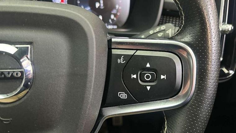 Cutting edge aluminium inlay, Anti-theft alarm including immobiliser/volume sensor + level sensor, Care key with user defined top speed, Key integrated remote control central locking + fuel flap with deadlocking system and auto open/close power windows, Locking wheel nuts, Private locking for tailgate, DAB Digital radio, Steering wheel mounted remote controls, 3x3 point rear seatbelts, City safety includes pedestrian, cyclist and large animal detection and front collision warning with full auto brake, Drivers knee airbag, Dual stage driver/passenger airbags, Electronic parking brake with auto hold, First aid kit, Front and outer rear seatbelt reminder and pretensioners, Front seats SIPS airbags, Hill descent control, Hill start assist, Inflatable curtain, Passenger airbag cut-off device, Road sign information display, Run off Road Mitigation, Run off Road Protection, SIPS (Side Impact Protection System), Slippery road and hazard light alert, Stability and Traction Control with Spin control, Engine Drag Control and Corner Traction Control, Tyre pressure monitoring system, Vehicle deceleration control with Anti-lock Brake System, Electronic Brake Distribution and Emergency Brake Assist, Warning triangle, WHIPS whiplash protection system - front, Adaptive brake lights with high level LED brake lights, Auto dimming interior mirror, Automatic headlamp levelling, Black stone door mirrors, Black stone roof, Colour coordinated auto folding and heated power door mirrors, Dark tinted windows for rear door side windows and cargo compartment, Dual integrated exhaust pipes with high gloss black surround, Front aluminium tread plates, Front and rear electric windows, High gloss black front and rear skid plate, High gloss black lower front bumper, High gloss black mesh front grille with high gloss black surround, High gloss black roof rails, High gloss black sensus surround deco, High gloss black window trim, Home safe and approach lighting, LED front fog lights, LED Headlights + Active high beam incorporating daytime running lights, Rain sensor with automatic windscreen wiper activation, Rear side wing doors, Rear wiper, Roof antenna, Roof spoiler, Visible VIN plate, 12V socket in front tunnel console and cargo compartment, 2 zone electronic climate control and rear air vent, 3 seat bench in 2nd row, 60/40 split folding rear seat, Ambient front door and instrumental panel lighting, Black headlining, Centre console cupholders and storage, Driver's side lower dashboard credit card storage compartment, Front door pocket and front cupholder illumination, Front footwell illumination, Front headrests, Front reading light and theatre lighting, Front tunnel net pocket and integrated waste bin, Glovebox bag hook, Height/reach adjustable steering column, High gloss centre tunnel deco, Illuminated glovebox, Illuminated luggage compartment, Illuminated tailgate, Illuminated vanity mirrors, Isofix attachments on rear seats, Key integrated remote, Leather gearknob, Load protection net, Multi directional lumbar support, Multicolour theatre lights, Rear armrest / integral cup holders / storage tray, Rear coat hook, Rear reading and courtesy lights, Single front passenger seat, Sports Leather steering wheel, Sports pedals, Underfloor cargo storage, 12.3" Active TFT crystal driver's instrument display, 9" centre console portrait touch screen, Adjustable steering wheel force, Bluetooth hands free telephone kit, Drive mode selector, Lane keep assist with driver alert control, Oncoming Lane Mitigation, Sensus navigation with European mapping and traffic information, Speed limiter, Speed sensitive steering, Voice activated control for key functions, Volvo on call, Sports chassis,