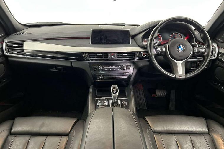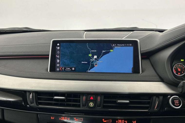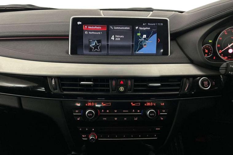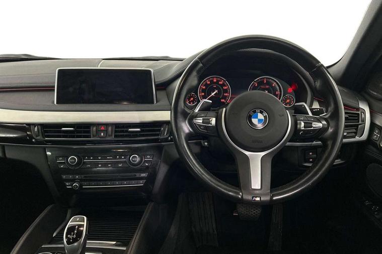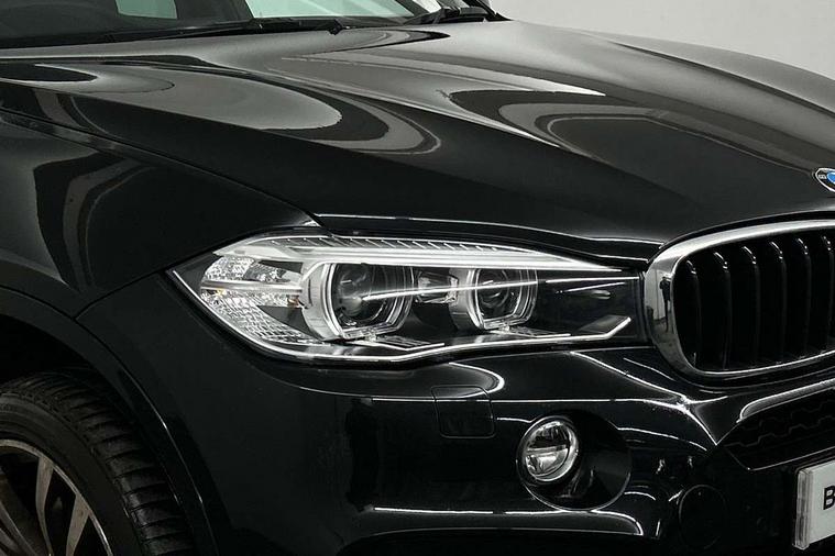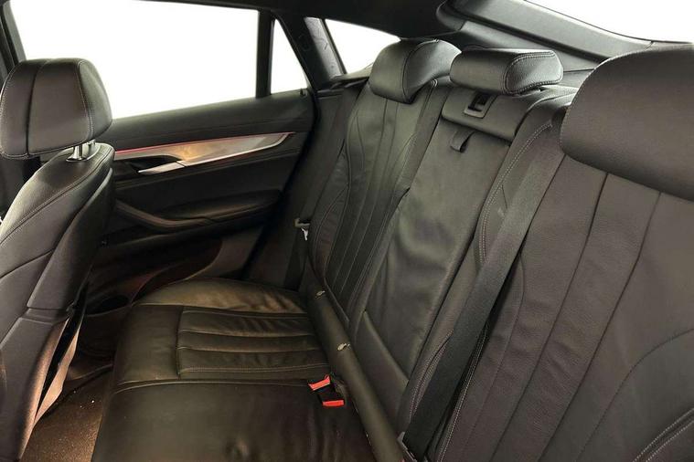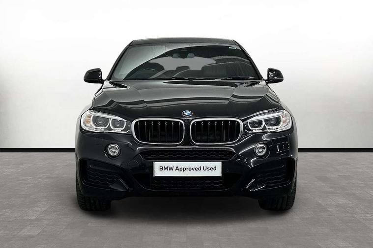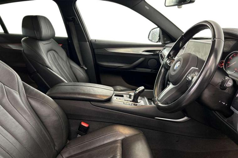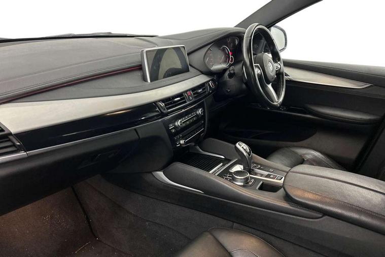 Extended storage pack - X6, Run flat tyres, Locking wheel nuts, Remote central locking, Thatcham cat 1 remote alarm/immobiliser, Auxiliary point for auxiliary devices, BMW professional twin tuner radio with single CD player and MP3 CD playback facility, DAB Digital radio, 3 rear 3 point seatbelts, ABS, ADB - Automatic Differential Brake, Automatic Stability Control (ASC), BMW emergency call, Brake energy regeneration, Child locks on rear doors, Cornering brake control (CBC), Crash Sensor - activates hazard/interior lighting + unlocks doors, Driver/Front Passenger airbags, DSC+, Dynamic brake control, Dynamic Traction Control - DTC, Electronic brake force distribution, Electronic parking brake, Front and rear head airbags, Front passenger airbag deactivation, Front passenger seat occupancy sensor, Front side airbags, Height adjustable front seatbelts, Hill descent control, Hill start assist, Pyrotechnically pre-tensioned front seatbelts, Seat belt force limiter, Side impact protection, Tyre pressure monitor, Warning triangle and first aid kit, Auto dimming and folding door mirrors, Auto dimming rear view mirror, Body colour bumpers, Body colour door handles, Body colour door mirrors, Chrome exhaust tailpipes, Clear indicator lenses, Door mirror integrated indicators, Double kidney grille with high gloss black surround and black slats, Downlights in exterior door handles, Electric + heated aspheric door mirrors, Electric front/rear windows with anti-trap, Electric headlight adjustment, Follow me home headlights, Green tinted glass, Headlight washer jets, Heat insulated glass, Heated washer nozzles, High gloss black air breather, M aerodynamic body kit, Rain sensor with auto light activation system, Stainless steel sill finishers, Xenon headlights, 12V accessory power point in centre console, 12v socket in front centre armrest storage compartment, 12V socket in luggage compartment, 2 x 12V socket in rear centre console, 3 spoke sports leather multi-function steering wheel with gear shift paddles, 40:20:40 split folding rear seats, Ambient interior lighting, Anthracite Velour floor mats, Boot lashing points, Door sills with M logo, Driver and passenger knee pads, Electric front seats + driver memory, Front and rear cupholders, Front armrest with storage bin, Front reading lights, Front/rear courtesy lights with soft on/off dimming, Full black panel display, Heated front seats, Height adj rear head restraints, Illuminated glovebox with lock, Isofix child seat preparation, LED footwell lights, Luggage compartment cover, removable, Reach + rake adjustable steering column, Storage bins on all doors, Sunvisors with illuminated vanity mirrors, Tilt/height adjustable front head restraints, Toolkit located in luggage compartment, 20GB Hard drive, 6.5" colour display screen, BMW apps interface, BMW information plus, BMW remote services, BMW Teleservices, Brake force display, Check control system, Electric tailgate release, Front/rear park distance control, Lights on warning, On board computer, Outside temperature gauge, Personal Profile, Professional multimedia navigation system, Service interval indicator, Servotronic PAS, Stop/start button, Voice control system, Adaptive M suspension, Diesel particulate filter,
