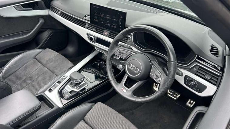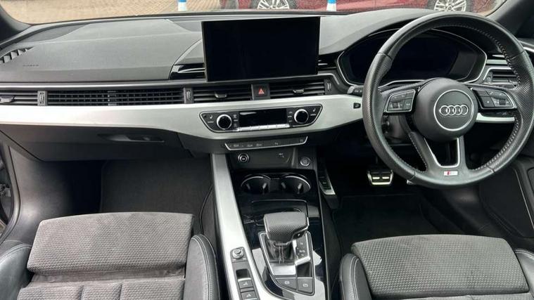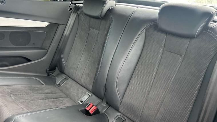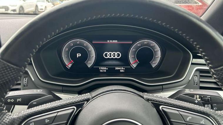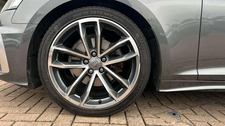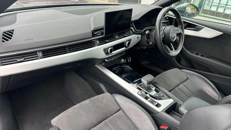 Matt brushed aluminium inlays, LED interior light pack - A5/RS5, Tyre repair kit, Anti theft alarm system, Anti theft wheel bolts, Immobiliser, Keyless Go, Remote central locking, 8 passive loudspeakers, CD player, DAB digital radio reception, Two additional USB ports for rear passenger in rear centre console, Two SDXC card slots, 6 airbags - Driver, front passenger, curtain and side airbags, Electromechanical parking brake, Electronic Stabilisation Control (ESC) including ABS, ASR and EDL, Front passenger airbag deactivation, Height adjustable front seatbelts, Hill hold assist, Multi collision brake assist, Pop-up bonnet for pedestrian protection, Seatbelt monitoring, Tyre pressure warning, Variable restraint system, Warning triangle and first aid kit, Audi matrix LED headlights with LED rear lights + dynamic front and rear indicators, Auto dimming rear view mirror, Body colour bumpers, Body colour door handles, Body colour front spoiler lip, Body colour side sill trim, Body coloured door mirrors, Electric adjustable heated door mirrors, Electric folding door mirrors, Electric front windows, Front fog lights, Honeycomb structure radiator grille in grained matt black, Matt aluminium silver tailpipe trim, Rain and light sensors, S line badges on front wings, S line front and rear bumpers with side skirts, S Line rear diffuser in matt titanium black with trim strip in matt aluminium silver, Side air inlets in grained matt black with matt aluminium silver inlay, Towbar preparation, Windscreen with acoustic glazing, 4 way electric lumbar support for driver and front passenger, 50/50 split folding 2 seater rear bench seat, Adjustable steering column, Black cloth headlining, Black perforated leather gearknob, Contrast stitching on seats, steering wheel and gear lever gaiter, Deluxe 3 zone electronic climate control, Front centre armrest, Front head restraints, Front/rear floor mats, Heated front seats, Illuminated door sill trim with S logo, ISOFIX child seat mounting and top tether, Luggage compartment mat, Manual seat adjustment, Rear headrests, Stainless steel pedals, Sunvisors with vanity mirrors, Tool kit, Audi connect safety and service (e-call), Audi drive select (Auto, Comfort, Dynamic, Efficiency and Individual), Audi parking system plus with front and rear sensors, Audi phone box with wireless charging, Audi smartphone interface, Audi virtual cockpit - 12.3" full colour digital instrument cluster, vehicle/engine speed, Radio/media information+Driver assistance systems, Automatic start-stop system with coasting functionality and efficiency programme, Bluetooth interface, Electric boot lid release, Electro-mechanical power steering, Email, calendar and text messages displayed via MMI, MMI nav+ with MMI touch - 10.1" high resolution MMI display, touch sensitive, 3D map, route/country info, dynamic route guide, personal route assist, Rear view camera, Service interval indicator, Voice control system, Sports suspension lowered by 23mm,