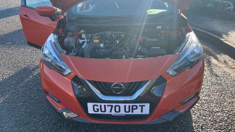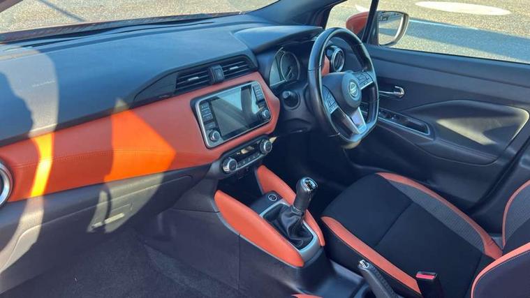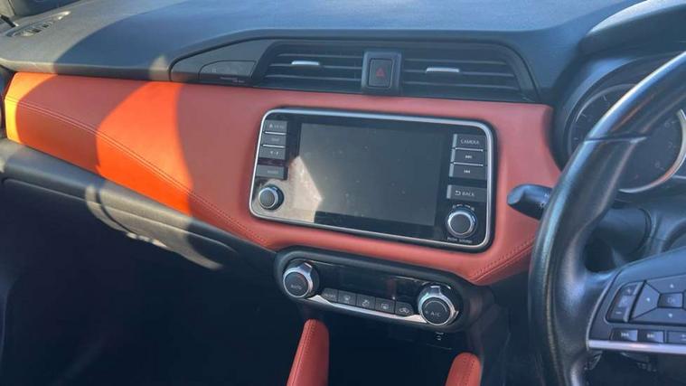 Tyre repair kit, Anti-theft immobiliser, Intelligent key with push button ignition, Remote central locking, Audio system with MP3, Aux-in socket, BOSE sound system with 6 speakers, DAB Digital radio, Steering wheel mounted audio controls, USB/iPod connection, ABS+EBD+Brake assist, Crash sensor, Driver/Front Passenger airbags, ESP + ASR traction control + CSV understeer control, Forward emergency braking, Front and rear curtain airbags, Front side airbags, Height adjustable front seatbelts with pre-tensioners and load limiters, Hill start assist, Intelligent emergency braking with pedestrian recognition, Passenger airbag deactivation system, Rear seatbelts with pre-tensioners and load limiters, Seatbelt warning, Three 3 point rear seatbelts, Tyre pressure monitoring system, Warning triangle and first aid kit, Antenna, Auto dimming rear view mirror, Automatic activation of hazard warning lights, Automatic headlights, Body colour front door handles, Concealed rear door handles, Electric folding door mirrors, Electrically adjustable door mirrors, Front and rear electric windows, Front fog lights, Heated door mirrors, High beam assist, High mounted stop lamp, LED daytime running lights, LED indicators in door mirrors, Rain sensor windscreen wipers, Rear privacy glass, Rear roof spoiler, Rear wiper with reverse link, 12V power point front, 2 height adjustable rear headrests, 3 cupholders, 60/40 split folding rear seat, Automatic air conditioning, Boot compartment cover, Boot light, Chrome interior door handles, Driver's seat manual height adjust, Driver/passenger sunvisors and vanity mirrors, Front and rear door pockets with bottle holders, Front console storage box, Gear shift indicator, Height adjustable front headrests with satin sliver decoration, Height adjustable steering wheel, Illuminated electric window switch, Isofix front passenger and rear seat preparation, Leather wrapped gear shift knob, Leather wrapped parking break, Leather wrapped steering wheel, LED ambient lighting, Luggage compartment lighting, Map reading lamp, Parcel shelf, Passenger seat back pocket, Reclining front seats, Satin silver air vents, Synthetic leather front door pads, Synthetic leather instrumental panel inserts, Tilt/telescopic adjustable steering wheel, Adjustable speed limiter, Advanced drive assist display 5'' TFT coloured screen, Bluetooth system, Cruise control, Lane departure prevention, Lane departure warning system, Nissan connect sat nav system, Nissan Connect touchscreen navigation and Entertainment system, Outside temperature gauge, Power assist steering, Rear parking sensors and rear view camera, Smartphone integration with Apple CarPlay and Android auto, Stop/start system, Traffic sign recognition, Trip computer,
