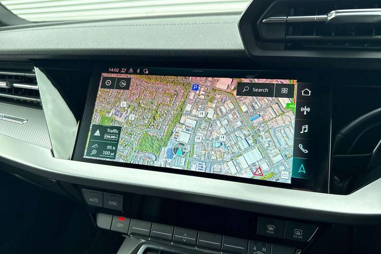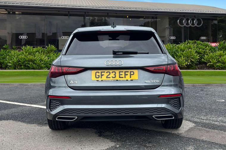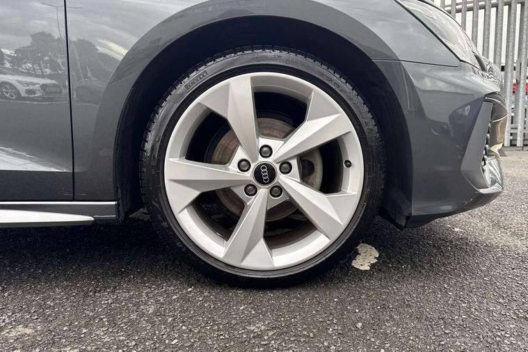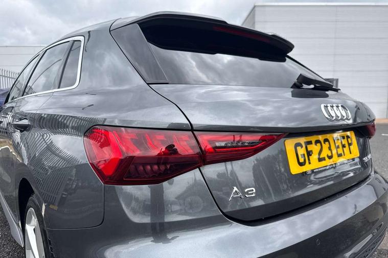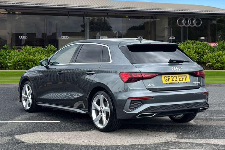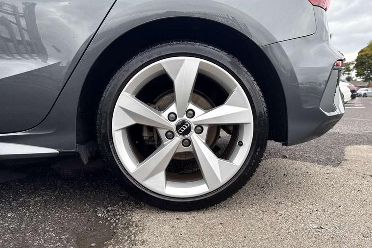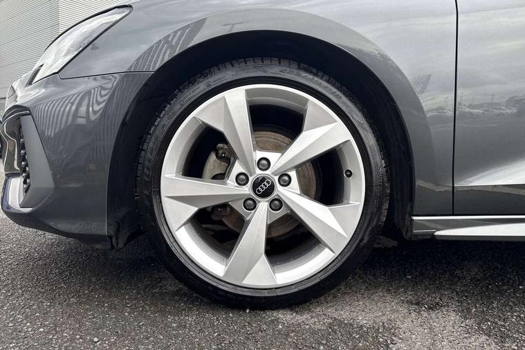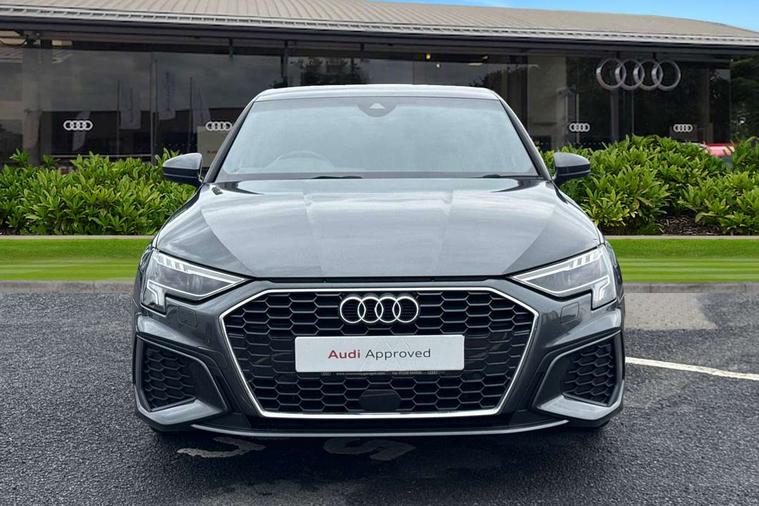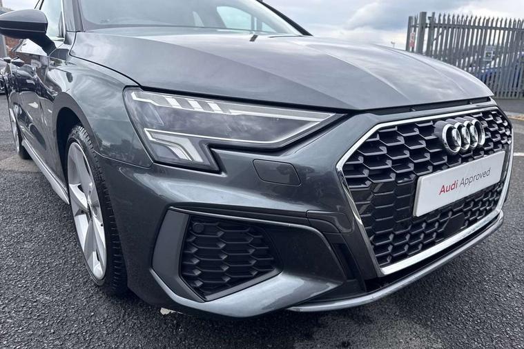 Accent surfaces in the dashboard and centre console in platinum grey silk effect paint finish, Dark spectrum aluminium inlays, Aluminium interior elements pack - A3 Sportback, LED interior lighting pack - A3 Sportback, S line styling pack - A3 Sportback, Anti theft alarm, Anti-theft wheel bolts, Electronically operated child lock, Immobiliser, Remote control central locking, 2xUSB-C connection with data and charging functions, 6 passive loudspeakers, DAB Digital radio, 3x3 point rear seat belts, Audi pre sense front, Driver and front passenger airbag with passenger airbag deactivation, Electronic Stabilisation Control (ESC) including ABS, ASR and EDL, First aid kit with warning triangle and 2 safety vests, Front side airbags with head airbags and interaction airbag, Pre-sense front with pedestrian and cyclist detection, Seatbelt monitoring, Tyre pressure loss indicator, 3rd brake light, Acoustic glass windscreen, Aluminium window trim, Auto dimming frameless rear view mirror, Body colour exterior mirrors, Electrically adjustable/heated/folding/dimming door mirrors with kerb view includes integrated LED indications + kerb view function for passenger side, Front electric windows, Illuminated aluminium inserts front door sills with S logo, LED daytime running lights, LED headlights with LED rear lights and dynamic rear indicators, Light and rain sensors, Privacy glass - dark tinted rear window, rear door and side windows, Rear electric windows, Rear side air outlets in grained matt black, Rear side wing doors, Rear wiper, S line bumpers, S roof spoiler, 12V socket and storage compartment in front centre console, 3 seat bench in 2nd row, 3 spoke leather multifunction steering wheel with paddle shift, 40/20/40 split folding rear seat bench with cupholder, Black cloth headlining, Dual zone electronic climate control, Front and rear centre armrest in leather, Front and rear headrests, Front/rear floor mats, Height and reach adjustable steering wheel, Illuminated vanity mirror, Interior lighting - glove compartment light and right hand side, Luggage compartment floor covering, Manual boot compartment lid, Manually adjustable front seats, Seat side bolsters, Single front passenger seat, Stainless steel pedals and front footrest in black, Twin leather upholstery with front sports seats S embossed logo, Audi drive select (Auto, Comfort, Dynamic, Efficiency and Individual), Audi smartphone interface, Audi Virtual Cockpit - 10.25" digital and colour instrument cluster, Automatic start/stop system with recuperation, Bluetooth interface, Collision avoidance assistant, e-Call (emergency call), Electromechanical power speed sensitive steering, Lane departure warning system, MMI Navigation Plus with high resolution 10.1" colour touch screen display, Service indicator, Trip computer, Voice control system with natural language interaction, Sports suspension,