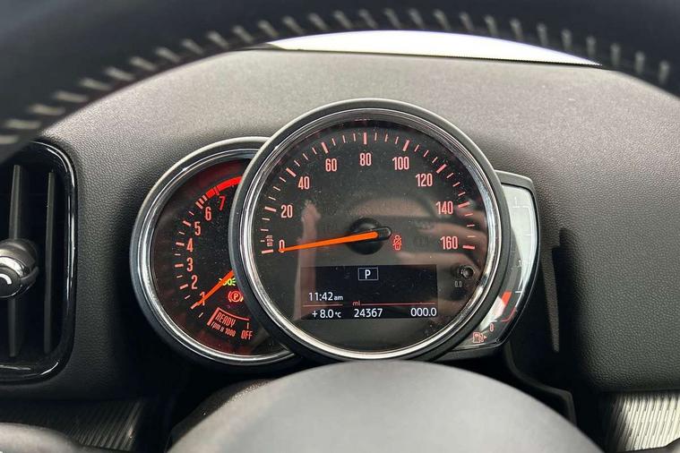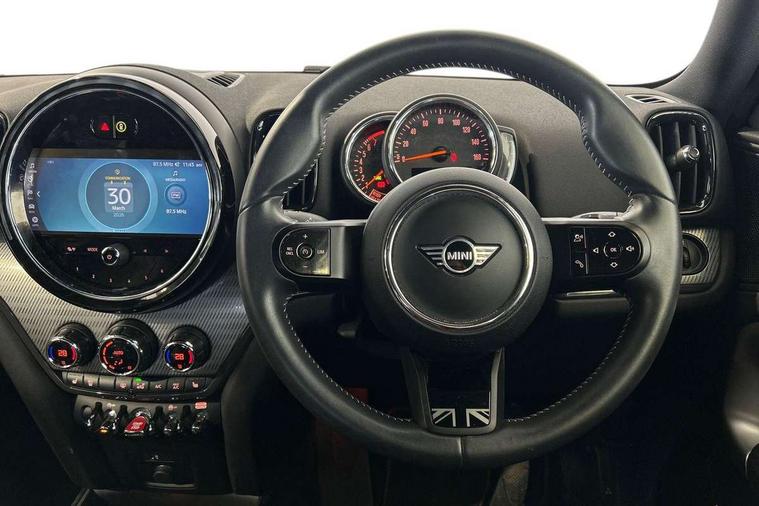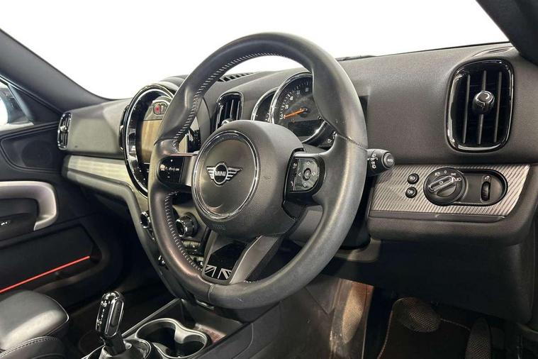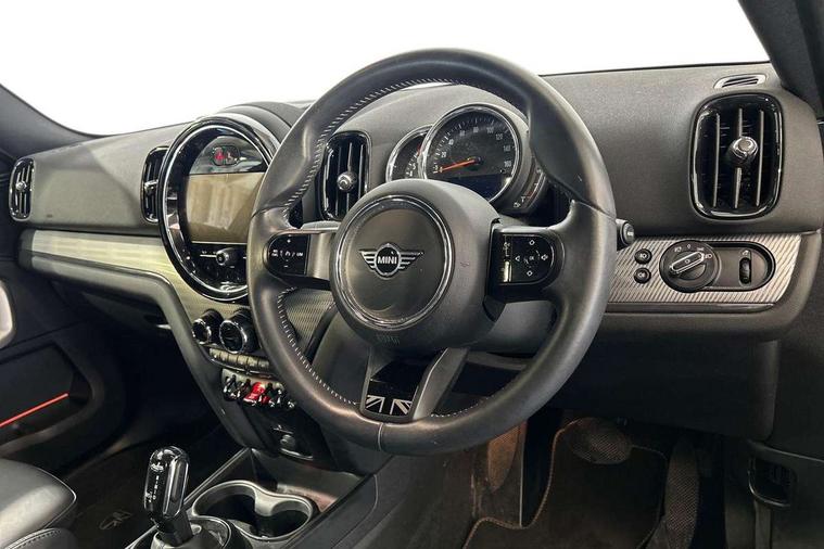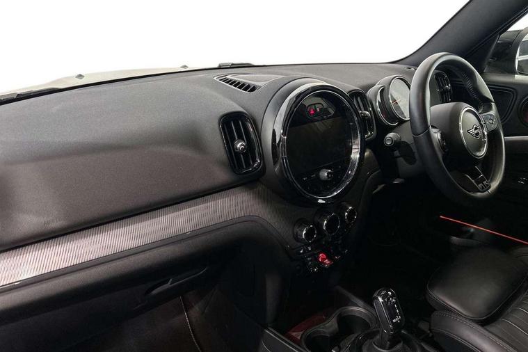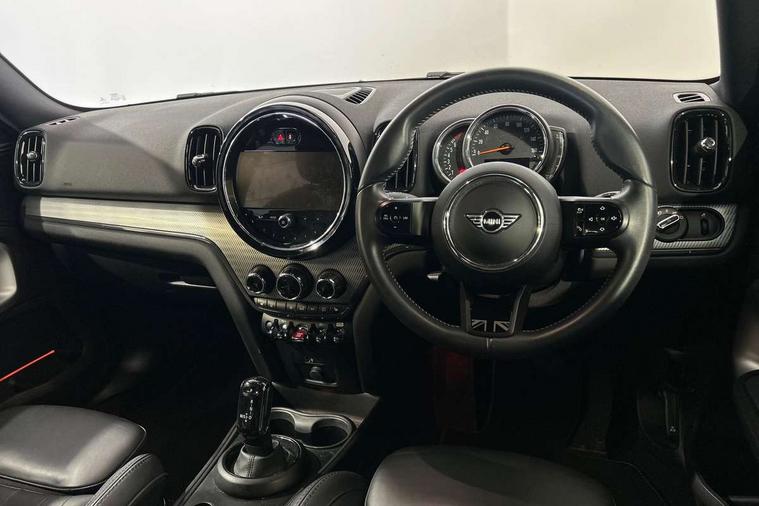 Excitement pack - Countryman, Navigation pack - Countryman, Alarm system with tilt sensor, monitoring doors, bonnet interior and tailgate, Auto drive away locking, Deadlocking function, Electronic vehicle immobiliser, Locking wheel bolts, Start/stop toggle with keyless go, FM tuner and DAB digital radio, 2 tone horn, 3 point seatbelts on all seats, 6 Airbags - front, side, head and seat belt tensioners, Anti-lock braking system (ABS), DSC - Dynamic Stability Control, Electronic handbrake, Front and rear disc brakes, Hill start assist, Manual rear child locks, Tyre pressure monitoring system, 3rd brake light, Body colour fuel filler cap, Day time driving lights, Door sill strips, Dynamic brake lights, Electric windows, Heated rear window, Heated windscreen washer jets, LED fog lights, LED Headlights, MINI yours exterior badge in C-Pillar, driver and passenger side, Model logo, Model logo on Tailgate, Rain sensor with auto headlights, Rear fog lights, Rear side wing doors, Rear window wiper, Side scuttle panel with integrated indicator, Split rear doors, Sun/heat protection glass, White indicator lenses, 12V socket in centre console, 3 seat bench in 2nd row, 360L luggage compartment capacity, 4 lashing eyes in luggage compartment, 40:20:40 split folding rear seats, Anthracite headlining with grab handles and clothes hooks, Chrome interior highlights, Colour line - Carbon black, Cupholders, English handbook, Front headrests, Glove compartment, Height and length steering column adjustment, Interior lighting with 12 basic colours selectable via toggle switch in roof, Isofix rear child seat preparation, Leather gearshift lever and handbrake gaiters, LED reading lights, vanity mirror lights, front foot well light and spotlight on front seats, Manual air conditioning, MINI Yours fine walk nappa leather steering wheel with contrast stitching in silver and MINI Yours badge, MINI Yours floor mats, Multifunction steering wheel, Rear headrests, Single front passenger seat, Storage compartments in doors, Sunvisors with vanity mirrors, Tool kit, Active Guard incl speed limiting and lane departure functions with auto steering, and front collision warning with brake intervention, Automatic start/stop function with brake energy recuperation, Compatible mobile phone bluetooth with audio streaming, Cruise control with brake assist, Electro-mechanical speed dependant steering assistance, Instrument cluster, MINI Driving Modes - centre toggle switch to control driving setting (sport, mid and green), Mini E-call, On board computer, Rear parking distance control, 51 Litre fuel tank, Double Vanos system, Fully variable valve control, High precision injection, Performance Control, Steptronic transmission with double clutch,