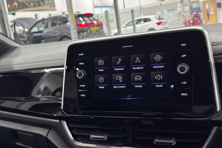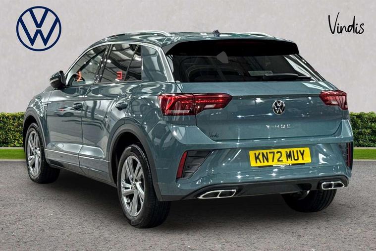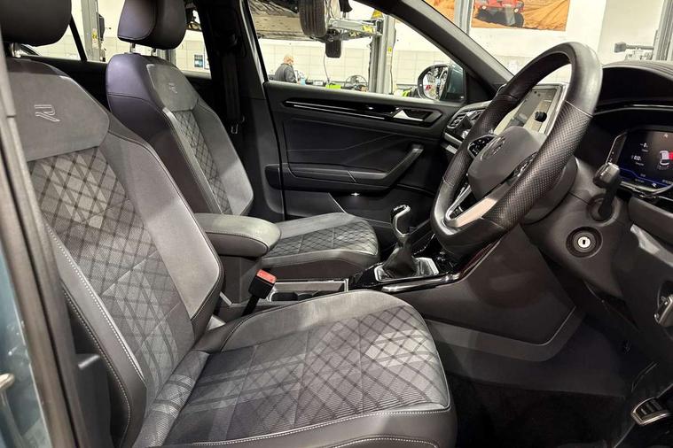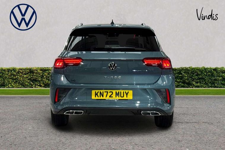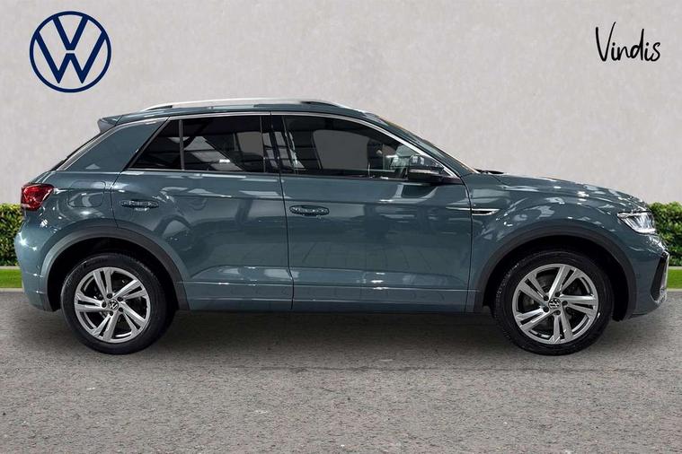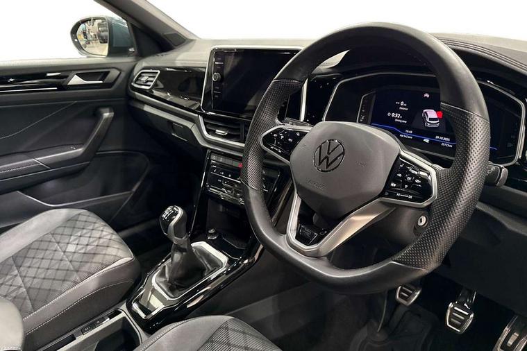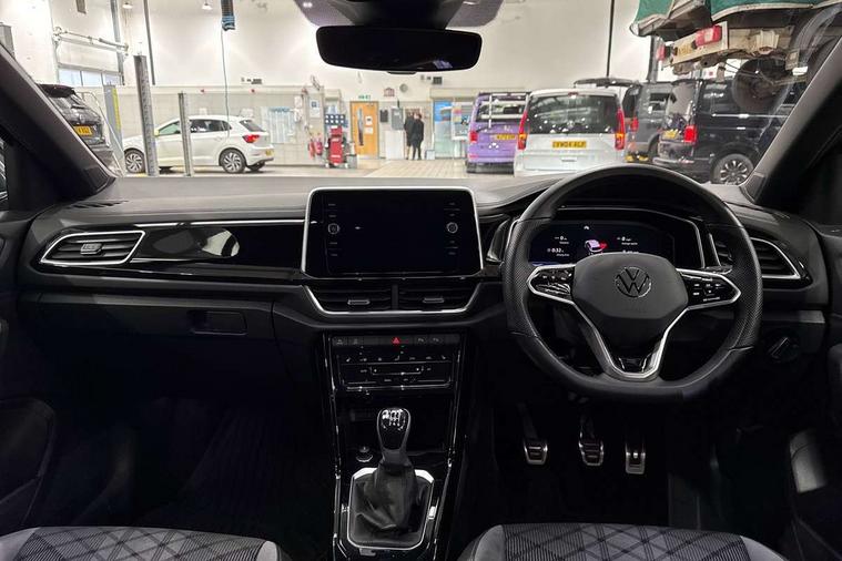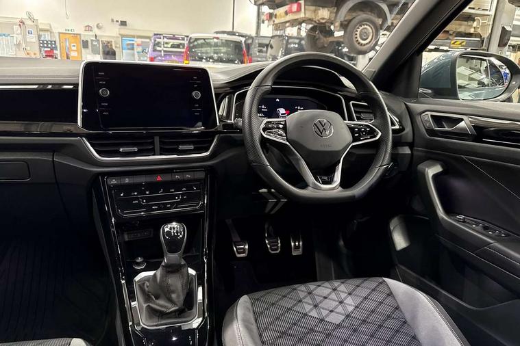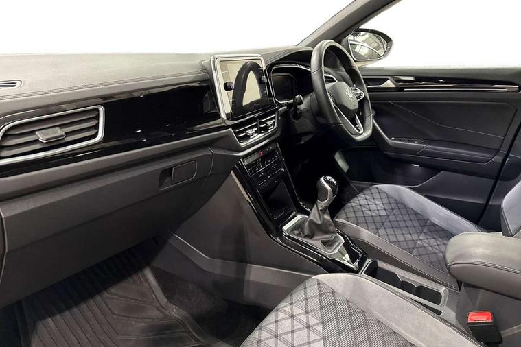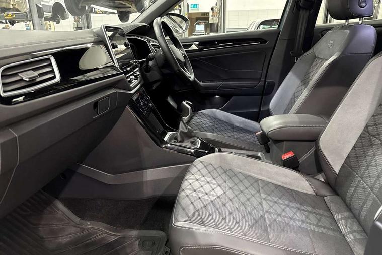 Driver assistance pack without proactive passenger protection - T-Roc, Trims for alloy wheels, Alarm with interior protection, Anti-theft alarm system with interior monitoring, backup horn, and towing protection, Remote central locking with SAFELOCK, radio remote control with 2 remote control folding keys, Diversity antenna for FM reception, Front and rear 6 speakers, Music playback - MP3, WMA and AAC files, Premium USB cable in choice of either Apple or Android smartphone compatibility, SD card slot, Simultaneous pairing of 2 compatible mobile devices, Title and cover art display, We Connect and We Connect Plus functionality, 3 point height adj front seatbelts + pretensioners, 3 point seatbelts in outer rear with ECE label, ABS, Child locks on rear doors, Driver and front passenger airbag with front passenger airbag deactivation, Driver and front passenger safety-optimised head restraints, Drivers seatbelt reminder, Electronic parking brake, Electronic Stability Control (ESC) inc EDL (Electronic Differential Lock) and ASR (Traction Control), Front and rear passengers curtain airbag system including front side airbags, Front assist with city emergency braking and pedestrian monitoring, Front seat side impact airbags, Hill start assist, Predictive pedestrian protection, Rear disc brakes, Single tone horn, Tyre pressure loss indicator, Volkswagen roadside assistance, 3rd brake light, Auto dimming interior rear view mirror, Automatic hazard lights activation under emergency braking, Automatic headlight control with LED separate daytime running lights with coming/leaving home function, Chrome plated radiator grille inserts, air vent surrounds and light switch surrounds, Extended roof spoiler, Exterior mirrors aspherical on driver side, convex on front passenger side, External USB type C socket and charging sockets, Front windscreen wiper with intermittent wipe and 4 position delay, Heated rear window, LED Plus headlamps, LED rear combination lamps, LED rear number plate lights, LED tail lamp rear comination lamps, Power windows with comfort operation and circuit breaker, R-Line design body coloured bumpers, Rain sensor, Rear exhaust tailpipe, Rear fog light on one side and reversing lights on both sides, Rear side wing doors, Rear wash/wipe with intermittent wipe setting, Remote electrically foldable door mirrors, puddle lights and reverse activated passenger's door mirror, 12V power socket in centre console, 3 rear head restraints, 3 seat bench in 2nd row, 4 load lashing points in luggage compartment, Air care climatronic air conditoning system with active combination filter and 2-zone temperature control, Black roof lining, Door and side trim panel with leatherette insert, Drawer under drivers seat, Front + rear carpet mats, Front centre armrest, Front cupholders x 2, Front footwell illumination, Front reading light, Front scuff plates with R logo, Instrument lighting, white adjustable panel illumination, Interior ambient lighting and surround lighting, Interior light delay, Isofix child seat preparation, Leather gearshift handle, Load-through provision with cup holder when folded down ('Unsplit rear seat bench, split folding backrest, with centre armrest), Luggage compartment lighting, Single front passenger seat, Stainless steel pedals, Storage compartment in left and right luggage area, Storage compartment in rear doors, Storage compartments in driver and front passenger doors, Sunvisors with illuminated vanity mirrors, Variable boot floor, height adjustable and removable, 10.25" Digital cockpit pro, Bluetooth mobile phone interface, Driver alert system with fatigue detection, Driver tips and journey analysis, Emergency call service, Lane keeping system Lane Assist, Modified key software - reduce switch off time for key status change to Long no motion, Online services, Park assist including front and rear parking sensors, Service interval indicator, Tailgate/trunk lid release from outside, Think blue trainer driver tips and journey analysis, Warning sound and light for front seatbelts unfastened, Wireless app connect, Battery regeneration during braking, Start/stop function with battery regeneration,