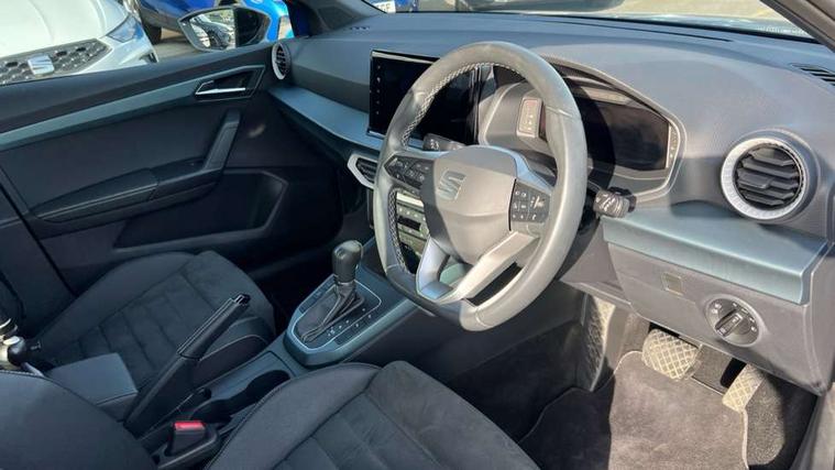 Titan black dashboard, Interior chrome pack - Arona, Storage pack - Arona, 18" Performance Nuclear grey alloy wheels, Alarm with back-up horn, Electronic engine immobiliser, KESSY Keyless entry and go, Locking wheel bolts, Remote central locking + deadlocks, Tow away protection, 9.2" colour touchscreen with navigation system, voice control and USB port (type c), Bluetooth interface for hands free and audio streaming, DAB digital radio and AM/FM radio, Steering wheel mounted audio controls, 3 point seatbelts on all rear seats, ABS, Active front headrests, Child locks on rear doors, Driver and front passenger airbags with front passenger airbag de activation, front side and curtain airbags, Electronic stability control, Emergency Brake Assist (EBA) and front assist, Front and rear seatbelt reminder, Hill hold control, Multi-Collision braking, Tiredness recognition system, Traction control, Tyre pressure monitoring system, Anti theft roof antenna, Auto dimming interior rear view mirror, Automatic activation of hazard warning lights, Body coloured bumpers, Body coloured door handle inserts, Chrome roof rails and window surrounds, Electric front/rear windows, Electrically adjustable, heated and folding door mirrors, Front fog lights with cornering function and rear fog light, FULL LED automatic headlights with dynamic headlight range control, coming and leaving home, LED daytime running lights, Hidden exhaust pipe, LED rear tail lights and licence plate lights, Protective side mouldings, Rain sensing wipers, Rear side wing doors, Rear spoiler, Rear window wash/wipe, Roof colour door mirrors, Third brake light, Visible VIN plate, Windshield wiper with intermittent control and potentiometer, 2 cupholders, 3 seat bench in 2nd row, 60/40 split folding rear seat, Aircare filter, Black interior roof, Double boot floor, Driver sunvisor with covered mirror + card holder, Dual zone climate control, Flat bottomed leather steering wheel/gear knob/handbrake, Front comfort seats, Front courtesy light with front and rear reading lights, Front seat back storage pockets, Gear shift indicator, Heated front seats, Height adjustable front seats, Height/reach adjustable steering column, Illuminated boot, Instrument lighting with brightness control, Interior ambient lighting, Interior light in footwell, central console and door panel, ISOFIX points in outer rear seats with top tether anchorage points, Leather steering wheel/gear knob/handbrake, Microsuede cloth upholstery, Passenger sunvisor with vanity mirror, Single front passenger seat, Storage net on centre console, Two front and three rear height adjustable headrests, 'Lights On' Reminder warning buzzer, 10" Digital cockpit, Digital clock, E-call, Electric speed sensitive power steering, Front parking sensor, Full Link Smartphone Integration with Mirror Link, Apple Car Play, Google Android Auto with USB Type C cable for Apple and Android compatibility, Low fuel warning light, Outside temperature display, Park assist system, Rear parking sensor, Rear view camera, RPM counter, Seat connect with safety, service, remote and online, Trip computer, Wireless phone charger,
