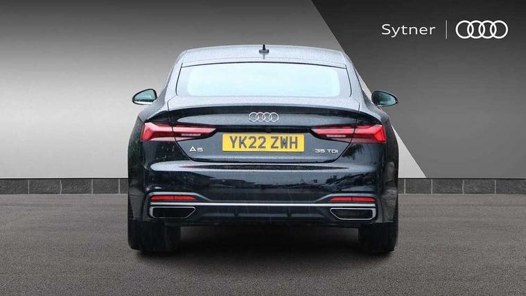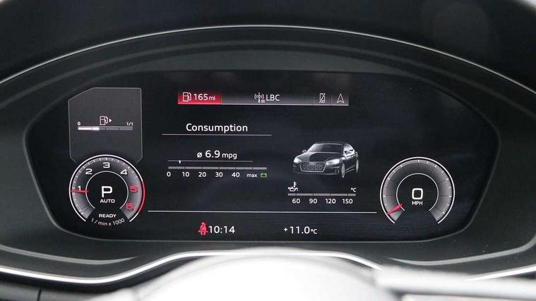 Aluminium ellipse silver inlays, LED interior light pack - A5/RS5, Tyre repair kit, Anti theft alarm system, Anti theft wheel bolts, Immobiliser, Keyless Go, Remote central locking, 8 passive loudspeakers, CD player, DAB digital radio reception, Two additional USB ports for rear passenger in rear centre console, Two SDXC card slots, 3x3 point rear seatbelts, 6 airbags - Driver, front passenger, curtain and side airbags, Electromechanical parking brake, Electronic Stabilisation Control (ESC) including ABS, ASR and EDL, Front passenger airbag deactivation, Height adjustable front seatbelts, Hill hold assist, Multi collision brake assist, Pop-up bonnet for pedestrian protection, Pre sense city, Seatbelt monitoring, Tyre pressure warning, Variable restraint system, Warning triangle and first aid kit, Auto dimming rear view mirror, Body colour bumpers, Body colour door handles, Body colour side sill trim, Body coloured door mirrors, Electric adjustable heated door mirrors, Electric folding door mirrors, Electric front windows, Front fog lights, LED headlights and rear lights with LED daytime running lights, LED third brake light, Matt aluminium silver tailpipe trim, Radiator grille and air inlets in titanium black with matt aluminium silver inserts, Rain and light sensors, Rear diffuser in matt titanium black with trim strip in matt aluminium silver, Rear side wing doors, Sport front and rear bumpers with side skirts, Variable front intermittent wipers, Windscreen with acoustic glazing, 3 spoke high multi-function leather sport steering wheel with paddle shift and height and reach adjustable, 4 way electric lumbar support for driver and front passenger, 40/20/40 split folding 3 seater rear bench seat, Deluxe 3 zone electronic climate control, Door sill trims with aluminium inlay, Front centre armrest, Front head restraints, Front/rear floor mats, Heated front seats, ISOFIX child seat mounting and top tether, Luggage compartment mat, Manual seat adjustment, Rear headrests, Single front passenger seat, Sunvisors with vanity mirrors, Tool kit, Twin leather upholstery + front sports seats, Audi connect safety and service (e-call), Audi connect with Amazon Alexa Integration, Audi drive select (Auto, Comfort, Dynamic, Efficiency and Individual), Audi parking system plus with front and rear sensors, Audi smartphone interface, Audi virtual cockpit - 12.3" full colour digital instrument cluster, vehicle/engine speed, Radio/media information+Driver assistance systems, Automatic start-stop system with coasting functionality and efficiency programme, Bluetooth interface, Cruise control system with speed limiter with free wheeling capability, Electro-mechanical power steering, Email, calendar and text messages displayed via MMI, MMI nav+ with MMI touch - 10.1" high resolution MMI display, touch sensitive, 3D map, route/country info, dynamic route guide, personal route assist, Power operated tailgate, Rear view camera, Service interval indicator, Voice control system, Comfort dynamic suspension, Diesel particulate filter,
