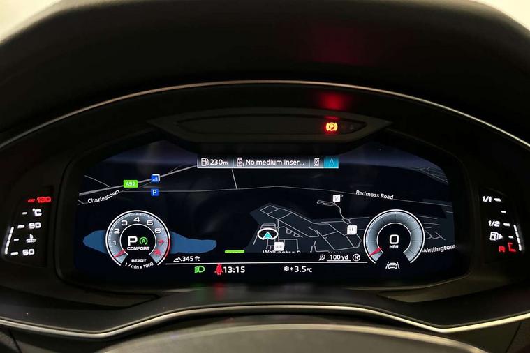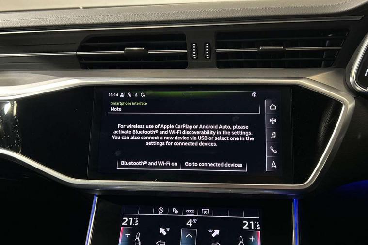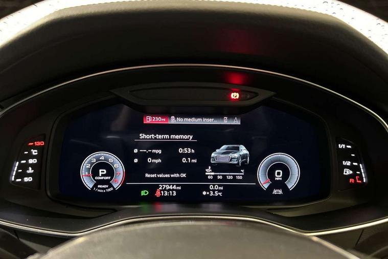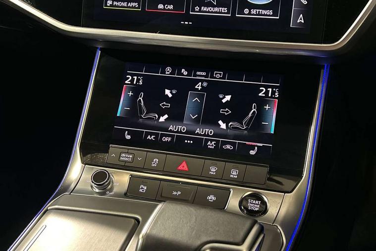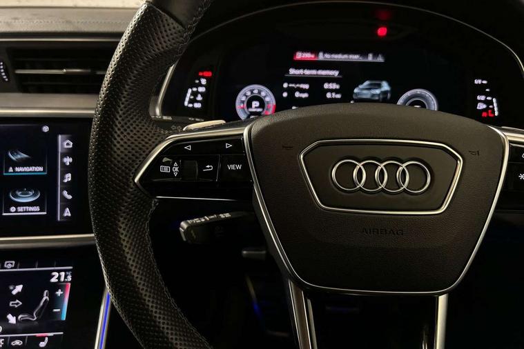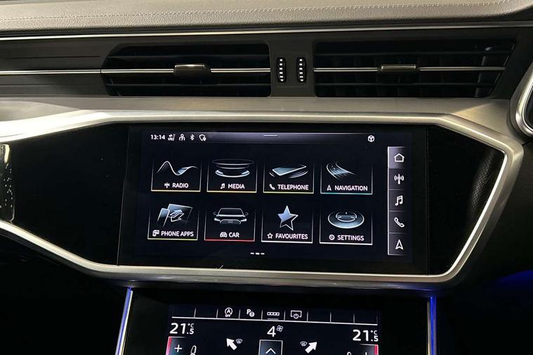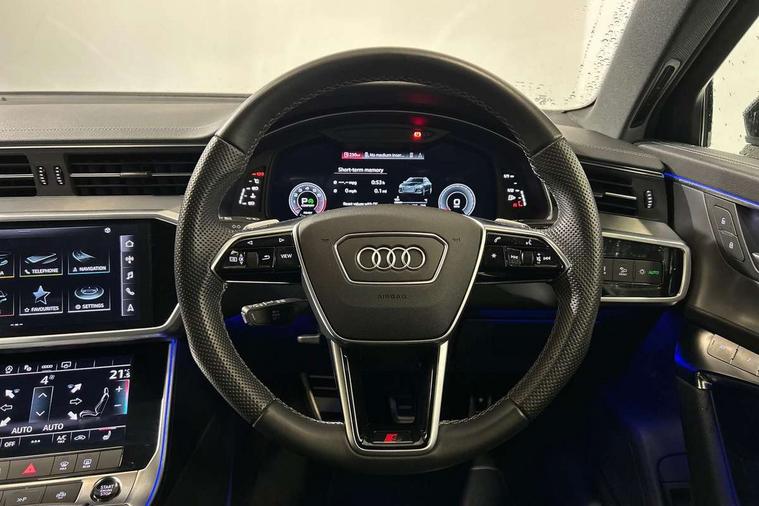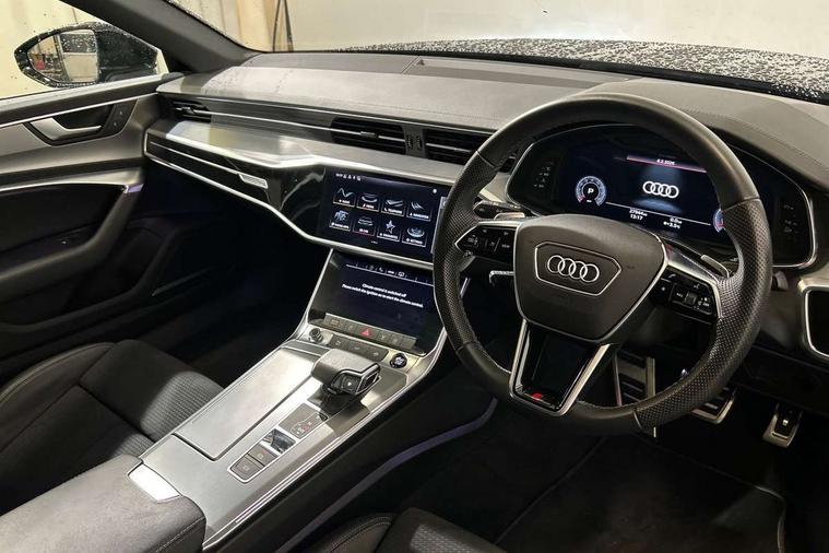 Matt brushed aluminium inlays, LED Interior Ambient Lighting Pack - A6, Non smoking pack - A6, S line exterior style pack - A6, Anti theft alarm with tow away protection, Anti-theft wheel bolts and wheel loosening detection, Immobiliser, Keyless Go, Remote central locking, Audi front music interface, Audi sound system, Auxiliary input socket, DAB Digital radio, USB connection, 3 point seatbelts on all seats, Airbags - Front side, front and rear including head, Audi pre-sense front, EBD - Electronic brakeforce distribution, Electromechanical parking brake, Electronic Stability Control (ESC) including ABS, ASR and EDL, Extended pedestrian protection measures, ISOFIX child seat mounting for front passenger seat and ISOFIX child seat mounting with Top Tether for outer rear seats, Manual child proof rear door locks, Seatbelt monitoring, Tyre pressure warning light, Warning triangle and first aid kit, Aluminium roof rails, Body colour rear roof spoiler, Body coloured door mirrors, Electric front/rear windows, Electrically adjustable heated and folding + automatically dimming exterior mirrors with memory function, Frameless auto dimming interior rear view mirror, Front intermittent wipers, Heat insulating glass in side and rear windows, Heat insulating glass in windshield, LED rear lights with dynamic indicators, LED signature front daytime running light, LED third brake light, Matrix LED headlights, Matt black rear diffuser with diffuser strip and tailpipes in chrome, Matt black side air intake grille with inlay in matt aluminium, Privacy glass, Radiator grille in anthracite black matt, single frame in chrome and horizontal struts in matt aluminium silver, Rain and light sensors, Rear side wing doors, Rear wiper, 2 zone deluxe electronic climate control, 3 spoke high multi-function perforated leather steering wheel with contrast stitching and shift paddles, 40/20/40 split folding 3 rear seat bench in 3 parts with rear centre armrest, Audi phone box light, Black cloth headlining, Electrically adj front seat with memory fun for driver/front passenger incl seat height, seat fore/aft position, seat backrest angle and 4 way lumbar, Front and rear floor mats, Front centre armrest, Front head restraints, Heated front seats, Height/reach adjust steering wheel, Illuminated door sill trims with S logo, Illuminated sun visors with vanity mirrors, Leather gear knob, Luggage compartment system, Rear headrests, Single front passenger seat, Stainless steel pedals and foot rest, Tool kit and car jack, Audi connect safety and service (e-call), Audi connect with Amazon Alexa Integration, Audi drive select, Audi parking system plus - acoustic and visual park assist system for front and rear, Audi smartphone interface includes wireless Apple carplay/Android Auto, Audi virtual cockpit, Automatic start/stop system with coasting functionality, Bluetooth interface, Camera based traffic sign recognition, Lane departure warning system, MMI navigation plus with 10.1" and 8.6" touch screens, Power operated tailgate, Progressive steering, Rear view camera, Service interval indicator, Voice control system, Sports suspension,