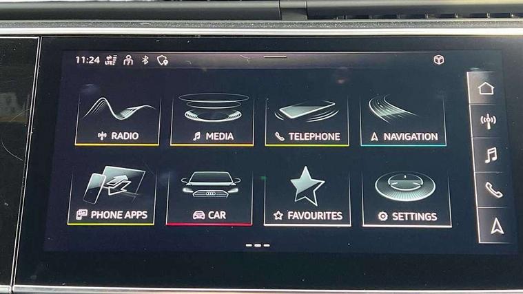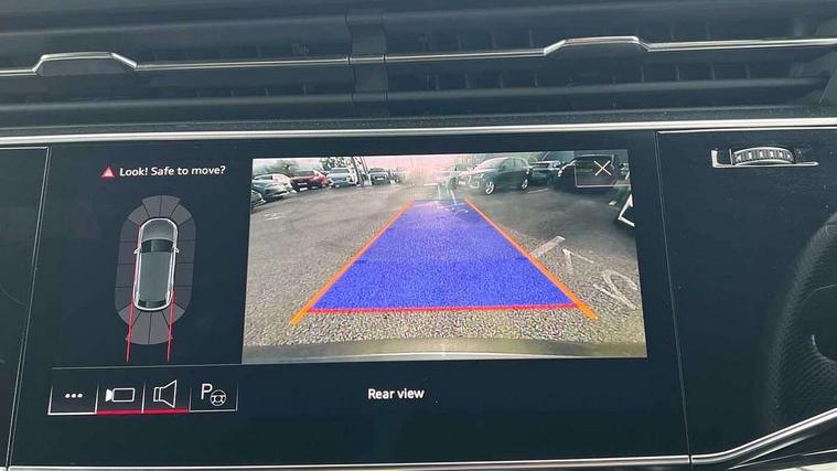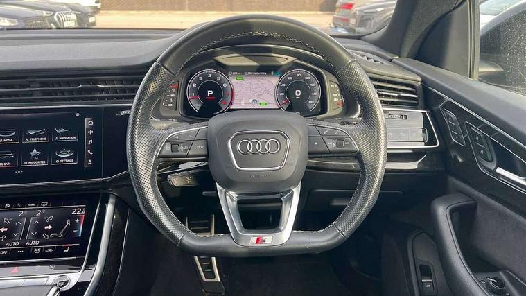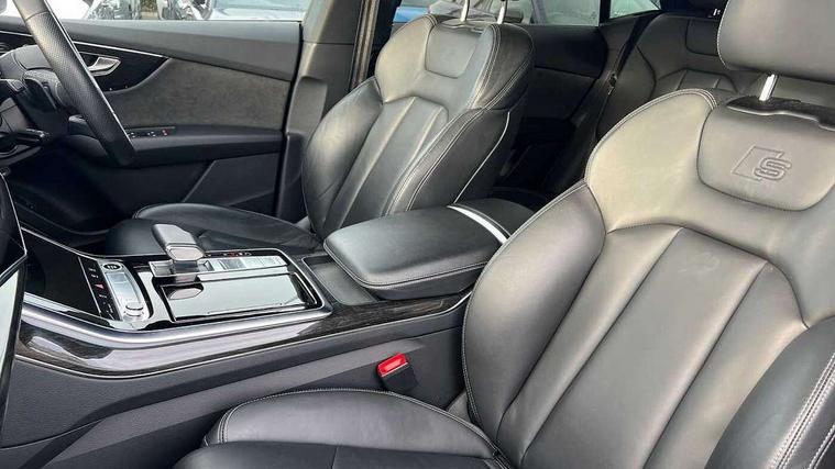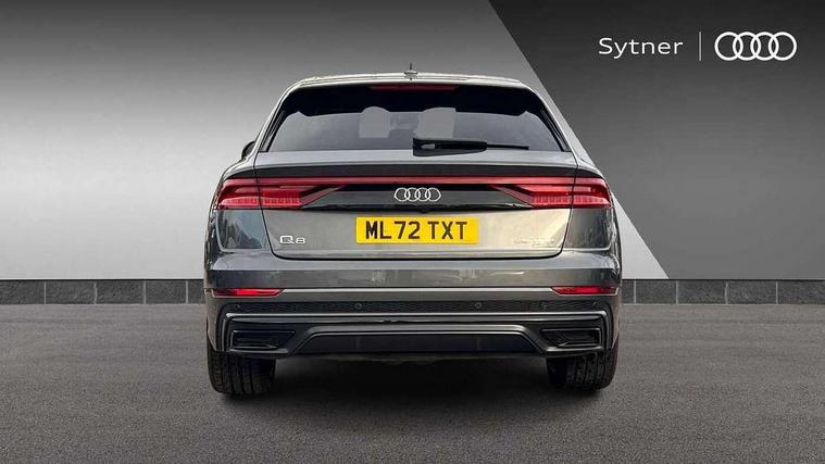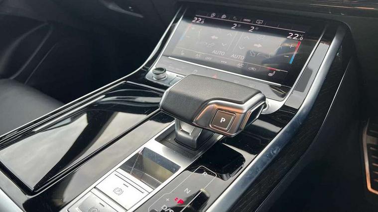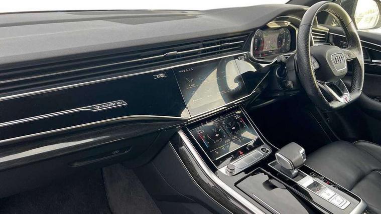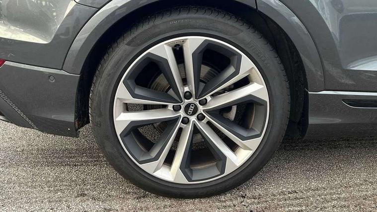 Polished oak trim with grey finished, Titanium Black Styling Pack - Q8, Tyre repair kit, Anti theft alarm with tow away protection, Anti-theft wheel bolts and wheel loosening detection, Immobiliser, Keyless go with remote central locking, Audi music interface with 2 USB ports with charge and data functions, Audi sound system with 6 channel amplifier, 180 watt amplifying capacity and 10 loudspeakers including subwoofer, Aux-in socket, DAB Digital radio, 3 point seatbelts on all seats, Audi pre sense front, Child locks on rear doors, Driver and front passenger, front side and curtain airbags, Electromechanical parking brake, Electronic Stability Control (ESC) including ABS, ASR and EDL, Front passenger airbag deactivation, Hill descent control, Hill hold assist, Predictive pedestrian protection, Seatbelt monitoring, Traction control, Tyre pressure loss indicator, Warning triangle and first aid kit, 3rd brake light, Acoustic windscreen, Audi HD Matrix LED headlights with dynamic front and rear indicators, Auto dimming frameless rear view mirror, Coming/leaving home lighting function, Electric front+rear windows, Electrically folding auto dimming/adjustable/heated door mirrors with memory function, LED side indicators and kerb view function for passenger side, Headlight washers, Heat insulating glass in windshield, LED signature daytime running lights, Platinum grey front spoiler lip and diffuser insert, Privacy glass - dark tinted rear and rear side windows from B-pillar backwards, Rain and light sensors, Rear side wing doors, Rear wiper, 3 bench rear seats in 2nd row, 4 zone deluxe automatic climate control, 4-way lumbar support for front seats, 40:20:40 split folding rear bench seat, Black cloth headlining, Comfort front centre armrest, Driver seat memory function, Electrically adjustable front seats, Front head restraints, Front/rear floor mats, Heated front seats, ISOFIX child seat mounting for front passenger seat and 2 outer rear seats with top tether child seat mounting for all 3 rear seats, LED interior ambient lighting, Luggage compartment sill protection in stainless steel, Rear centre armrest with 2 cupholders, Rear headrests, Single front passenger seat, Stainless steel pedals, Sunvisors with illuminated vanity mirrors, Tool kit, 10.1" and 8.6" Dual colour touchscreens, Audi connect safety and service (e-call), Audi connect with Amazon Alexa Integration, Audi drive select, Audi parking system plus includes 360 degree display with front and rear sensors, Audi smartphone interface includes wireless Apple carplay/Android Auto, Audi virtual cockpit - 12.3" high resolution LCD display with fully customisable instrument cluster, Automatic start/stop system, Electro-mechanical PAS, Low washer fluid indicator, MMI - Multi Media Interface control system, MMI navigation plus with MMI touch, Natural voice recognition, On board computer, Operating buttons in black, glass look with haptic feedback, Power operated tailgate, Rear view camera, Service interval indicator, 48V Mild hybrid technology, 85 litre fuel tank, Adaptive sport air suspension, Quattro all wheel drive with self locking centre differential,