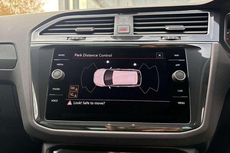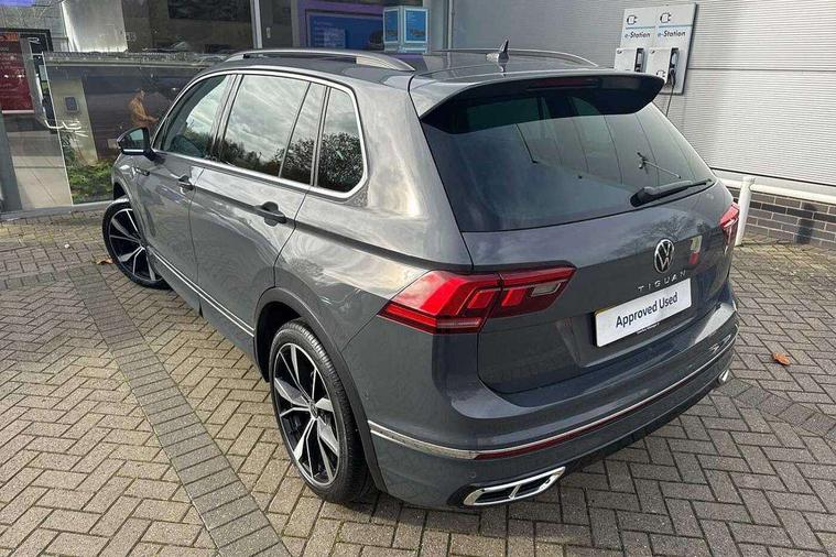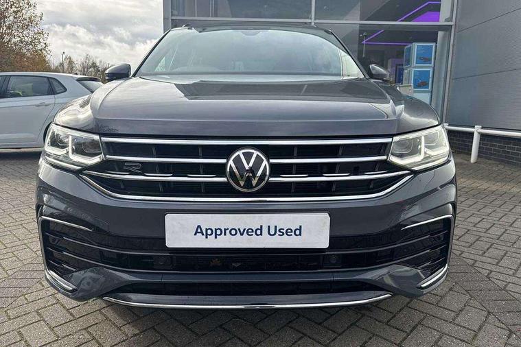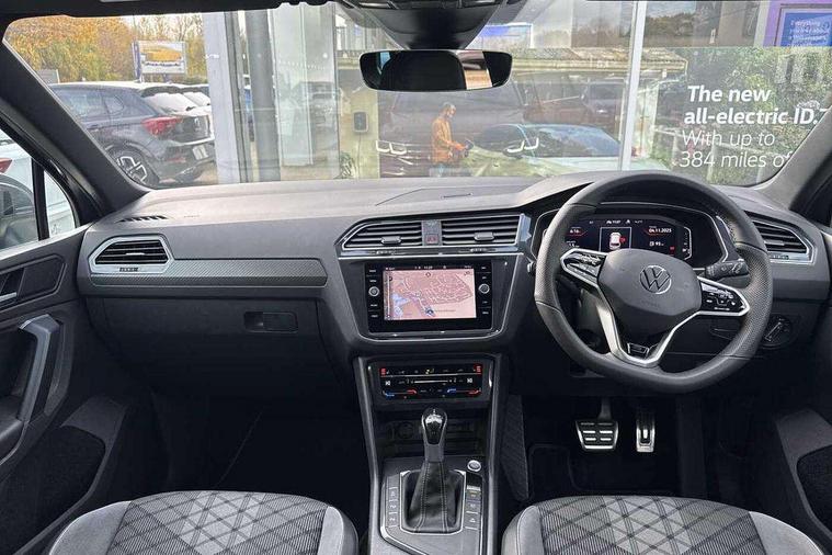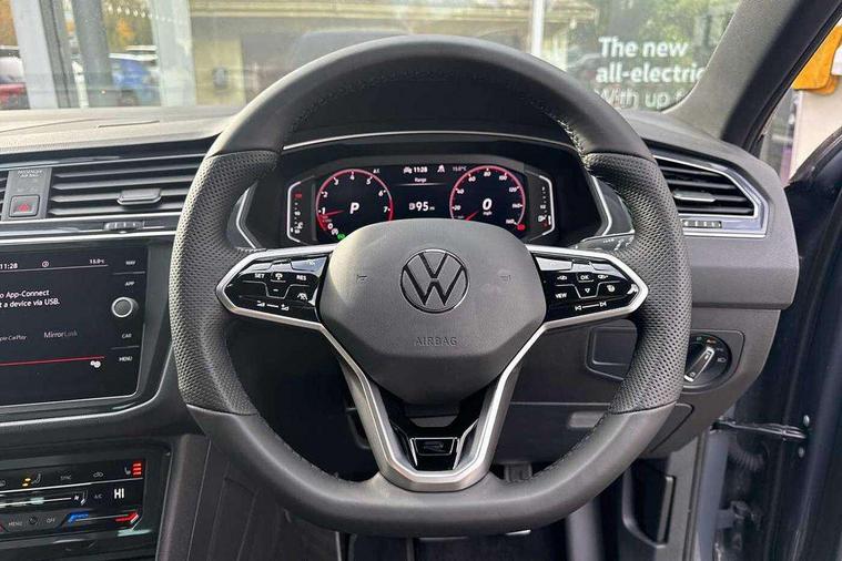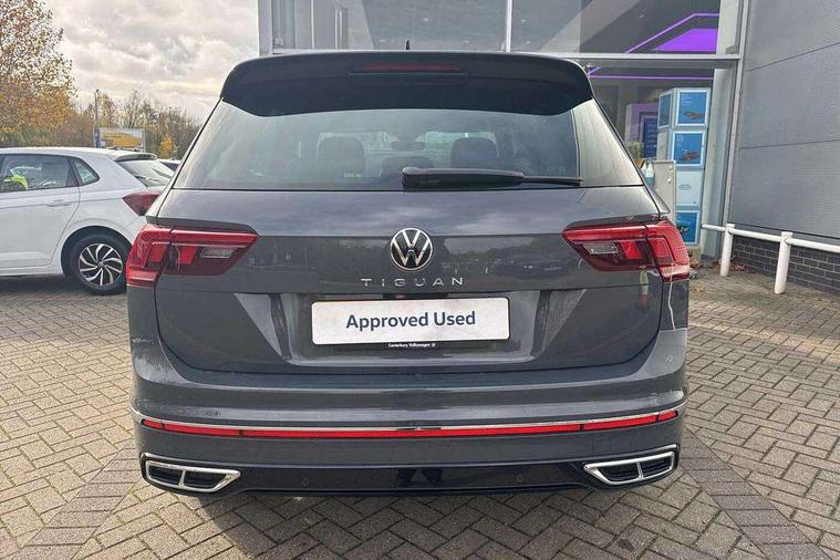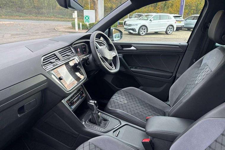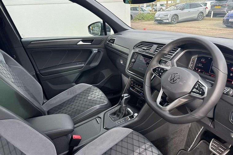 Ambience pack - Tiguan R Line, Driver assistance pack plus - Tiguan Auto, 20" Misano black with diamond turned surface alloy wheels with Airstop tyres, Anti theft alarm system with interior monitoring, backup horn and towing protection, Anti theft wheel bolts, Electronic engine immobiliser, 2 USB-C ports in the front, 1 USB-C charging socket on the center console in the rear, Diversity antenna for FM reception, Radio, SD card slot, Simultaneous pairing of 2 compatible mobile devices, SMS functionality - read, compose and send SMS messages using touch-screen display, Title and cover art display, 3 point seat belt for centre rear seats, 3 point seat belts with seat belt pretensioners for the outer rear seats, Active bonnet, Curtain airbags for front and rear passengers, Driver/Front Passenger airbags, Drivers knee airbag, Electronic parking brake with auto hold, Electronic Stability Control with driver steering recommendation, ABS, ASR, EDL, EDTC and trailer stabilization, Front assist with autonomous emergency braking (for Adaptive Cruise Control ACC up to 130 mph), Front disc brakes, Front passenger airbag deactivation, Front side airbags, Height adjustable front 3 point seatbelts + pretensioners, Hill hold control, Pedestrian monitoring system, Rear disc brakes, Rigid safety cell with front and rear crumple zones, Two tone horn, Warning sound and light for front seat belts if unfastened, Warning triangle, Auto dimming interior rear view mirror, Automatic headlight control system, Black roof rails, Body colour door handles, Body coloured bumpers in R Line style, Chrome moldings on the side windows, Coming/leaving home lighting function, Dynamic headlight range control, Front and rear electric windows, Heated rear window, High level 3rd brake light, Laminated safety glass windshield, heat and sound insulating, LED rear number plate lights, License plate carrier in front and rear, Poor weather light and cornering light, Power adjustable, folding and heated door mirrors with surround lighting, front passenger exterior mirror lowering function, Privacy glass for rear side windows and rear window, R Line body kit, R Line side sills, Rain sensor windscreen wipers, Rear exhaust tailpipe, Rear fog lamp, Rear spoiler in R style, Rear windscreen washer and wiper with interval delay, Side and rear windows in heat insulating glass, Trailer Stability Programme, Unique R Line badging, Windscreen wipers/ intermittent wipe + 4 position delay, 12V outlet in center console rear and in luggage compartment, 12V outlet in front and tray, 2 cup holders in front, 2 LED front reading lights, 2 LED rear reading lights, 3 rear headrests, 4 load lashing points, 40:20:40 split folding rear seats, Air Care Climatronic 3 zone automatic climate control with enhanced air filter and controls in the rear, Backrest release for left front seat, Black headlining, Brushed stainless steel pedals and footrest, Carpet mats in front and rear with decorative stitching in Gray, Door and side trim panel in foam film, insert in leatherette, Driver + front passenger lumbar support, Front footwell illumination, Front seats head restraints (x-adjustment), Height adjustable front seats, Height/reach adjust steering wheel, Instrument lighting white adjustable panel illumination, Interior light with delay, Isofix Preparation 2 Rear child seats, Leather gear knob, Leather wrapped multifunction steering wheel with paddle shift, Lockable cooled glovebox, Luggage compartment lighting, Rear bench seat asymetrically split folding, longitudinally movable and folding with load-through hatch and center armrest, Remote unlocking for rear seat backrest, Removable luggage cover, Safety optimised front head restraints, Sliding/reclining rear seats, Standard rear seat release, Storage compartment in driver's door, Storage compartment in passenger's door, Storage compartment in rear doors, Storage compartments in luggage area left and right, Storage tray on dashboard, Sun visors with illuminated vanity mirrors, Tool kit, Top front comfort seats, Variable boot floor, height adjustable and removable, Adaptive cruise control ACC stop and go including speed limiter, App-Connect incl. App-Connect Wireless for Apple CarPlay and Android Auto, Bluetooth phone integration system, Digital Cockpit Pro - Active info display, Distance control assist, Driver alert system, Driver profile selection, Dynamic road sign display, eCall emergency call system, Electromechanical speed sensitive power steering, Front/rear Parking distance control, Lane keeping system Lane Assist, Lights on warning, Multifunction front facing camera, Outside temperature display, Premium multifunction display with multi colour display, Service interval indicator, Start/stop system with regenerative braking, Tailgate/trunk lid unlocking from outside, Warning sound and light for doors and tailgate open, Battery regeneration during braking, XDS electronic differential lock for improved traction and handling,