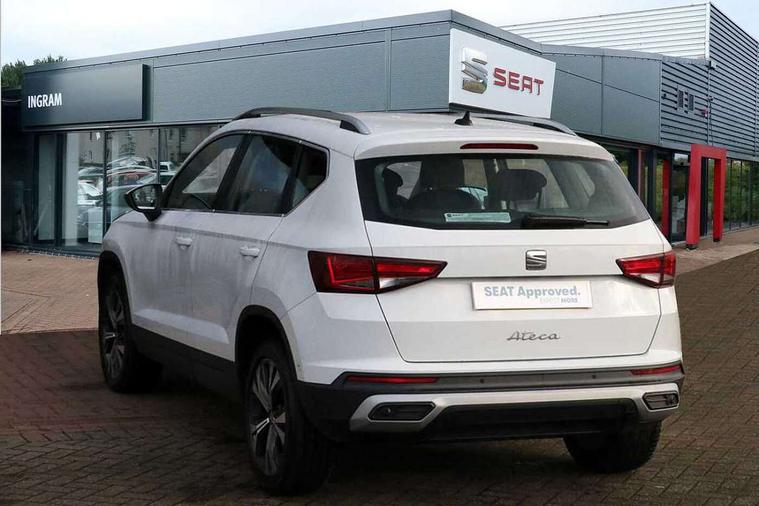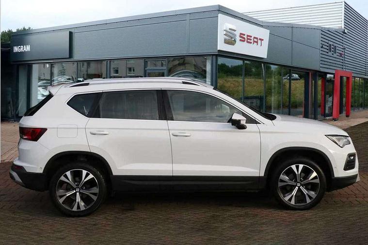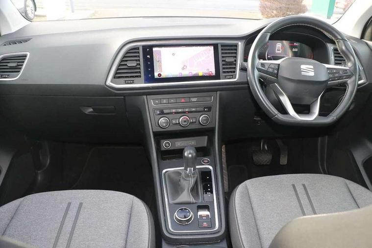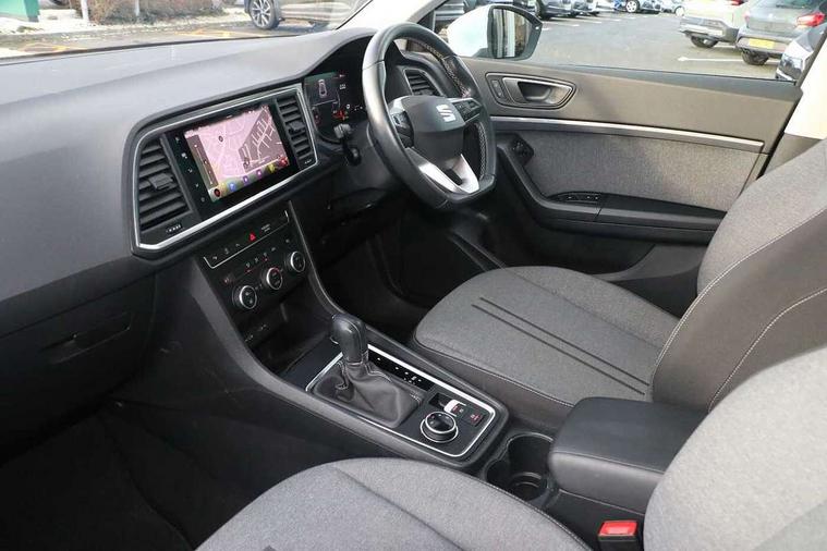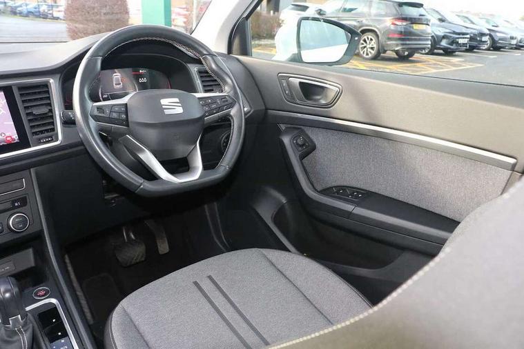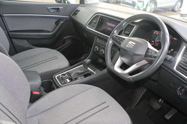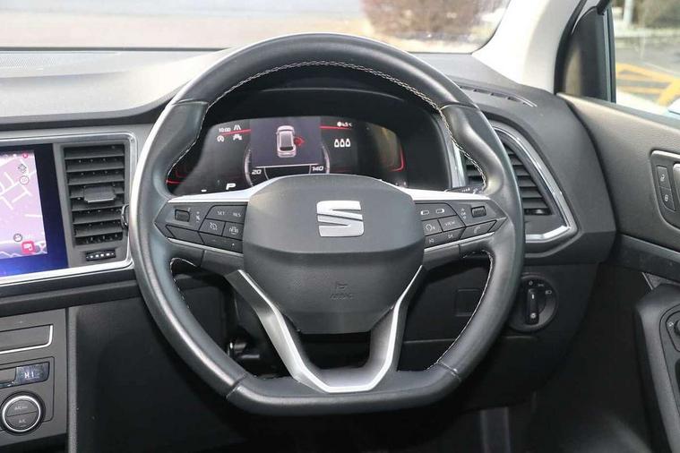 8" Digital cockpit, Colour multi-function on board computer display, Cruise control system with speed limiter, E-call, Outside temperature gauge, PAS, SEAT drive profile with driving experience button - Normal, Sport, Eco and Individual mode, gearshift, steering and throttle response, Self parking functionality (includes front and rear parking sensors), Start/stop system, Tailgate, Trip computer, Wireless full link smartphone integration, Wireless phone charger, Steering wheel mounted audio/phone controls, Black wheel arch surrounds, Body colour bumpers, Chrome front grille frame, Chrome roof rails, Chrome side window trim, Daytime running lights, Door mirrors with welcome light silhouette, Dynamic headlight range control with self adjusting whilst driving, Electric adjustable/heated/folding door mirrors, Front and rear electric windows, Full LED headlamps with lens and LED front fog lamps with cornering function, LED rear tail lights with dynamic indicators, Rear fog lights, Rear side wing doors, Rear wash/wipe, Simulated exhaust pipes, Third brake light, Variable front intermittent wipers, 12v socket in front, 3 seat bench in 2nd row, 60/40 split folding rear seat, Cloth upholstery with front comfort seats, Drawer under right front seat, Dual zone climate control, Front and rear head restraints, Front centre armrest, Front seat back storage pockets, Height adjustable driver and passenger seat with lumbar adjustment, ISOFIX points in outer rear seats with top tether anchorage points, Leather steering wheel and gear knob, Rear armrest and easy back seat release mechanism from boot, Single front passenger seat, Steering wheel mounted gearshift paddles, Interior lighting pack - Ateca, Navigation system pack with DAB - Ateca, 3x3 point rear seatbelts, ABS, Traction control system (TCS), Electronic stability control (ESC) and Electronic differential lock system (XDS), Airbags - Driver and front passenger airbag with deactivation, front side, two curtain and driver's knee airbags, Electric parking brake with auto hold function, Front and rear seatbelt reminder, Front assist with autonomous emergency braking, Hill hold control, Manual rear child locks, Single tone horn, Tiredness recognition system, Traction control, Tyre pressure monitoring system, Alarm, Keyless entry, Locking wheel bolts, Remote central locking, Chrome interior detailing, 18" Performance machined alloy wheels 36/2 in nuclear grey,