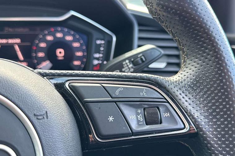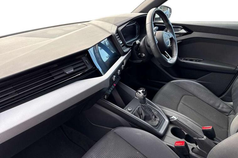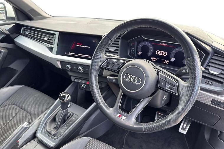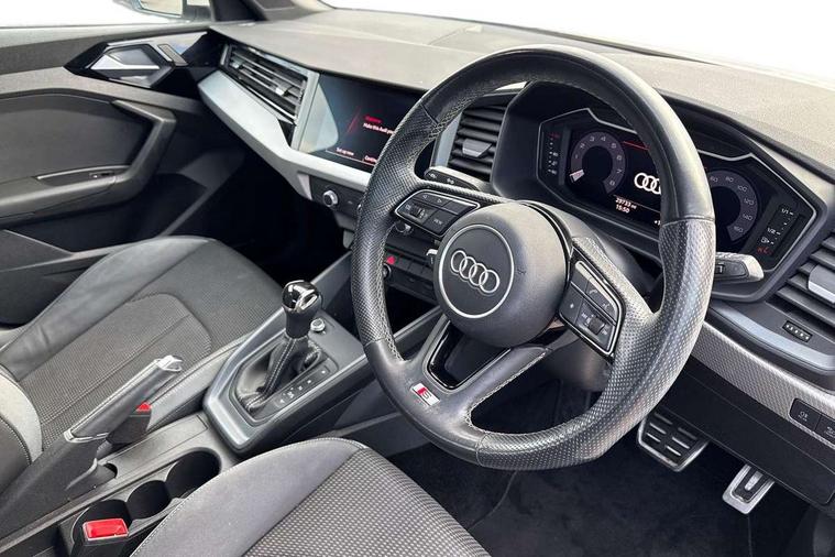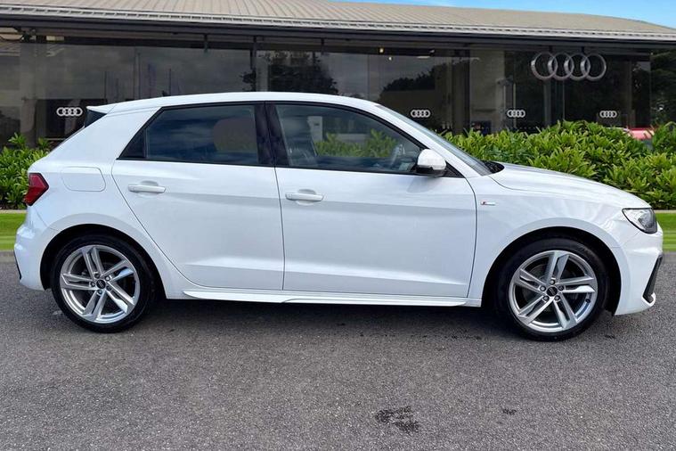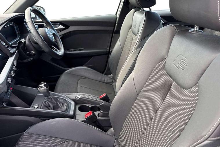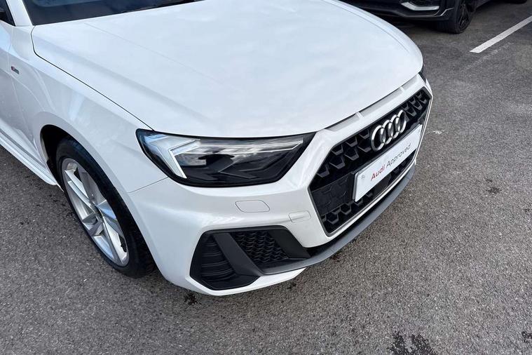 Aluminium trim for control switches, air vents and digital instrument cluster, Silver grey inlays polygon structure in diamond paint finish, Structured grey accent areas including air vents, door handle recesses and centre console in quartz paint finish, LED interior lighting pack - A1, Luggage compartment pack - A1, S line exterior styling pack - A1 Sportback, Anti theft alarm, Anti theft wheel bolts and loose wheel warning, Immobiliser, Remote central locking with 2 foldaway keys, 1 x SDXC card reader, 2 x USB type C connection points, DAB Digital radio, MMI radio plus with 8.8" colour MMI display screen and MMI touch, 3x3 point rear seatbelts, Audi pre-sense front with pedestrain and cyclist recognition, Brake assist function, Driver and front passenger airbag with front side and head airbags, Electronic Stability Control including ABS, EBD, ASR and EDL, Front passenger airbag deactivation switch, Hill hold assist, Seatbelt height adjustment for front seats, Seatbelt monitoring, Tyre pressure warning light, Warning triangle and first aid kit, Auto dimming rear view mirror, Body coloured door mirrors, Door sills with aluminium inlays and S Line logo, Electric front and rear windows, Electrically adjustable, heated, folding door mirrors with integrated LED side indicator, Front side air inlets in grained matt black and C frame in titanium black, Heat insulating glass windscreen and side windows, Heated rear windscreen, LED headlights with LED rear lights + dynamic rear indicators + headlight adjustment and high beam, turning light + LED daytime running lights, Radiator grille and rear diffuser in matt titanium black, Radiator protective grille frame in matt aluminium silver, Rain and light sensors, Rear fog lights, Rear wiper, S line badges on front wings, Side front spoiler lips in grained matt black, 12V socket in centre console with two cup holders, 3 rear seats with headrests, 40:60 Split folding rear seat or folded fully, Black cloth headlining, Driver and passenger seat with manual height adjust with forward and backwards adjustment, Front and rear black floor mats with contrast stitching in fine silver, Front head restraints, Height and reach adjustable steering wheel, ISOFIX child seat mounting for front passenger and outer rear seats including top tether attachment point of outer rear seats, Leather gear knob with aluminium trim, Luggage compartment light with front and rear reading lights, Manually adjustable lumbar support in front seats, Stainless steel pedals, 10.25" Digital instrument cluster display classis style instrument dials + speed, odometer, time, outside temperature, telephone menu + fuel level warning, Audi connect safety emergency and service including E-call, Audi drive select - power steering assistance + engine + gear shift 3 preset modes (auto, dynamic, efficiency and an Individual mode), Audi smartphone interface with connect compatible smartphone via USB directly MMI display + Nav, music, third party apps controlled via MMI controller, Automatic start/stop system, Bluetooth interface, Cruise control, Driver's information system, Electromechanical power steering, Lane departure warning system, Service interval indicator, Speed limiter, Voice control system, Washer fluid level indicator, Sports suspension,