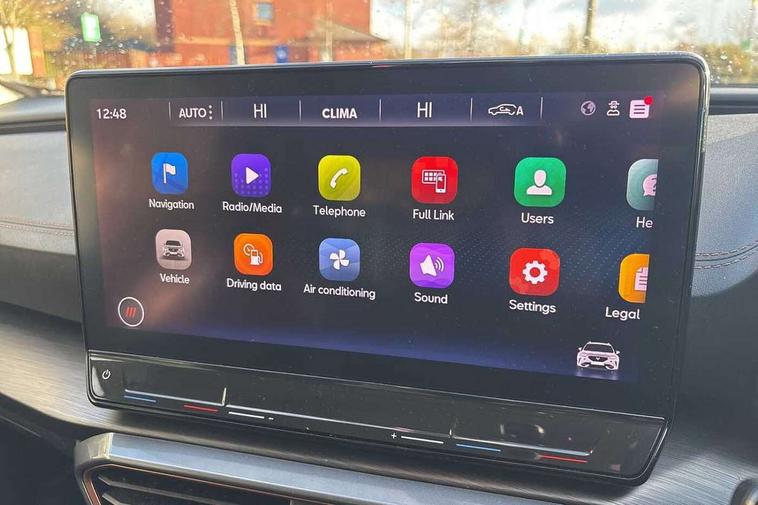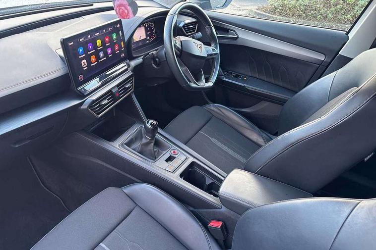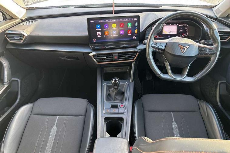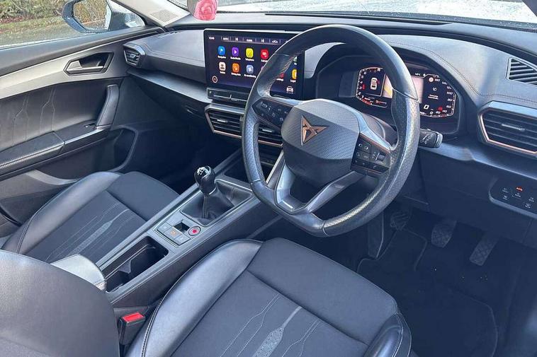 Copper and aluminium interior detailing, Navigation system pack with 10" navigation system - Formentor, Safety and driving pack (M) - Formentor, Anti theft alarm system, Keyless entry and start system (KESSY), Locking wheel bolts, 2 front and 2 rear USB type C sockets, Auxiliary input socket, DAB radio, 3 point seatbelts on all rear seats, ABS, Brake control system - ESC and brake booster, Child proof door locks, Driver and front passenger airbags with front passenger airbag de-activation, Electronic parking brake, Front and rear disc brakes, Front side curtain airbags, Hill hold control, Seat belt reminder for front and rear seats, Tyre pressure monitoring system, Auto dimming rear view mirror, Body colour door handles, Body coloured bumpers, Dark grey wing mirror, Daytime running light with automatic headlight control and coming home feature, Dynamic headlight range control, Electric front/rear windows, Electrically adjustable, heated and folding door mirrors, Front fog lamps with cornering function, Gloss black roof rails and window surrounds, LED Headlights, LED Taillights with dynamic indicator, Rain sensing wipers, Rear diffuser with black simulated exhaust pipes, Rear side wing doors, Rear wash/wipe, Third brake light, Tinted rear windows, Welcome lights, 12v power supply in centre console, 12V socket, 12v socket in loadspace, 2 front and 2 rear reading lights, 230V socket, 3 seat bench in 2nd row, 60/40 split rear bench seat with armrest and mechanical seat release, Dust/pollen filter, Front and rear head restraints, Front centre armrest, Height/reach adjust steering wheel, Illuminated interior front door sills, Illuminated sunvisor with mirror, Interior ambient lighting, Isofix, Leather multi function steering wheel, Luggage tie-down hooks, Manually adjustable height and lumbar support for front seats, PVC/Cloth upholstery with copper stitching + Sport seats, Single front passenger seat, Three zone climate control with control panel in rear, Variable luggage/load compartment floor, Digital cockpit and configurable dashboard, Driver alert system, Driving profile selection, E-call, Forward collision warning with automatic braking, Lane assist, PAS, Predictive adaptive cruise control with speed limiter, Rear parking sensors, RPM, trip computer, outside temp gauge, instrument light brightness, low fuel warning light, lights on reminder, gearshift indicator, Service interval indicator, Start/stop system with regenerative braking, Wireless apple carplay, Wireless phone charger, Electronic locking differential and dynamic traction support, Standard suspension,