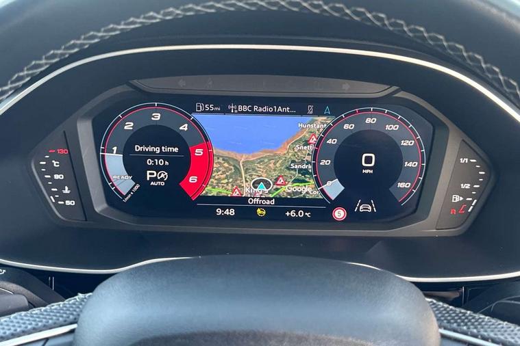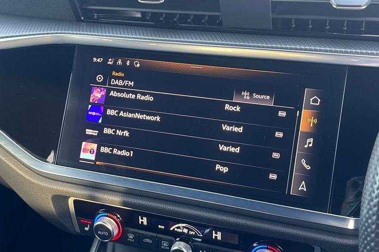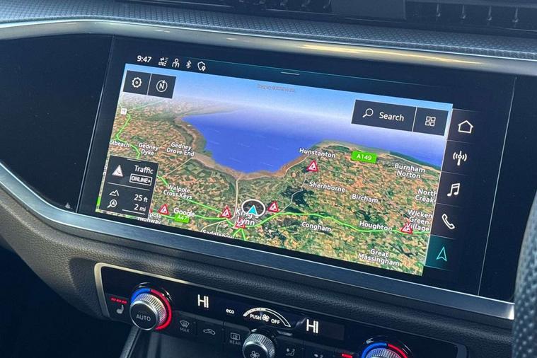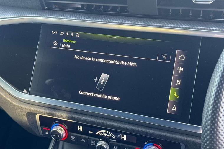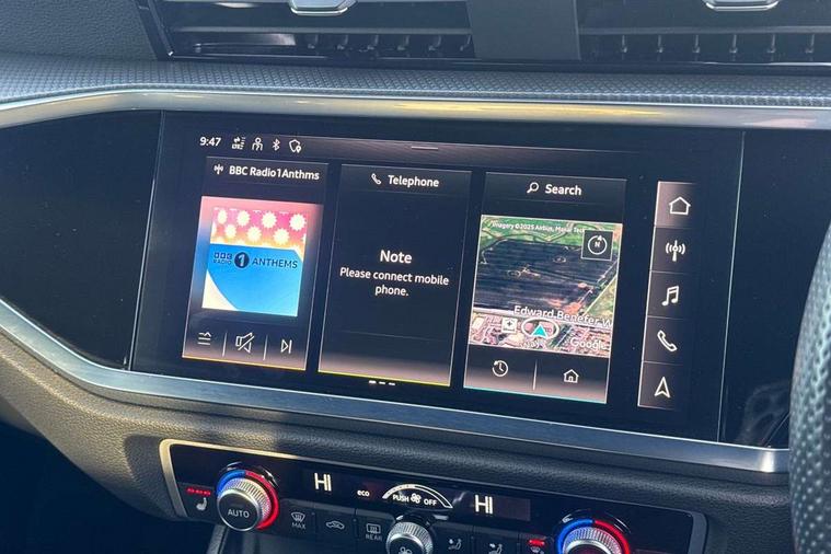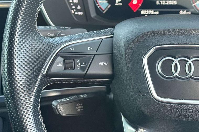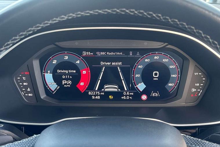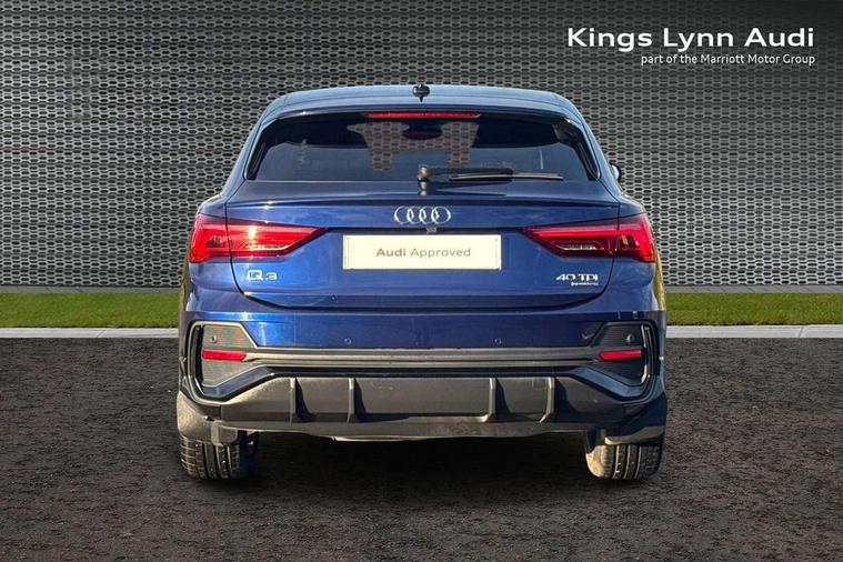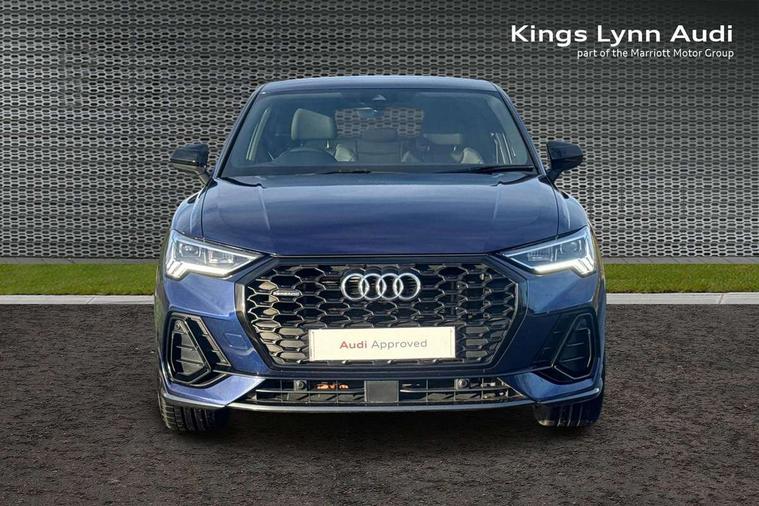 Aluminium look interior elements, Black dashboard, Detail dashboard around MMI touch colour display in glass look, black with surround in aluminium look, Leatherette door armrest, Piano black inlay, Ambient lighting pack - Q3, Black styling pack - Q3, Non smoking pack - Q3, 19" 5 twin arm design diamond cut audi sport alloy wheels in matt grey look, Anti theft alarm, Anti theft wheel bolts, Immobiliser, Remote central locking, 2 USB-C ports with charge and data functions, 6 passive loudspeakers, DAB digital radio module, 3x3 point rear seatbelts, 6 airbags - Driver, front passenger, curtain and side windows, Audi pre-sense front with pedestrain and cyclist recognition, Electrically operated child locks on rear doors, Electromechanical parking brake, Electronic stabilisation control including ABS, ASR and EDL, Front seatbelt reminder, Hill descent control, Hill hold assist, Pre sense basic, Seatbelt monitoring, Tyre pressure warning, Warning triangle and first aid kit, Acoustic windscreen, Auto dimming frameless rear view mirror, Diffuser grille in grained matt black, Diffuser trim in selenite silver, Electrically folding, adjustable and heated door mirrors with integrated LED side indicators and kerb view function for passenger side, Front and rear electric windows, Front fog lights, Front underbody protection in manhattan grey paint finish, High gloss black finish B and C pillars, LED Dynamic rear indicators, LED headlights with LED daytime running lights, LED rear lights, LED third brake light, Privacy glass dark tinted rear and rear-side windows (from B-pillar backwards), Rain and light sensors, Rear side wing doors, Rear underbody protection in matt black, Rear wiper, Variable front intermittent wipers, 12V socket in rear centre console, 3 seat bench in 2nd row, 40:20:40 folding with manual adjustment for 60:40 forwards/backwards position and backrest angle, Adjustable rear seat bench/backrest with centre armrest and cupholder, Black cloth headlining, Dual zone electronic climate control, Front and rear black floor mats with contrast stitching, Front and rear headrests, Front and rear roof module including reading lights, Front centre armrest, Glove compartment lighting, Height and reach adjustable steering wheel, Illuminated door sill trims with S logo, ISOFIX child seat mounting for front passenger with airbag deactivation and outer rear seat including top tether attachment point for outer rear seats, Luggage compartment light right in white, Luggage compartment sill protection in stainless steel, Manual front seats with height adjustment, Perforated leather gearknob, Single front passenger seat, Stainless steel pedals, Audi drive select, Audi lane departure warning, Audi smartphone interface includes wireless Apple carplay/Android Auto, Audi Virtual Cockpit - 10.25" display, Bluetooth interface, Camera based traffic sign recognition, Legal emergency call, MMI Navigation Plus with high resolution 10.1 inch touchscreen colour display, Power operated tailgate, Progressive steering, Service interval indicator, Start stop system with recuperation, Voice control system with natural language interaction, Diesel particulate filter, Sports suspension,