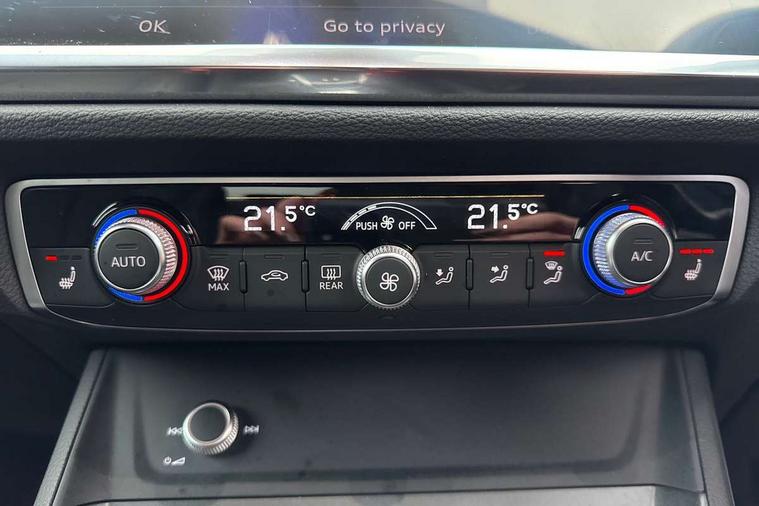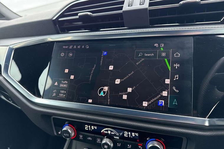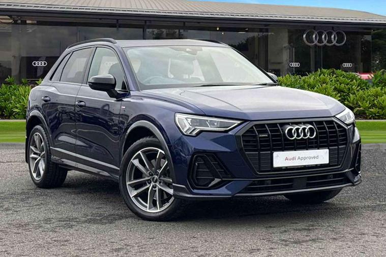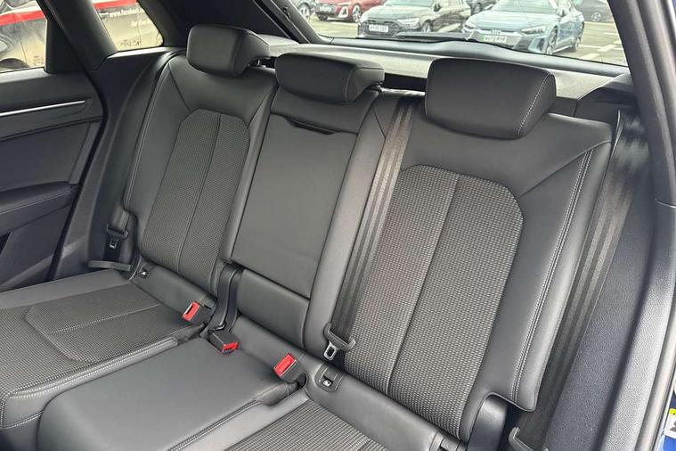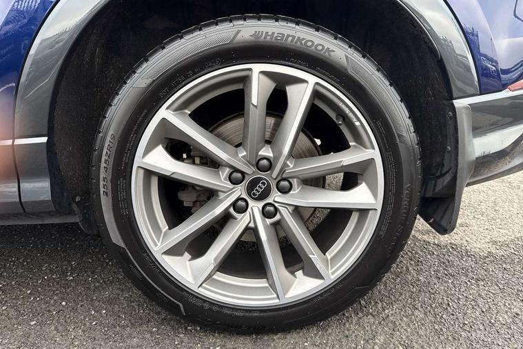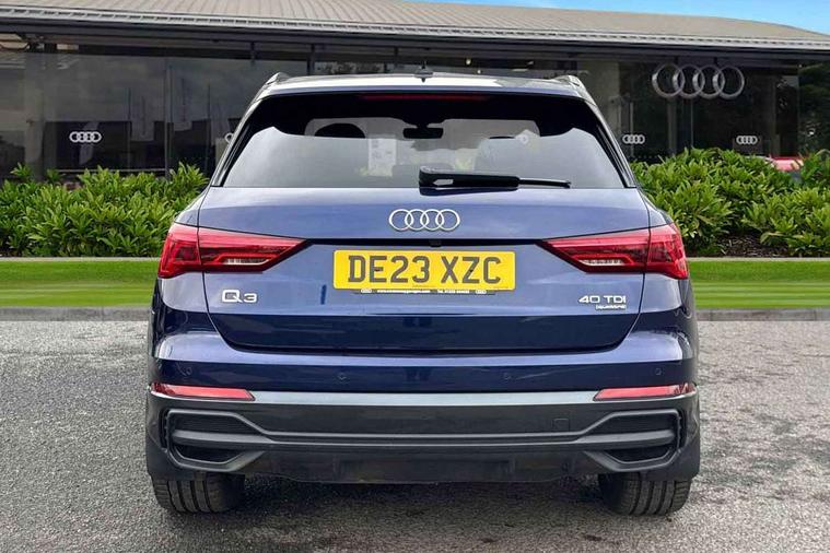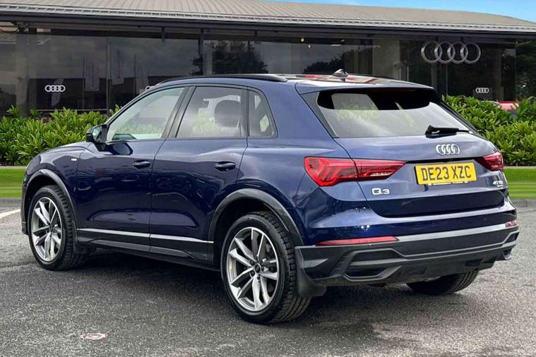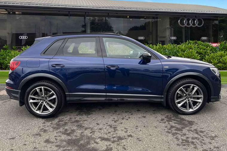 Aluminium look interior elements, Detail dashboard around MMI touch colour display in glass look, black with surround in aluminium look, Leatherette door armrest, Piano black inlay, Ambient lighting pack - Q3, Black styling pack - Q3, Non smoking pack - Q3, 19" 5 twin arm design diamond cut audi sport alloy wheels in matt grey look, Anti theft alarm, Anti theft wheel bolts, Immobiliser, Remote central locking, 2 USB-C ports with charge and data functions, 6 passive loudspeakers, DAB digital radio module, 3x3 point rear seatbelts, 6 airbags - Driver, front passenger, curtain and side windows, Audi pre-sense front with pedestrain and cyclist recognition, Electrically operated child locks on rear doors, Electromechanical parking brake, Electronic stabilisation control including ABS, ASR and EDL, Front seatbelt reminder, Hill descent control, Hill hold assist, Pre sense basic, Seatbelt monitoring, Tyre pressure warning, Warning triangle and first aid kit, Acoustic windscreen, Auto dimming frameless rear view mirror, Black roof rails, Electrically folding, adjustable and heated door mirrors with integrated LED side indicators and kerb view function for passenger side, Front and rear electric windows, Front fog lights, Grille vertical bars in aluminium silver/Matt, High gloss black finish B and C pillars, LED Dynamic rear indicators, LED headlights with LED daytime running lights, LED rear lights, LED third brake light, Privacy glass dark tinted rear and rear-side windows (from B-pillar backwards), Rain and light sensors, Rear diffuser grille in grained matt black, Rear diffuser strip in matt anthracite black, Rear side wing doors, Rear wiper, S line bumpers in contrasting Manhattan grey, Variable front intermittent wipers, 12V socket in rear centre console, 3 seat bench in 2nd row, 40:20:40 folding with manual adjustment for 60:40 forwards/backwards position and backrest angle, Adjustable rear seat bench/backrest with centre armrest and cupholder, Black cloth headlining, Dual zone electronic climate control, Front and rear black floor mats with contrast stitching in rock grey, Front and rear headrests, Front and rear roof module including reading lights, Front centre armrest, Glove compartment lighting, Height and reach adjustable steering wheel, Illuminated door sill trims with S logo, ISOFIX child seat mounting for front passenger with airbag deactivation and outer rear seat including top tether attachment point for outer rear seats, Luggage compartment light, Manual front seats with height adjustment, Perforated leather gearknob, Single front passenger seat, Stainless steel luggage compartment sill finisher, Stainless steel pedals, Amazon alexa Integration, Audi drive select, Audi lane departure warning, Audi smartphone interface includes wireless Apple carplay/Android Auto, Audi Virtual Cockpit - 10.25" display, Bluetooth interface, Camera based traffic sign recognition, Legal emergency call, MMI Navigation Plus with high resolution 10.1 inch touchscreen colour display, Power operated tailgate, Progressive steering, Service interval indicator, Start stop system with recuperation, Voice control system with natural language interaction, Diesel particulate filter, Sports suspension,