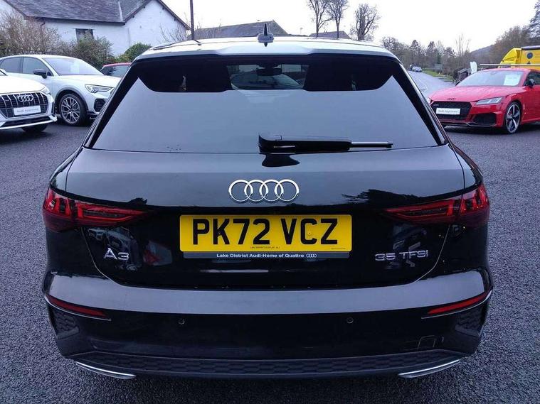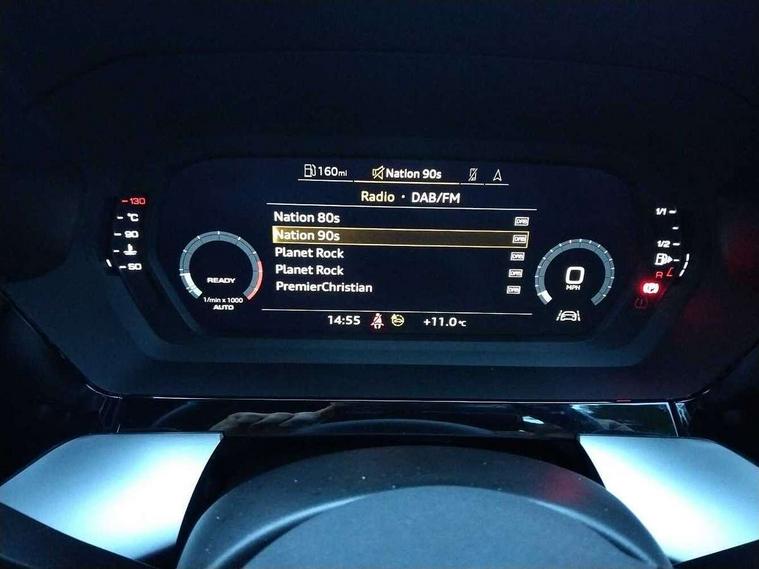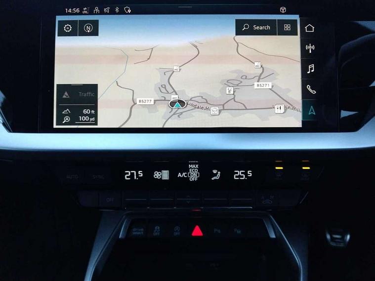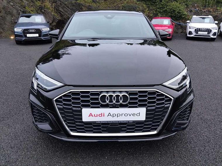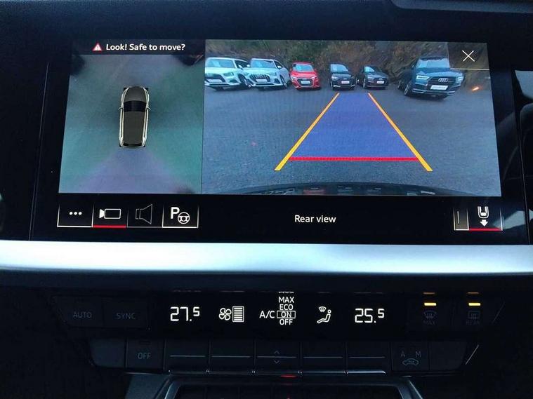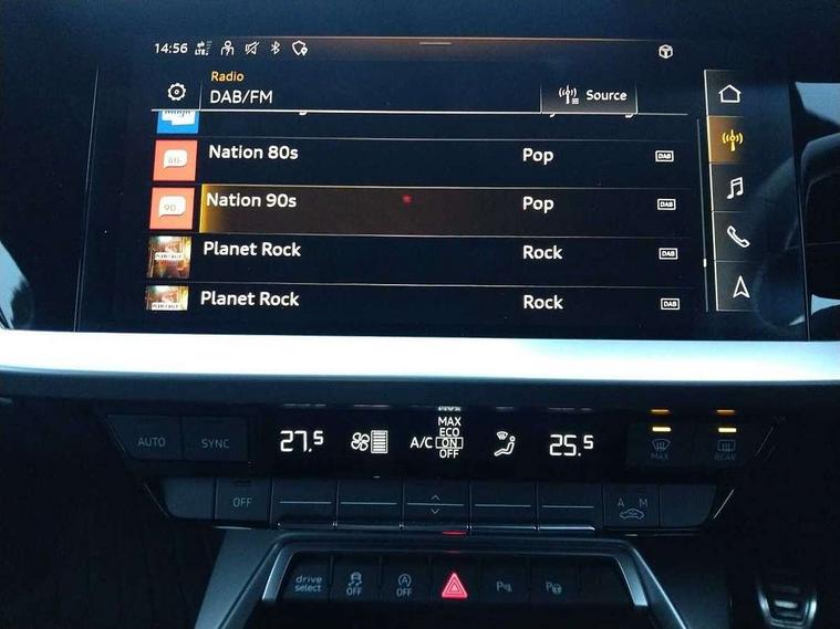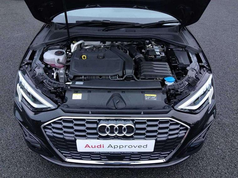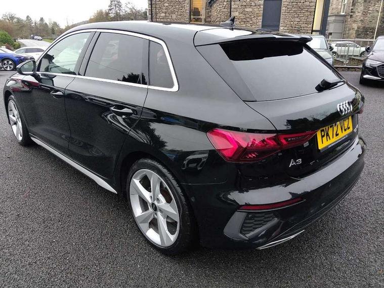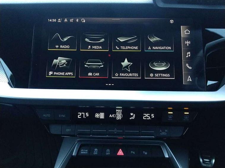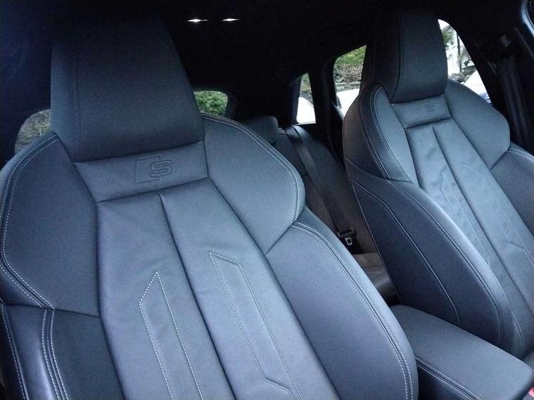 Accent surfaces in the dashboard and centre console in platinum grey silk effect paint finish, Dark spectrum aluminium inlays, Aluminium interior elements pack - A3 Sportback, LED interior lighting pack - A3 Sportback, S line styling pack - A3 Sportback, Anti theft alarm, Anti-theft wheel bolts, Electronically operated child lock, Immobiliser, Remote control central locking, 2xUSB-C connection with data and charging functions, 6 passive loudspeakers, DAB Digital radio, 3x3 point rear seat belts, Audi pre sense front, Driver and front passenger airbag with passenger airbag deactivation, Electronic Stabilisation Control (ESC) including ABS, ASR and EDL, First aid kit with warning triangle and 2 safety vests, Front side airbags with head airbags and interaction airbag, Pre-sense front with pedestrian and cyclist detection, Seatbelt monitoring, Tyre pressure loss indicator, 3rd brake light, Acoustic glass windscreen, Aluminium window trim, Auto dimming frameless rear view mirror, Electrically adjustable/heated/folding/dimming door mirrors with kerb view includes integrated LED indications + kerb view function for passenger side, Front electric windows, Illuminated aluminium inserts front door sills with S logo, LED daytime running lights, LED headlights with LED rear lights and dynamic rear indicators, Light and rain sensors, Privacy glass - dark tinted rear window, rear door and side windows, Rear electric windows, Rear side air outlets in grained matt black, Rear side wing doors, Rear wiper, S line bumpers, S roof spoiler, 12V socket and storage compartment in front centre console, 3 seat bench in 2nd row, 40/20/40 split folding rear seat bench with cupholder, Black cloth headlining, Dual zone electronic climate control, Front and rear centre armrest in leather, Front and rear headrests, Front/rear floor mats, Height and reach adjustable steering wheel, Illuminated vanity mirror, Interior lighting - glove compartment light and right hand side, Luggage compartment floor covering, Manual boot compartment lid, Manually adjustable front seats, Seat side bolsters, Single front passenger seat, Stainless steel pedals and front footrest in black, Twin leather upholstery with front sports seats S embossed logo, Audi drive select (Auto, Comfort, Dynamic, Efficiency and Individual), Audi smartphone interface, Audi Virtual Cockpit - 10.25" digital and colour instrument cluster, Automatic start/stop system with recuperation, Bluetooth interface, Collision avoidance assistant, Cruise control, e-Call (emergency call), Electromechanical power speed sensitive steering, Lane departure warning system, MMI Navigation Plus with high resolution 10.1" colour touch screen display, Rear parking sensors, Service indicator, Trip computer, Voice control system with natural language interaction,