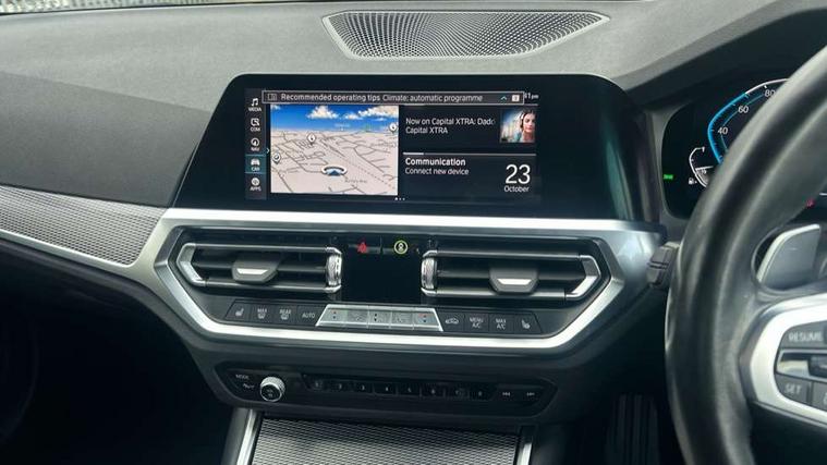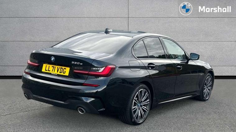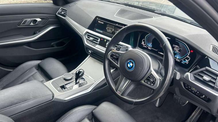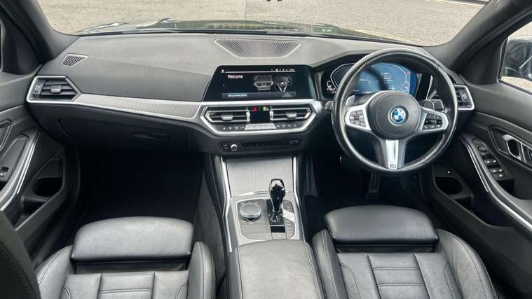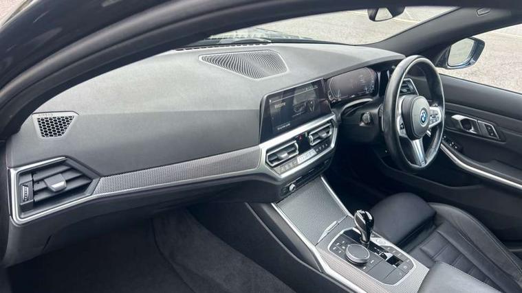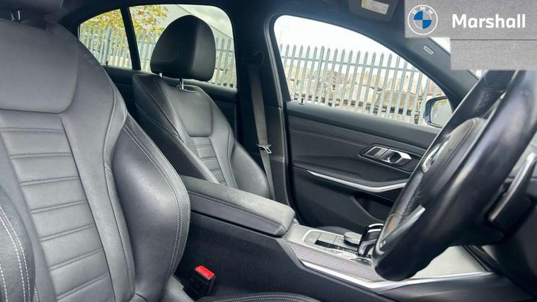 Connected pack professional - 3 Series Saloon/Touring, M sport exterior styling pack - 3 Series Saloon/Touring, Reduced rolling resistance tyres, Alarm system (Thatcham 1) with remote control and electronic engine immobiliser, Central locking switch for all doors, fuel filler cap and luggage compartment, Remote control with integrated key one button open/close vehicle and windows, sole opening of the luggage compartment lid and panic mode, Start/stop button with Comfort Go keyless engine start and auto Start/stop deactivation button, Vehicle key with M specific designation, DAB tuner, Electronic service booklet, 2 tone horn, BMW emergency call, Brake energy regeneration, Braking pre-tensioning, Child proof locking system in rear door, Child seat ISOFIX attachment rear outer seats, Coasting in idle in ECO PRO mode, Crash sensor activating of airbags, Unlocking doors, hazard warning lights, fuel cut off, interior lighting+activation of safety battery terminal clamp, Driver and front passenger side airbags, integrated in the door side seat backrest bolsters for all seat variants, Driver/Front Passenger airbags, Dry braking, Dynamic brake control, Dynamic stability control + (DSC+) - Anti-lock Braking System (ABS) with brake assist and cornering brake control + Automatic Stability Control (ASC), Dynamic Traction Control - DTC, Electromechanical parking brake including automatic hold function and automatic release of the parking brake when pulling away, Electronic differential lock control (EDLC), Front passenger manual airbag deactivation, Head airbags for all 4 outer seats, Hill start assist, Seat belt security check for driver and front passenger, Side impact protection, Three 3 point seat belts on all seats including front belt stopper, pyrotechnic belt tensioners and belt force limiters, Tyre pressure monitoring with three level warning strategy, Ventilated front and rear disc brakes, Warning triangle and first aid kit, Acoustic glazing, Active airstream chrome frame kidney grille with 8 high gloss black vertical slats, Automatic headlight beam throw control with load dependent regulating reaction, dynamic compensation of braking dive and acceleration squat, Black roof mouldings, Body colour door handles, Body colour front and rear bumpers, Body colour fuel filler flap, Body colour mirror caps with bottom segment in matt black, Dynamic brake lights, Electric windows - front and rear, with open/close fingertip control, anti-trap facility and comfort closing, Exhaust tailpipe - split left and right, Exterior mirrors - electrically folding with anti-dazzle, Fading support, Front and rear bumper system with replaceable deformation elements, Front black door sill finishers with BMW designation, Green tinted heat protection glazing, High gloss shadow line exterior trim, Interior rear view electrochromatic mirror with automatic anti dazzle function, LED daytime running lights, LED front fog lights, LED third brake light, Lightweight engineering, M designation on front side panels, left and right, Matt black exterior B pillar, Model designation on right side of tailgate, Rain sensor with automatic headlight activation, Rear boot, Rear side wing doors, Shark fin antenna, Two part LED tailights in L-shape with components in smoked glass, brake light, LED turn indicator and rear fog light, Visible VIN plate, Welcome lights in interior and door handle area, Windscreen wipers with integrated washing jets, 12V power socket in front storage compartment, 2 front cupholder in centre console with clamping elements and matt black inlay, 3 rear seats with non folding headrests with 3 point seat belts, 3 seat bench in 2nd row, 3 zone automatic air conditioning, 4 pieces lashing eyelets in luggage compartment, 40:20:40 split folding rear seat with loading system, Ambient lighting with welcome carpet light, Anthracite headlining, Armrest integrated in front and rear door trim + front centre console armrest, Backrest width adjustment, Centred top Luggage compartment lights, Four grab handles integrated in roof lining, Front and rear door exit lighting (left / right), Front and rear door pockets, Front and rear reading lights, Front and rear velour floor mats, Front head restraints, Front sport seats, Heated front seats, Height adjustable mechanically and infinitely variable steering column, Illuminated armrest storage compartment, Illuminated glove compartment with separate small compartment, Interior lighting - front centre over interior mirror with soft light, rear centre and front and rear footwell lighting, M sport leather steering wheel, Make-up mirror lights, Rear centre armrest with 2 cupholders, Rear centre console with storage compartment and ventilation grille, Single front passenger seat, Sunvisors with vanity mirrors and ticket pocket, Toolkit located in luggage compartment, Active guard plus, Attentiveness assist, Auto start-stop, Bluetooth hands free facility with USB audio interface with audio streaming, BMW Live Cockpit Professional Nav with 12.3" instrument display + 10.25" display, Intelligent Voice Assist, BMW OS 7, HDD, 2USB, 4G LTE connect, BMW service history, BMW Teleservices, Brake pad wear indicator in front and rear, Check Control warning system for monitoring of lights and door/luggage compartment open warning, Condition based service, Cruise control with brake function + speed limiter, Electric power steering with Servotronic steering optimised at all speed ranges, iDrive controller on centre console, Instrument cluster with speedometer with mph readout, tachometer, fuel gauge and oil temperature gauge, Integrated owners handbook, Oil sensor for level and grade, warning by check control system, On board computer - average speed+fuel consumption, service interval, clock/date, odometer/trip meter, outside temperature display and ice warning, Optimum shift indicator, Personal Profile - automatic lock when driving away selectable, Balanced 50/50 weight distribution, Battery cut-out switc