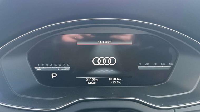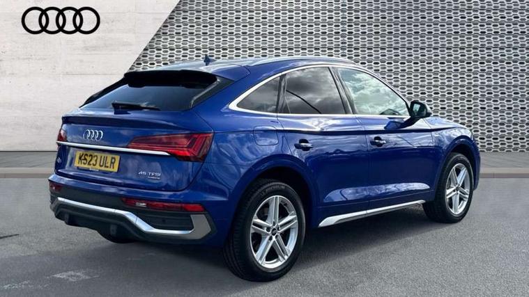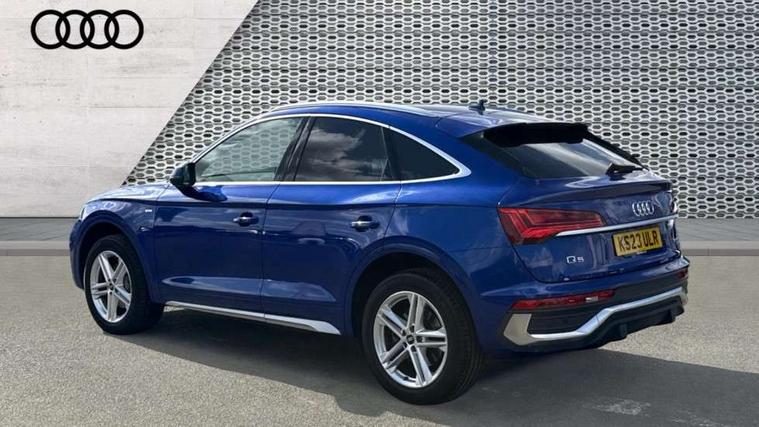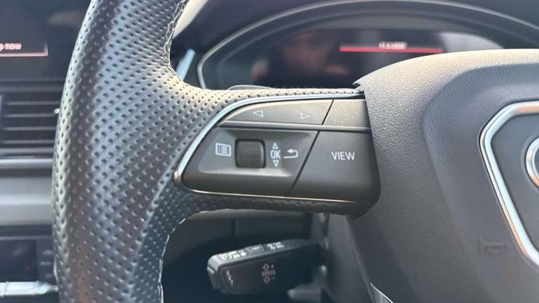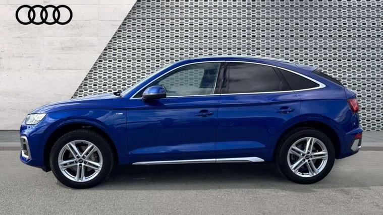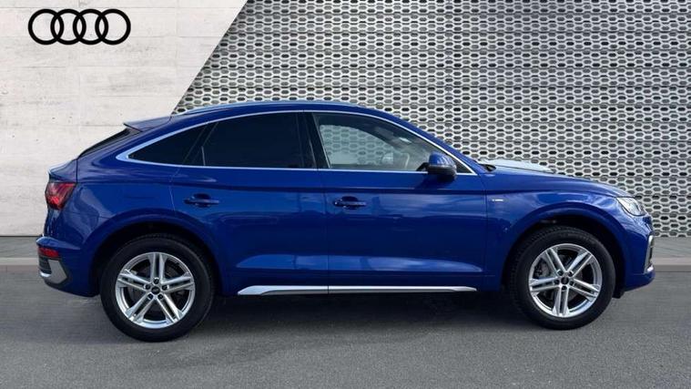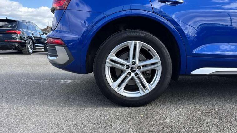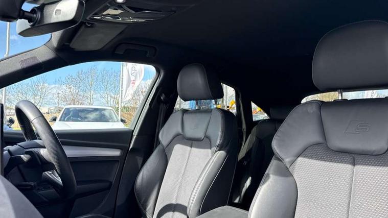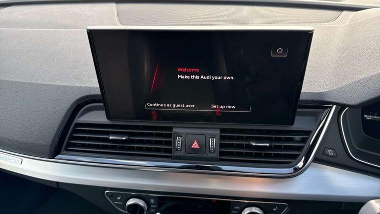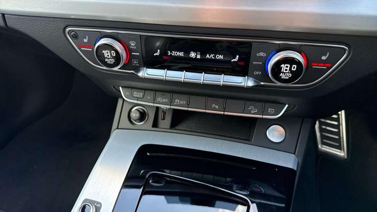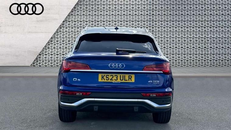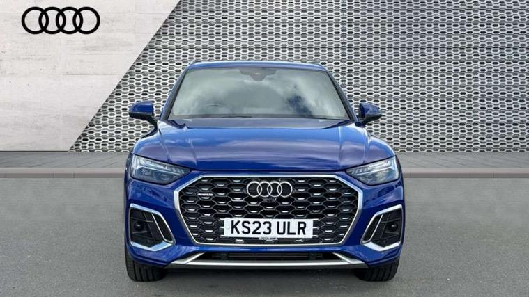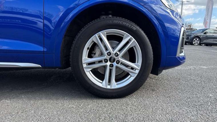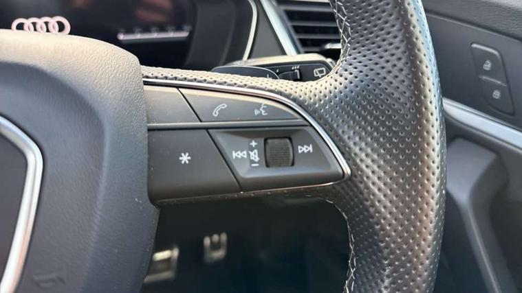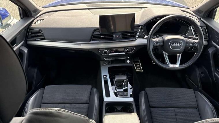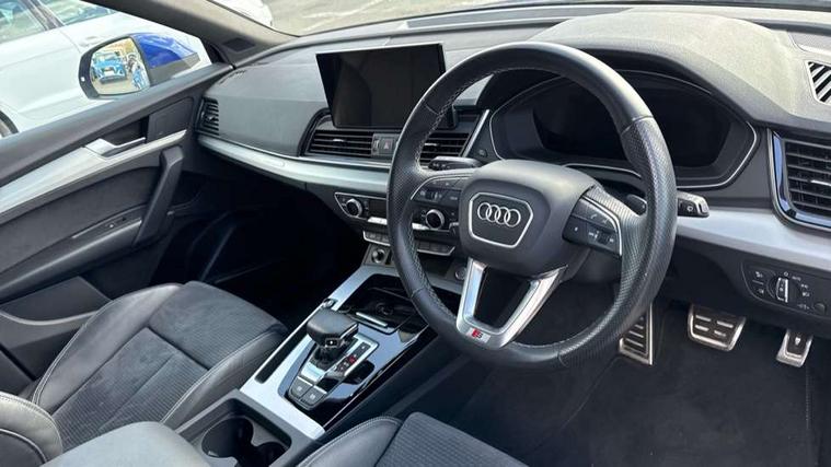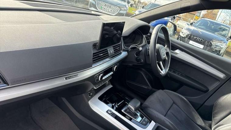 Air vents inserts and centre console in gloss black, Matt brushed aluminium inlays, High gloss pack - Q5, LED interior light pack - Q5, Tyre repair kit, Anti theft alarm, Anti-theft wheel bolts, Remote central locking, Remote control key with SAFELOCK and keyless go, 8 loudspeakers, DAB Digital radio, 3 point seatbelts on all seats, 6 airbags - Driver, front passenger, curtain and side airbags, Attention and drowsiness assist, Electrically operated child locks on rear doors, Electromechanical parking brake, Electronic stabilisation control including ABS, ASR and EDL, First aid kit with warning triangle and vests, Front passenger airbag deactivation, Hill descent control, Hill hold assist, ISOFIX child seat mounting for front passenger seat and ISOFIX child seat mounting with Top Tether for outer rear seats, Multi collision brake assist, Pop-up bonnet for pedestrian protection, Pre sense city, Seatbelt monitoring, Tyre pressure warning, 3rd brake light, Acoustic windscreen, Aluminium roof rails, Auto dimming door mirrors, Auto dimming frameless rear view mirror, Automatic headlight adjustment, Automatic headlights and windscreen wipers, Body colour bumpers, Body colour door mirrors, Body colour rear diffuser with matt aluminium silver surrounds, Body colour underbody protection, Chrome plated exhaust trims, Daytime running lights, Door sills in Selenite silver, Electric adjustable/heated/folding door mirrors, Front air inlet surrounds in aluminium, Front and rear electric windows, Front radiator grille in honeycomb design, LED headlights and LED tail lights, Lower bumpers painted in contrast Manhattan grey, Rear chrome trim strip below lights, Rear privacy glass and rear side windows, Rear side wing doors, Rear wiper, Roof bars, S Line badges on the front wing panels, S Line front and rear bumpers, S Line rear spoiler, S Line side skirts, 2 x USB charging port with aux input socket, 3 rear headrests, 3 spoke leather multifunction steering wheel with S badging perforated leather grips, Black cloth headlining, Comfort front centre armrest, Contrast stitching on seats, steering wheel and gear lever gaiter, Deluxe 3 zone electronic climate control, Front head restraints, Front sport seats with S embossed logo, Front/rear floor mats, Gear lever in black leather, Heated front seats, Height/reach adjustable steering column, Illuminated door sill trims with S logo, Loading edge protection in stainless steel, Luggage compartment cover, Manual seat adjustment with 4-way electric lumbar support, Single front passenger seat, Stainless steel pedals, Sunvisors with vanity mirrors, Tool kit, Acoustic front and rear parking sensor, Audi connect safety and service (e-call), Audi drive select, Audi virtual cockpit plus with 12.3" screen and three different layout designs, Audi wireless smartphone interface, Automatic start-stop system with coasting functionality and efficiency programme, Bluetooth interface, Camera based traffic sign recognition, Electro - mechanical power assisted steering, Lane departure warning, MMI navigation plus with 10.1" touch screen, Power tailgate, Reversing camera, Service interval indicator, Voice control system with Audi hotword activation "Hey Audi", Quattro on demand, S line sports suspension,