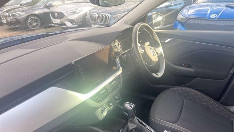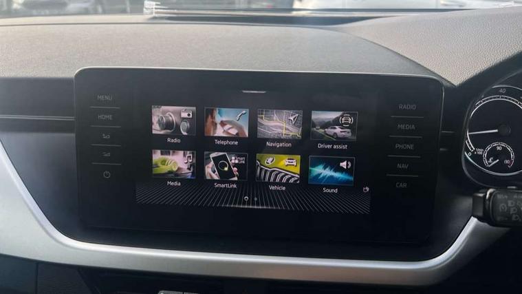 Silver haptic decorative insert on the dashboard with hot stamping in glossy black, Anti-theft alarm system with interior monitoring, backup horn, towing protection and remote central locking with SAFE system, Anti-theft wheel bolts, Electronic engine immobilizer, 8 speakers, Auxiliary input socket, DAB Digital radio, 3x3 point rear seatbelts, Airbags - driver and front passenger, ESP, Front passenger airbag deactivation switch, Front side airbags with curtain airbags, Hill hold control, Manual parking brake, Manual rear child locks, One tone horn, Rear disc brakes, Seatbelt reminder for driver an co-driver, Traction control, Tyre pressure monitor, Body colour bumpers, Body colour door mirrors and handles, Chrome grille surround, Dimming rear view mirror with black surround, Electrically adjustable and heated door mirrors, Front and rear electric windows, Headlight range control, Heated rear window, LED rear lights - low functionality, LED third brake light, Light sensors, Privacy glass, Rain sensor, Rear fog lights, Rear side wing doors, Rear wiper, 12V Accessory socket in centre console, 3 seat bench in 2nd row, Chrome inner door handles, Cloth upholstery, Front head restraints, Glove compartment with illumination, Height adjustable driver and front passenger seats - manual, Ice scraper, Isofix child seat fittings on outer rear seats, ISOFIX on front passenger seat, Manual lumbar support for front seats, Rake/reach adjustable steering wheel, Reading lights, Single front passenger seat, Sun visors with illumination on front passenger, Textile floor mats, Third rear headrest, Top tether for front passenger seat, Umbrella in driver's door, Amundsen satellite navigation with 9.2" glass colour touchscreen display, web radio, voice control and traffic sign recognition, Bluetooth system, E-call, Front assist system, Gesture control, PAS, Service indicator, Speed limiter, Wireless SmartLink for apple car play, android auto and mirrorlink,