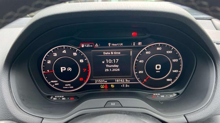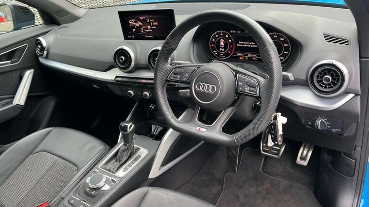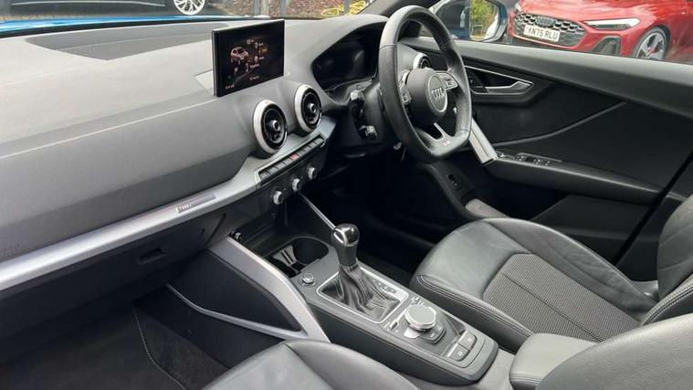 Aluminium interior element, Black dashboard, Matt brushed aluminium trim inlays, Black styling pack - Q2, Anti theft alarm, Anti theft wheel bolts, Electronically operated child locks, Remote central door locking, 6 passive loudspeakers, DAB Digital radio, 3x3 point rear seatbelts, 6 airbags - Front, curtain and front side airbags, Electromechanical parking brake, Electronic stabilisation control including ABS, ASR and EDL, Front passenger airbag deactivation, Hill hold assist, Pre-sense front with pedestrian recognition, Seatbelt monitoring, Tyre pressure warning light with visual and acoustic warning, Warning triangle and first aid kit, Audi beam, Auto dimming rear view mirror, Black window trims, Bumper in full body colour paint finish, Electrically adjustable, folding, auto dimming and heated door mirrors with integrated LED side indicators, Front windscreen with grey tinted sunband, LED daytime running lights, LED headlights with dipped beam, high beam, position lights, indicators, LED rear lights, LED third brake light, Privacy glass - dark tinted rear and rear side windows from B-pillar backwards, Rear side wing doors, Rear wiper, Variable front intermittent wipers, Wheel arch trims in manhattan grey, 12v socket in front, 3 seat bench in 2nd row, 3 spoke flat bottomed multi-function leather sport steering wheel with gear shift paddles, 4-way electric lumbar support for front seats including manual seat height adjustment for both front seats, 60/40 split folding rear seat bench, Black carpets, Black cloth headlining, Front and rear head restraints, Front centre armrest, Front sport seats, Front/rear floor mats, Height/reach adjust steering wheel, Illuminated door sill trims with S logo, ISOFIX child seat mounting in front passenger and rear outer seats, Manual air conditioning, Single front passenger seat, Stainless steel pedals, Tool kit, 3D map display, Audi connect navigation and infotainment includes innovative services, Audi connect remote and control connects your vehicle to your smartphone, Audi drive select: S tronic - power steering assistance + engine + gearshift (modes: comfort, auto, dynamic, efficiency, individual), Audi smartphone interface - Apple carplay/Android Auto, USB connect, 2xSDXC card readers, voice control for navi, telephone, music and 3rd party apps, Audi virtual cockpit, Automatic start/stop system with recuperation, Bluetooth interface includes bluetooth audio streaming, Cruise control, E-call, Jukebox hard drive memory for music (10GB), MMI navigation plus with 8.3" colour MMI screen and MMI touch, Natural voice recognition, Power operated tailgate, Progressive steering, Rear parking sensors, Sport suspension,