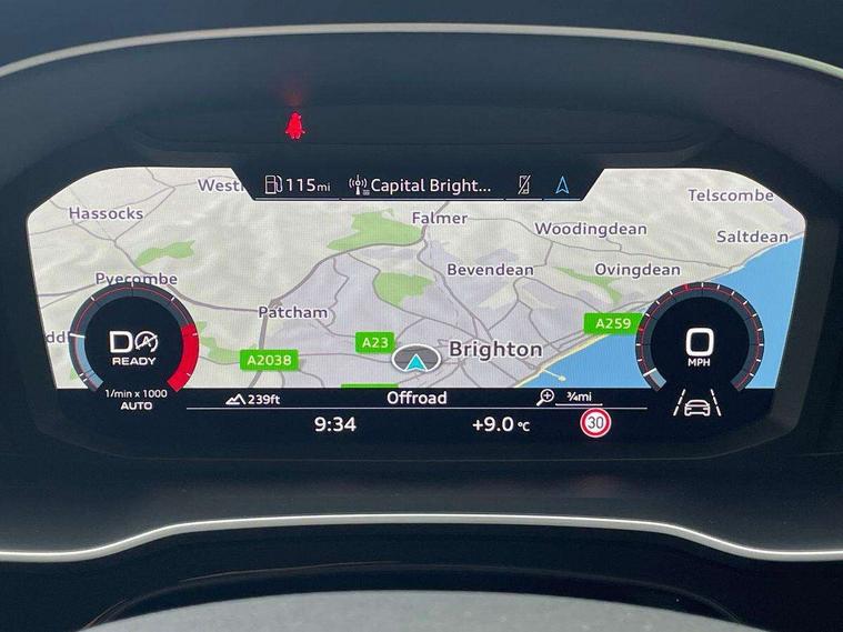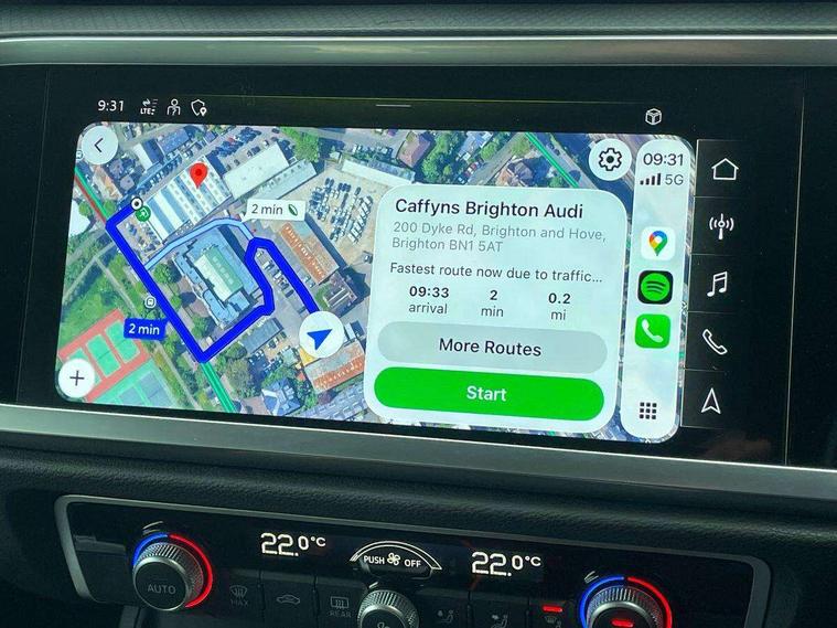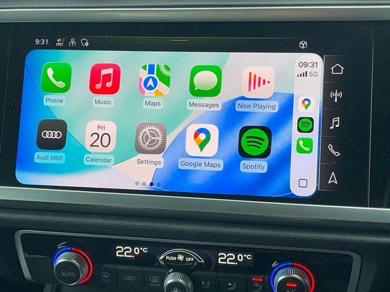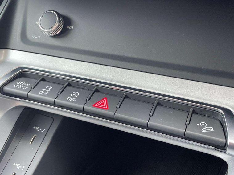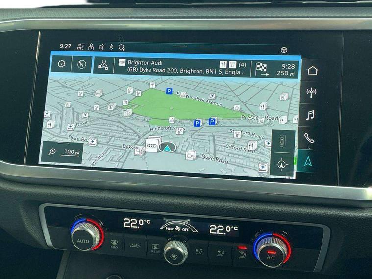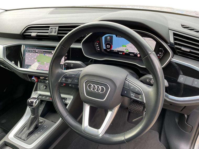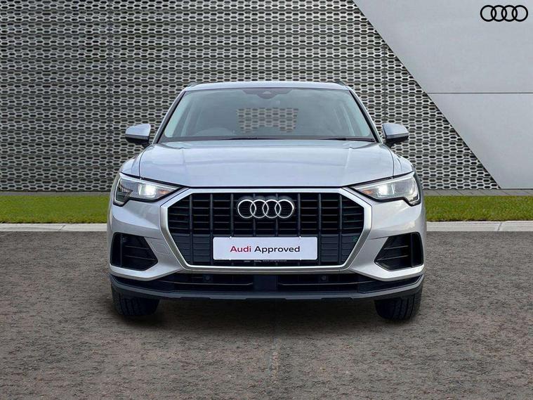 Detail dashboard around MMI touch colour display in glass look, black with surround in aluminium look, Micrometallic silver inlay, Non smoking pack - Q3, 17" 5 twin spoke design alloy wheels, Anti theft alarm, Anti theft wheel bolts, Immobiliser, Remote central locking, 2 USB-C ports with charge and data functions, 6 passive loudspeakers, DAB digital radio module, 3x3 point rear seatbelts, 6 airbags - Driver, front passenger, curtain and side windows, Audi pre-sense front with pedestrain and cyclist recognition, Electrically operated child locks on rear doors, Electromechanical parking brake, Electronic stabilisation control including ABS, ASR and EDL, Front seatbelt reminder, Hill descent control, Hill hold assist, Pre sense basic, Seatbelt monitoring, Tyre pressure warning, Warning triangle and first aid kit, Acoustic windscreen, Auto dimming frameless rear view mirror, Black roof rails, Body colour door mirrors, Diffuser in grained anthracite, Electrically folding, adjustable and heated door mirrors with integrated LED side indicators and kerb view function for passenger side, Exterior bumper with wheel arch trims and side sill trims in grained black matt, Front and rear electric windows, Grained radiator protective grille, Halogen rear lights, LED headlights with LED daytime running lights, Rain and light sensors, Rear side wing doors, Rear wiper, Third brake light, Variable front intermittent wipers, 12V socket in rear centre console, 3 seat bench in 2nd row, 3 spoke multi-function leather steering wheel, 40:20:40 folding with manual adjustment for 60:40 forwards/backwards position and backrest angle, Dual zone electronic climate control, Front and rear floor mats, Front and rear headrests, Front and rear roof module including reading lights, Front centre armrest, Glove compartment lighting, Height and reach adjustable steering wheel, ISOFIX child seat mounting for front passenger with airbag deactivation and outer rear seat including top tether attachment point for outer rear seats, Luggage compartment light, Lunar silver cloth headlining, Manual front seats with height adjustment, Single front passenger seat, Stainless steel luggage compartment sill finisher, Amazon alexa Integration, Audi connect safety and service (e-call), Audi drive select, Audi lane departure warning, Audi smartphone interface includes wireless Apple carplay/Android Auto, Audi Virtual Cockpit - 10.25" display, Bluetooth interface, Camera based traffic sign recognition, MMI Navigation Plus with high resolution 10.1 inch touchscreen colour display, Power operated tailgate, Progressive steering, Service interval indicator, Start stop system with recuperation, Voice control system with natural language interaction, Diesel particulate filter, Standard suspension,