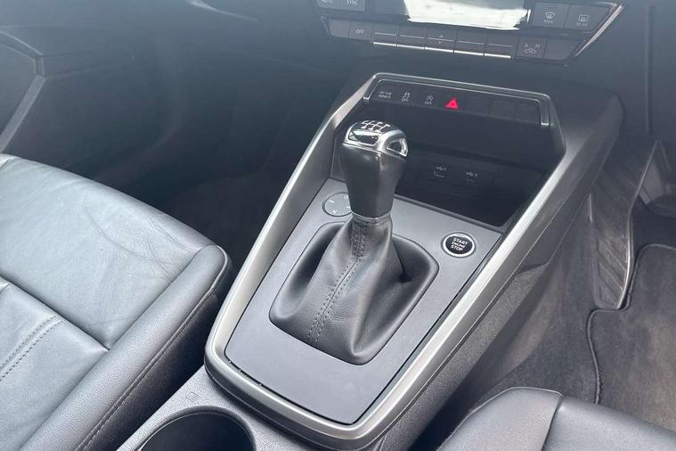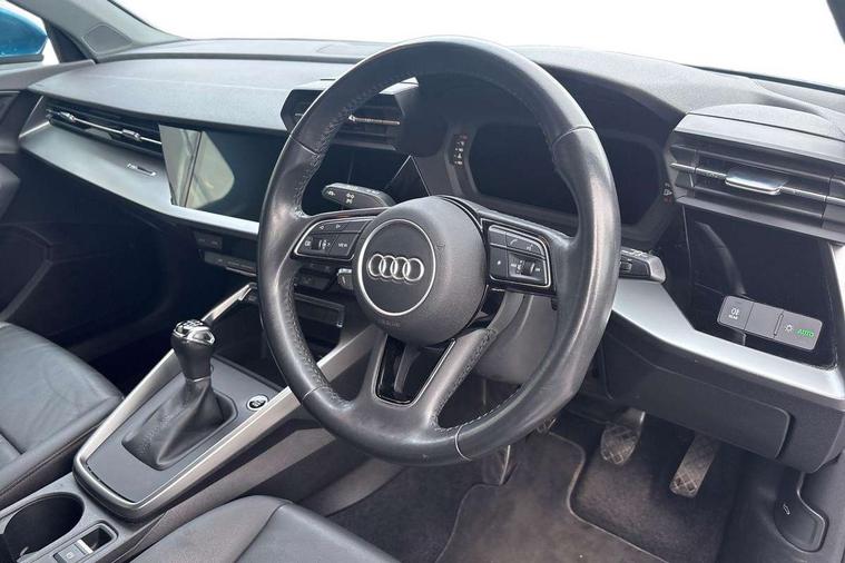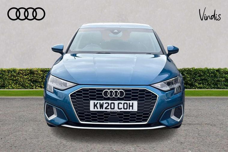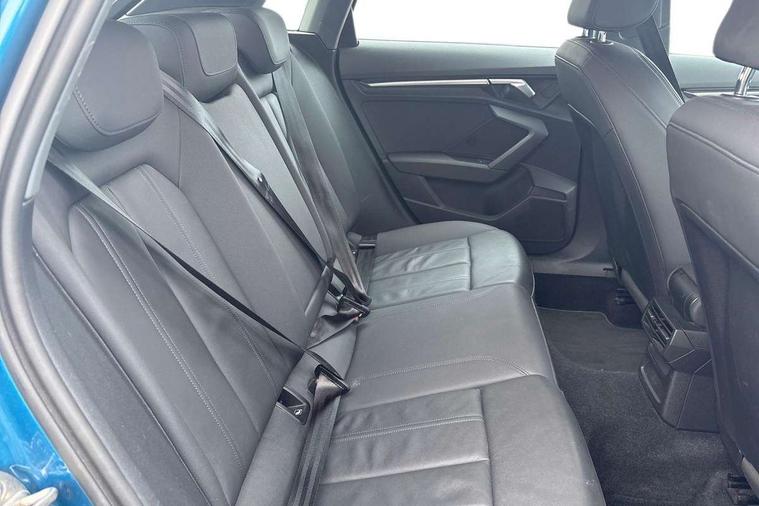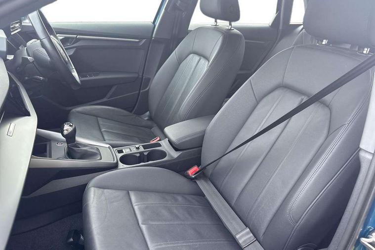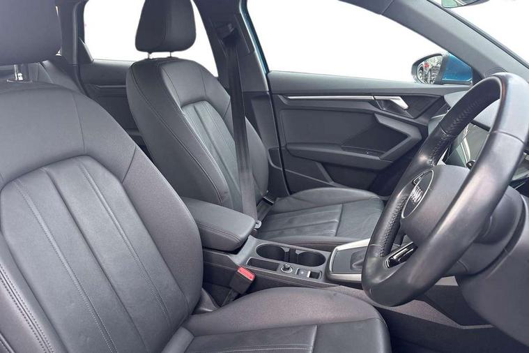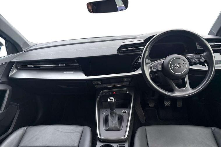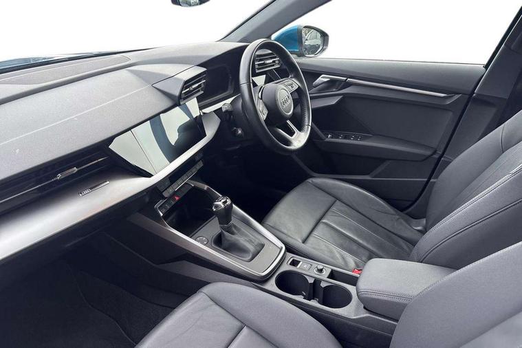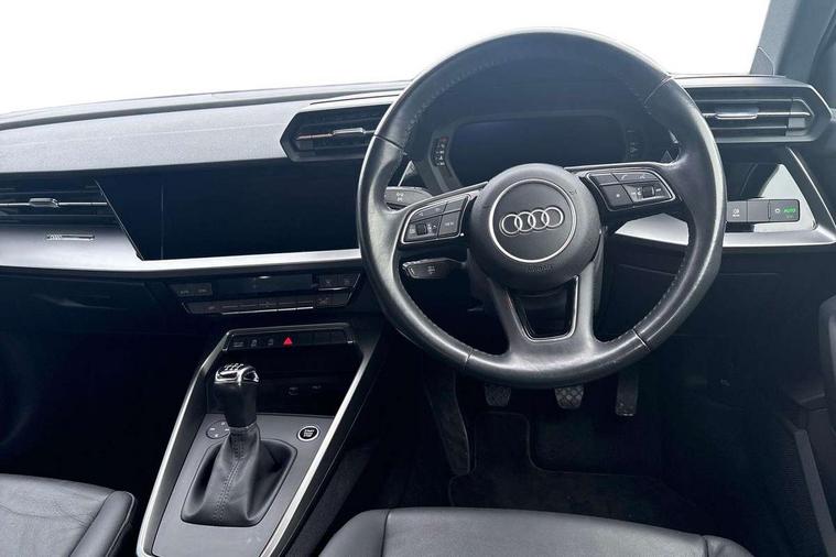 Inlays with silk effect paint in platinum grey, Aluminium interior elements pack - A3 Sportback, Sport styling pack - A3 Sportback, Anti theft alarm, Anti-theft wheel bolts, Electronically operated child lock, Immobiliser, Remote control central locking, 1xUSB-A and 1xUSB-C connection, 6 passive loudspeakers, DAB Digital radio, 3x3 point rear seat belts, Driver and front passenger airbag with passenger airbag deactivation, Electronic Stabilisation Control (ESC) including ABS, ASR and EDL, First aid kit with warning triangle and 2 safety vests, Hill hold assist, Pre-sense front with pedestrian and cyclist detection, Seatbelt monitoring, Tyre pressure loss indicator, Acoustic glass windscreen, Aluminium window trim, Auto dimming frameless rear view mirror, Body colour exterior mirrors, Body colour roof spoiler, Electrically adjustable/heated/folding/dimming door mirrors with kerb view includes integrated LED indications + kerb view function for passenger side, Front electric windows, LED daytime running lights, Light and rain sensors, Rear electric windows, Rear window, rear door windows and rear side windows in clear glass, Rear wiper, 12V socket and storage compartment in front centre console, 40/20/40 split folding rear seat bench with cupholder, Dual zone electronic climate control, Front and rear centre armrest, Front and rear headrests, Front door sill trims with aluminium inlay, Front/rear floor mats, Height and reach adjustable steering wheel, Interior lighting - Front and rear roof module including reading lights, glove compartment light and right hand side, Luggage compartment floor covering, Manual boot compartment lid, Manually adjustable front seats, Seat side bolsters, Steel grey cloth headlining, Twin leather upholstery, Audi connect emergency call and service, Audi drive select (Auto, Comfort, Dynamic, Efficiency and Individual), Audi smartphone interface, Audi Virtual Cockpit - 10.25" digital and colour instrument cluster, Automatic start/stop system with recuperation, Bluetooth interface, Collision avoidance assistant, Cruise control, Electromechanical power speed sensitive steering, Lane departure warning system, MMI Navigation Plus with high resolution 10.1" colour touch screen display, Rear parking sensors, Service indicator, Trip computer, Voice control system with natural language interaction, Standard suspension,