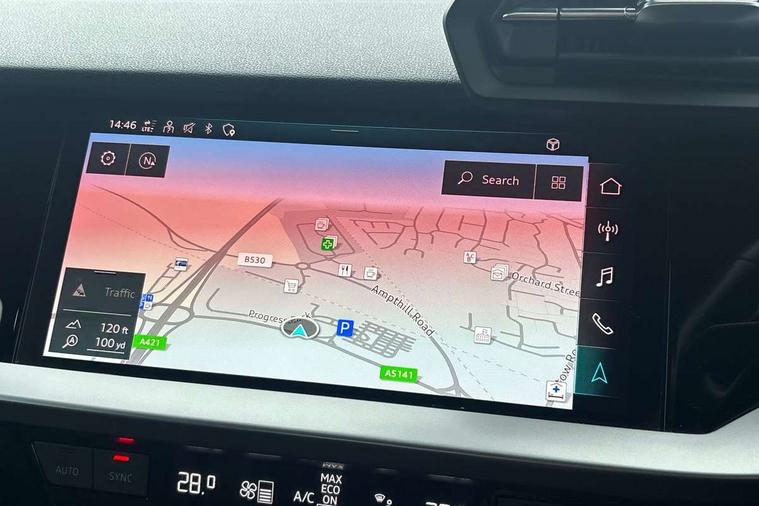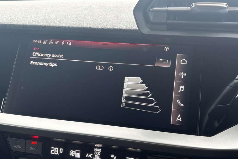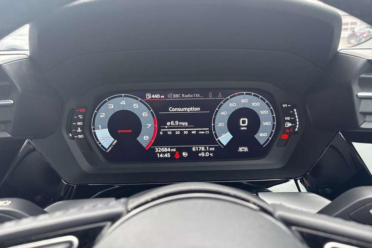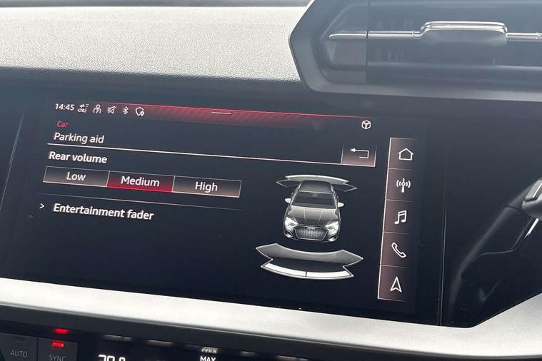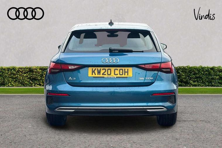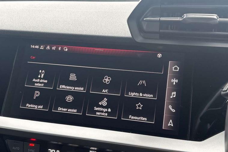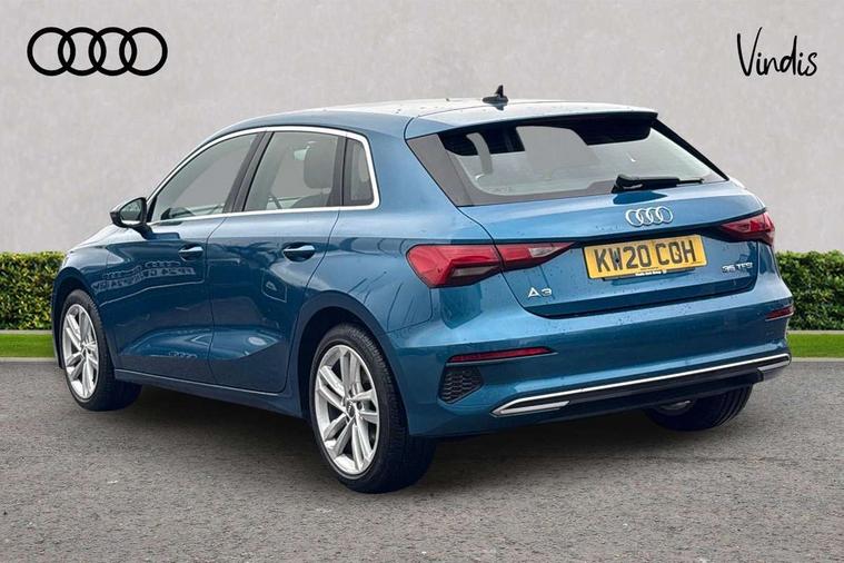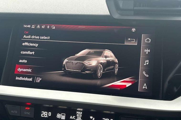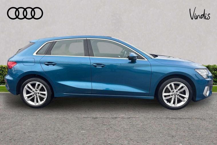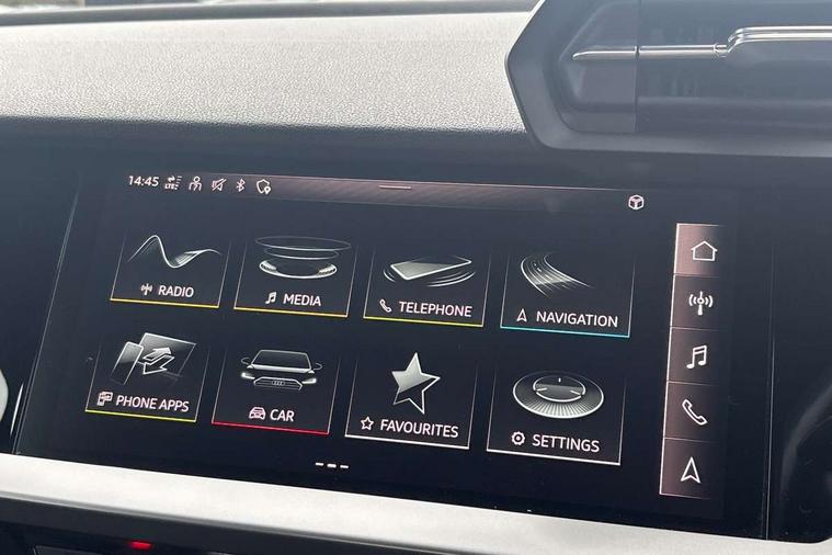 Inlays with silk effect paint in platinum grey, Aluminium interior elements pack - A3 Sportback, Sport styling pack - A3 Sportback, Anti theft alarm, Anti-theft wheel bolts, Electronically operated child lock, Immobiliser, Remote control central locking, 1xUSB-A and 1xUSB-C connection, 6 passive loudspeakers, DAB Digital radio, 3x3 point rear seat belts, Driver and front passenger airbag with passenger airbag deactivation, Electronic Stabilisation Control (ESC) including ABS, ASR and EDL, First aid kit with warning triangle and 2 safety vests, Hill hold assist, Pre-sense front with pedestrian and cyclist detection, Seatbelt monitoring, Tyre pressure loss indicator, Acoustic glass windscreen, Aluminium window trim, Auto dimming frameless rear view mirror, Body colour exterior mirrors, Body colour roof spoiler, Electrically adjustable/heated/folding/dimming door mirrors with kerb view includes integrated LED indications + kerb view function for passenger side, Front electric windows, LED daytime running lights, Light and rain sensors, Rear electric windows, Rear window, rear door windows and rear side windows in clear glass, Rear wiper, 12V socket and storage compartment in front centre console, 40/20/40 split folding rear seat bench with cupholder, Dual zone electronic climate control, Front and rear centre armrest, Front and rear headrests, Front door sill trims with aluminium inlay, Front/rear floor mats, Height and reach adjustable steering wheel, Interior lighting - Front and rear roof module including reading lights, glove compartment light and right hand side, Luggage compartment floor covering, Manual boot compartment lid, Manually adjustable front seats, Seat side bolsters, Steel grey cloth headlining, Twin leather upholstery, Audi connect emergency call and service, Audi drive select (Auto, Comfort, Dynamic, Efficiency and Individual), Audi smartphone interface, Audi Virtual Cockpit - 10.25" digital and colour instrument cluster, Automatic start/stop system with recuperation, Bluetooth interface, Collision avoidance assistant, Cruise control, Electromechanical power speed sensitive steering, Lane departure warning system, MMI Navigation Plus with high resolution 10.1" colour touch screen display, Rear parking sensors, Service indicator, Trip computer, Voice control system with natural language interaction, Standard suspension,