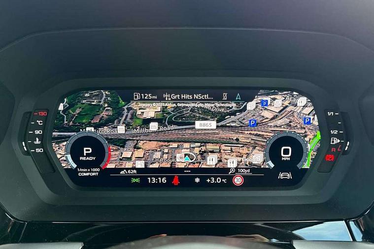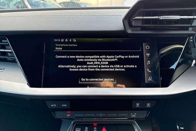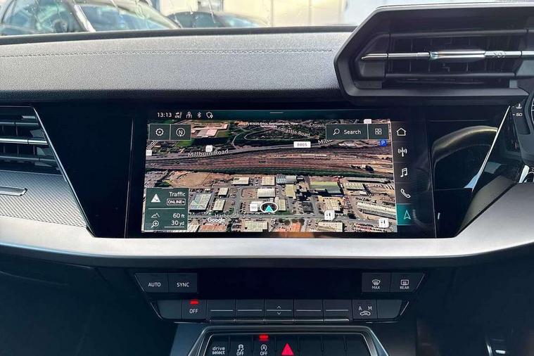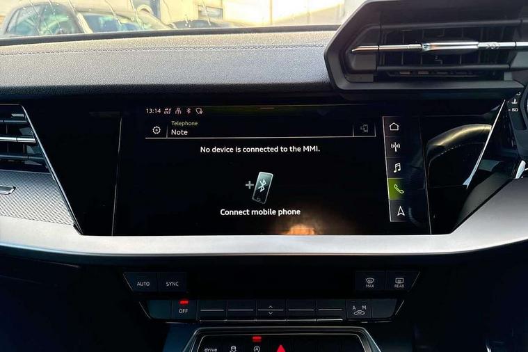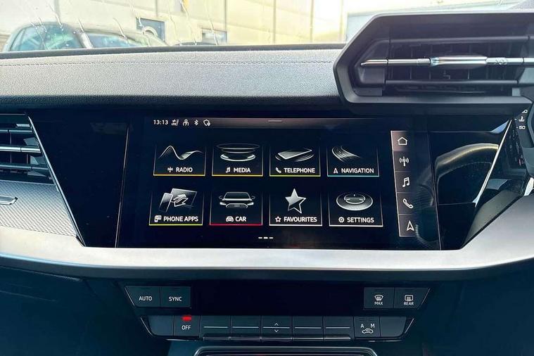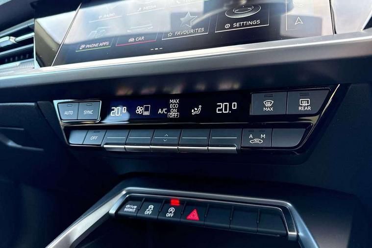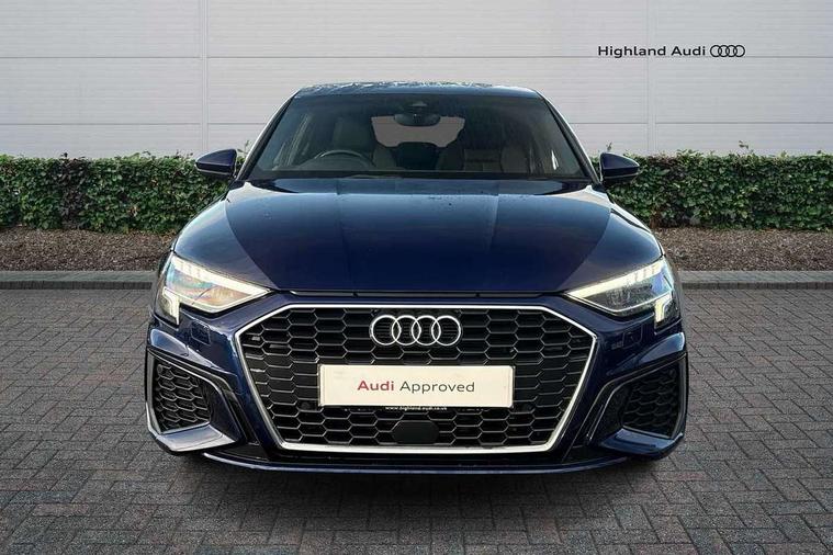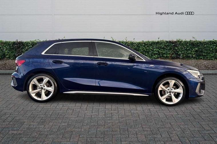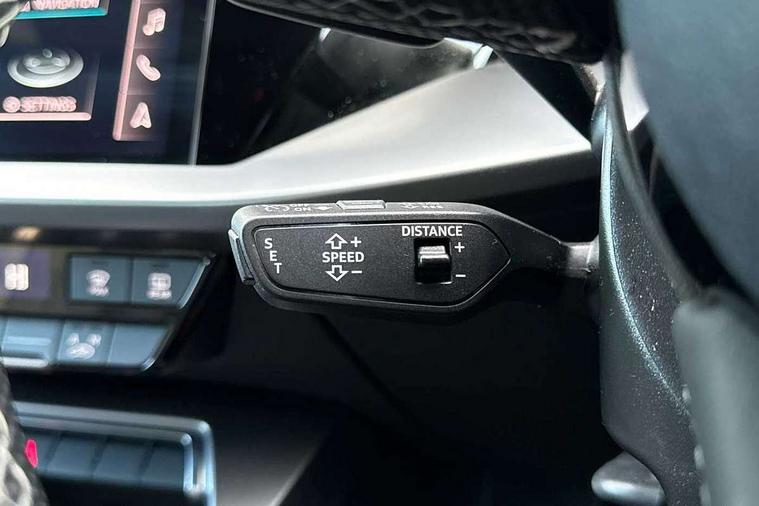 Audi drive select (Auto, Comfort, Dynamic, Efficiency and Individual), Audi smartphone interface, Audi Virtual Cockpit - 10.25" digital and colour instrument cluster, Automatic start/stop system with recuperation, Bluetooth interface, Camera based traffic sign recognition, Collision avoidance assistant, e-Call (emergency call), Electromechanical power speed sensitive steering, Lane departure warning system, MMI Navigation Plus with high resolution 10.1" colour touch screen display, Service indicator, Trip computer, Voice control system with natural language interaction, Sports suspension, 2xUSB-C connection with data and charging functions, 6 passive loudspeakers, DAB Digital radio, 3rd brake light, Acoustic glass windscreen, Aluminium window trim, Auto dimming frameless rear view mirror, Body colour exterior mirrors, Electrically adjustable/heated/folding/dimming door mirrors with kerb view includes integrated LED indications + kerb view function for passenger side, Front electric windows, Illuminated door sills with aluminium inserts at the front with S logo, LED daytime running lights, LED headlights with LED rear lights and dynamic rear indicators, Light and rain sensors, Privacy glass - dark tinted rear window, rear door and side windows, Rear electric windows, Rear side air outlets in grained matt black, Rear side wing doors, Rear wiper, S line bumpers, S roof spoiler, 12V socket and storage compartment in front centre console, 3 seat bench in 2nd row, 3 spoke leather multifunction steering wheel with paddle shift, 4 way electrically adjustable lumbar support for driver and front passenger, 60/40 split folding rear seat bench, Black cloth headlining, Dual zone electronic climate control, Front and rear centre armrest in artificial leather, Front and rear headrests, Front/rear floor mats, Height and reach adjustable steering wheel, Interior lighting - glove compartment light and right hand side, Luggage compartment floor covering, Manual boot compartment lid, Manually adjustable front seats, Seat side bolsters, Single front passenger seat, Stainless steel pedals and front footrest in black, Twin leather upholstery with front sports seats S embossed logo, Aluminium interior elements pack - A3 Sportback, LED interior lighting pack - A3 Sportback, S line styling pack - A3 Sportback, 3x3 point rear seat belts, Driver and front passenger airbag with passenger airbag deactivation, Electronic Stabilisation Control (ESC) including ABS, ASR and EDL, First aid kit with warning triangle and 2 safety vests, Front side airbags with head airbags and interaction airbag, Pre-sense front with pedestrian and cyclist detection, Seatbelt monitoring, Tyre pressure loss indicator, Anti theft alarm, Anti-theft wheel bolts, Electronically operated child locks, Immobiliser, Remote control central locking, Dark spectrum aluminium inlays, accent surfaces in the dashboard and centre console in platinum grey silk effect paint finish,