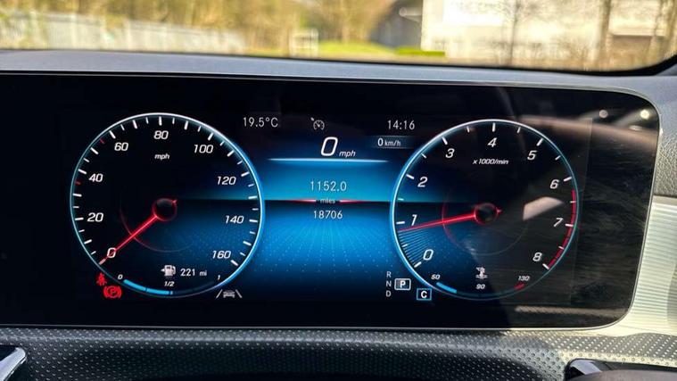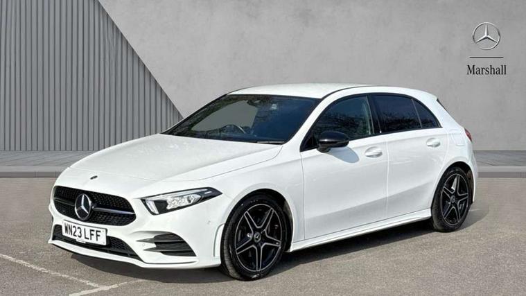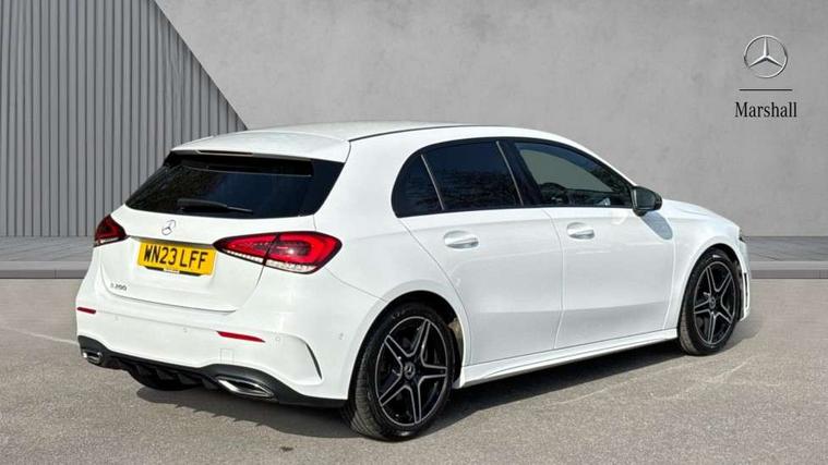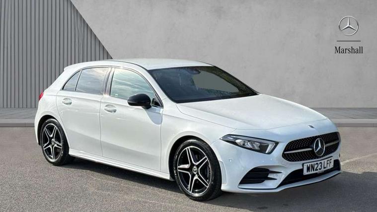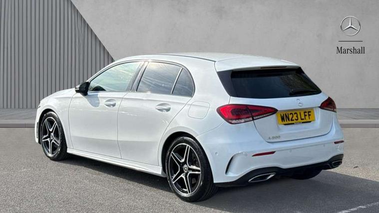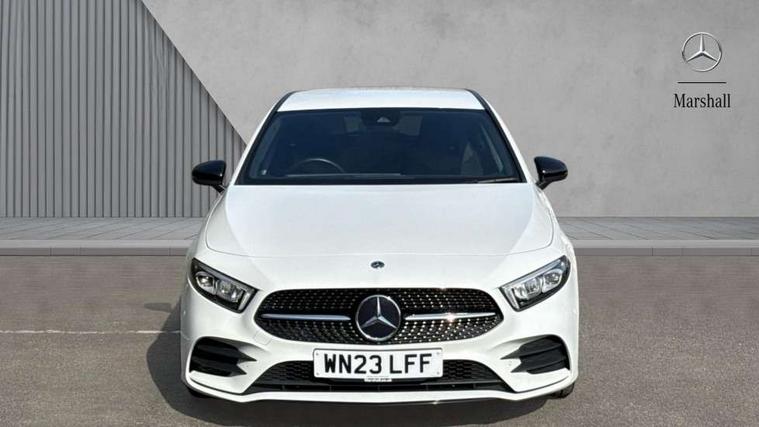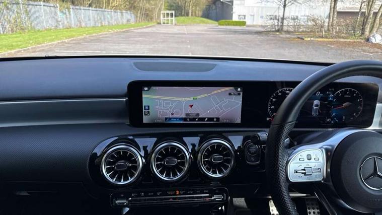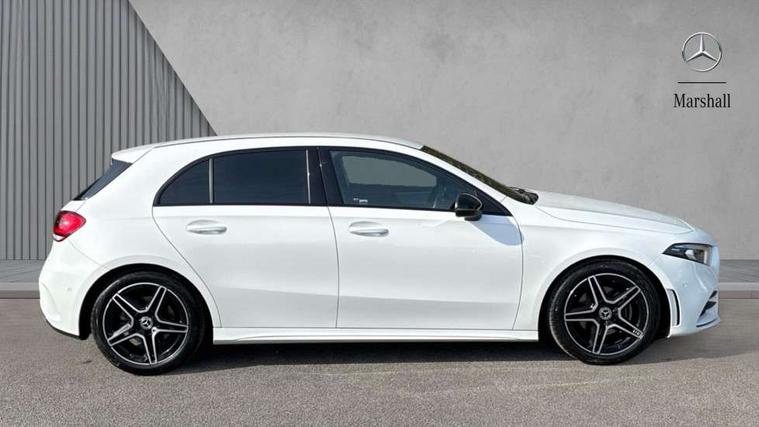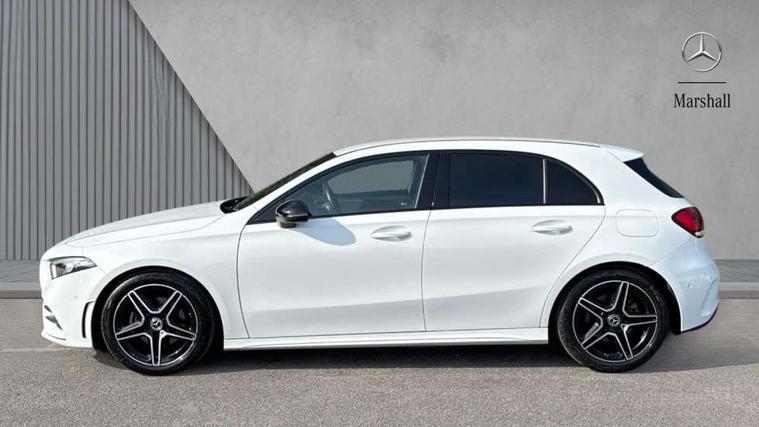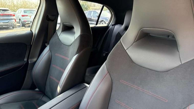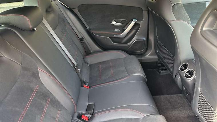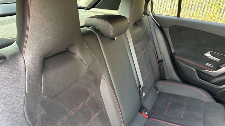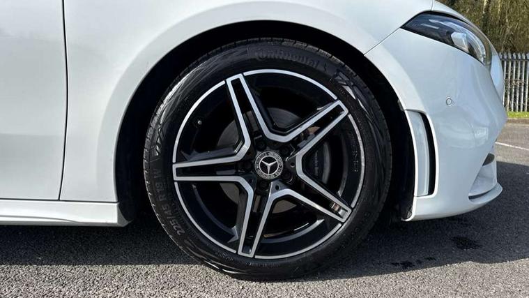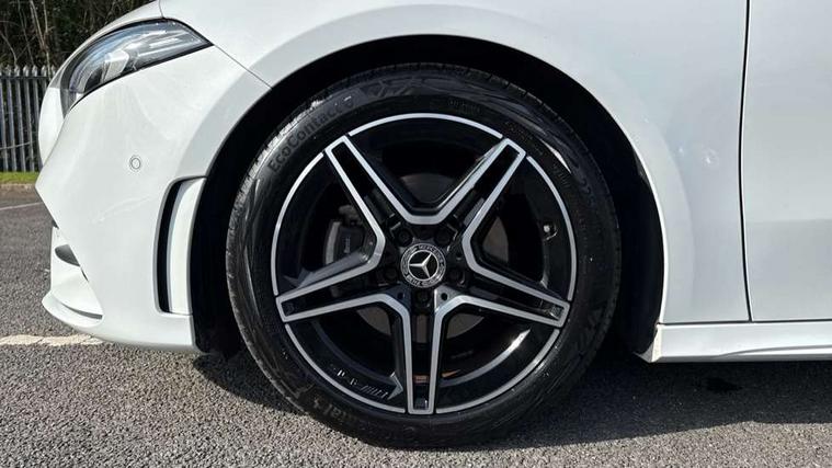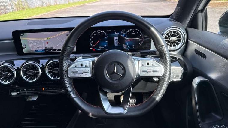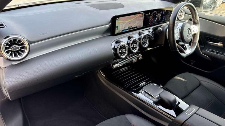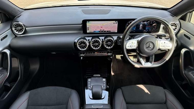 10.25" Digital instrument cluster display screen, 10.25" media display, 180 degree rear view camera with parking guidelines, Active parking assist with visual and audible warning of detected obstacles, Attention assist, Brake pad wear indicator warning light, Car wash mode, Cruise control + speed limiter, Direct steering, Dual bluetooth interfaces, DYNAMIC SELECT with a choice of driving modes (ECO, Comfort, Sport and Individual), ECO start/stop function, Fluid level warning indicator for fuel, oil, coolant and washer fluid, Hard-disk navigation, Hey Mercedes Voice activation, Lamp failure indicator, Lane keeping system, Mercedes me connect including emergency call system, accident recovery, breakdown management and maintenance, Mercedes me remote services, Outside temperature gauge, Owners manual in English, Pre-installation for car sharing, Preinstallation for Mercedes Benz link, Service indicator (ASSYST), Smartphone integration with Apple CarPlay and Android auto, Speed limit assist, Speed sensitive power steering, Trip computer, Ultrasonic sensors positioned in the front and rear bumpers, Lowered comfort suspension, Rear axle torsion beam, 2 USB ports (type C) in rear stowage compartment and one in front of center console, 6 speakers, DAB Digital radio, MBUX multimedia system with DAB digital radio and touchpad including satellite navigation, Mercedes-Benz sound system - 100W, 4 Electric Front and Rear windows, Adaptive brake lights, AMG bodystyling - Front apron with splitter in chrome, rear apron with chrome trim and chrome visible trim elements in tailpipe, Automatic headlights, Black weather strip, Body colour bumpers, Body colour door handles with chrome inserts, Body colour side skirt, Electric adjustable and heated door mirrors with integrated LED side indicators, Exclusive diamond radiator grille, Exhaust system - Twin visible tailpipes in polished stainless steel, Headlamp assist automatic headlamp activation, Heated glass rear windscreen + timer control, LED High level third brake light, LED high performance headlamps with integrated LED daytime running lights, LED tail lamp, Privacy glass, Radio aerial, Rain sensing windscreen wipers with two sensitivity settings, Rear fog lights, Rear side wing doors, Rear wiper, 3 seat bench in 2nd row, 3 Spoke flat bottom leather multi function steering wheel with perforated leather in grip area, 40:20:40 split folding rear seats, Artico man-made leather/Microfibre Dinamica upholstery with red contrast stitching, Auto Mercedes-Benz child seat recognition sensor, Black air vents with surround in silver chrome, Black roof lining, Brushed stainless steel sports pedals with rubber studs, Controller on centre console with chrome surround, Floor mats with AMG lettering, Front centre armrest with storage compartment, Front seat backs luggage nets, Galvanished gear shift paddles on steering wheel, Heated front seats, Height/reach adjustable steering column, Illuminated Mercedes Benz lettering front door sills with changeable cover, Interior lighting - 64 colour Ambient lighting, Interior mirror with reading lamps in black and frameless, ISOFIX and top tether child seat fixing points in two outer rear seats, Manual height adjustable front seats, Rear head restraints, Seat occupancy sensor for front passenger seat, Single front passenger seat, Sports seats with integrated headrests, Stowage compartment in centre console with retractable cover, Sunvisors with illuminated vanity mirrors, Touchpad on center console, Twin front cupholders, Two zone thermotronic luxury automatic climate control, Light and sight pack - A Class, Mirror package - A Class, Night pack - A Class Saloon/Hatchback, Seat comfort pack - A Class, 3 rear 3 point seatbelts, ABS with Brake Assist, Active bonnet, Active brake assist includes forward collision warning system with autonomous braking, Adaptive brake assist with hold function and hill start assist, Black seatbelts, Childproof locks manually operated for rear doors and electrically operated for rear power windows, Crash responsive emergency lighting, Driver and passenger head and side airbags, Drivers knee airbag, Dual stage driver/passenger airbags, Electronic parking brake, ESP curve dynamic assist, ESP with ASR, Front and rear seatbelt reminder, Front brake callipers with Mercedes Benz lettering, Tyre pressure monitoring system, Warning triangle and first aid kit, Window airbags, Alarm system/interior protection/immobiliser, Keyless Go, Remote central locking and crash sensor with emergency opening function, Urban guard vehicle protection system with immobiliser and interior protection, Matrix look light longitudinal grain aluminium trim element, 18" AMG 5 twin spoke light alloy wheels aerodynamically optimised painted in black with highsheen finish, Summer tyres, Tirefit sealant kit,