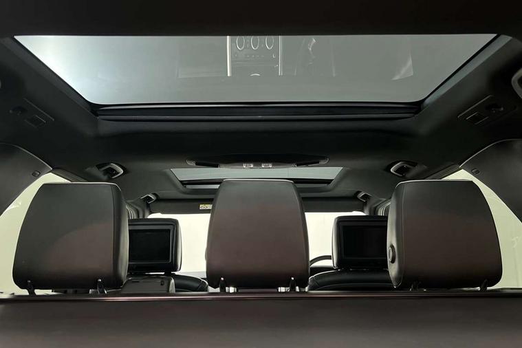 Extended interior trim palette, Immobiliser, Intrusion sensor and alarm, Keyless entry, Locking wheel nuts, Remote central locking, 2 USB charging points in 2nd row, InControl app, InControl protect, Meridian surround sound system with 10" touch screen, 14 speakers + subwoofer, Bluetooth, DAB, radio/CD/DVD, twin USB and voice recognition, Rear seat entertainment, Steering wheel mounted controls, 3x3 point rear seatbelts, ABS, Cornering brake control, Curtain airbags, Driver and passenger airbags, ESP, Gradient acceleration control, High speed emergency braking, Hill descent control, Hill launch assist, Rear airbags, Roll stability control, Side airbags, Traction control, Tyre pressure monitoring system, Auto dimming rear view mirror, Auto high beam assist, Automatic headlamp levelling, Automatic headlights with follow me home lights, Body colour bumpers, Bright sill plates, Electric front windows, Electric heated, adjustable, folding and auto dimming door mirrors, with memory + Puddle light, Front fog lights, Headlight washers, Heated washer jets, Intelligent automatic heated front and rear windscreen, Metal tread plates, Rain sensitive windscreen wipers, Rear electric windows, Rear fog lights, SDV6 HSE luxury badge, Signature Hi-line tail lights, Trailer stability assist, 2 x third row seats with reading lamps, USB charging points and under floor storage, 4 zone climate control, Configurable ambient interior lighting wih illuminated door bins, Electric adjustable steering column, Electric front headrests, Electrically reclining rear seats, Fascia storage compartment, Front armrest, Front passenger seat isofix location point, Front winged headrests, Heated steering wheel, Intel seat folding, Isofix on 2nd row outer seats, Isofix on 3rd row seats, Loadspace cover, Lockable glovebox, Power 3rd row seats, Premium carpet mats, Premium leather steering wheel, Rear headrests, Satin chrome gearshift paddles, Shopping hook, Sunvisors with illuminated vanity mirrors, Twin front covered cupholders, 360 parking aid with front and rear sensors and visual display, Apple car play/Android Auto, Blind spot monitor, Clear exit monitor, Driver condition monitor, InControl remote premium, InControl Touch navigation pro, Interactive Driver display instrument cluster, Lane keep assist, Park assist - Parallel, perpendicular and parking exit, PAS, Power inner tailgate, Powered gesture tailgate/boot lid, Pro services and wifi hotspot, Rear traffic monitor, Service interval indicator, Speed proportional steering, Stop/start system, Traffic sign recognition with adaptive speed limiter, Trip computer, Dynamic stability control, Electronic air suspension, Terrain Response 2 Auto, Twin speed transfer box,