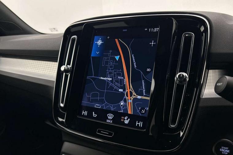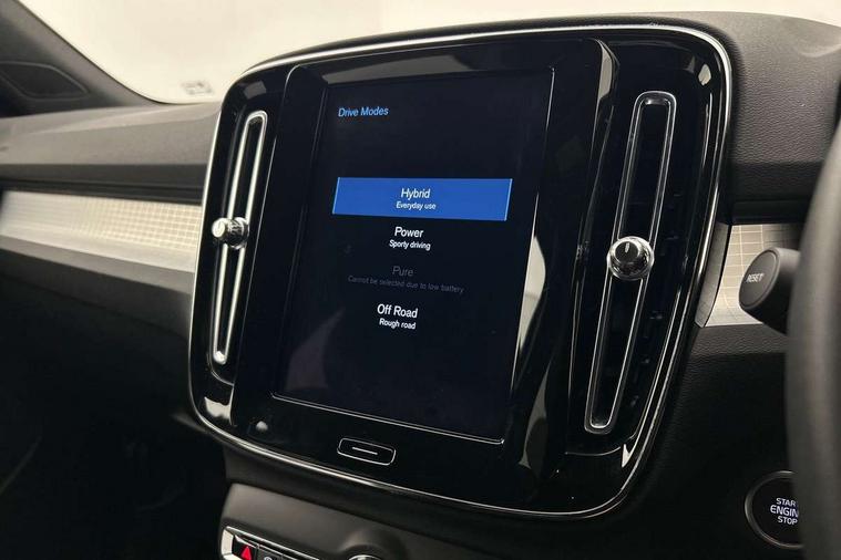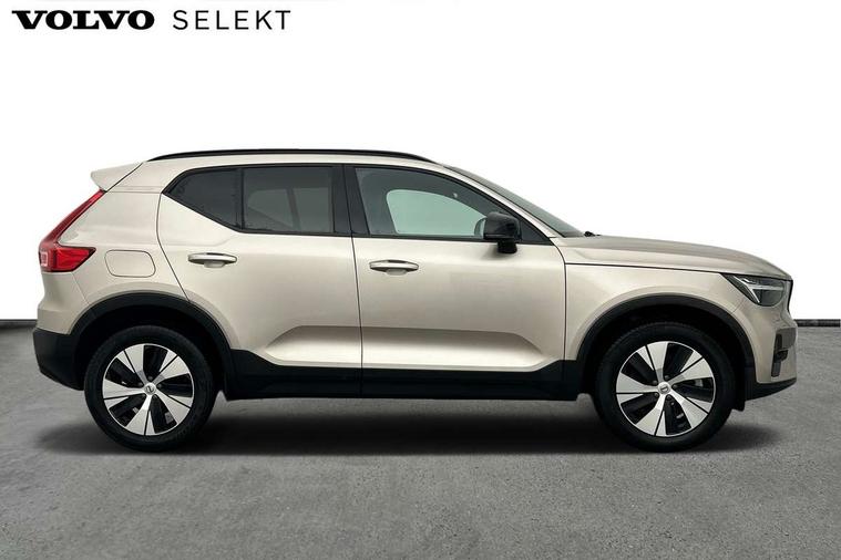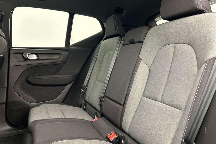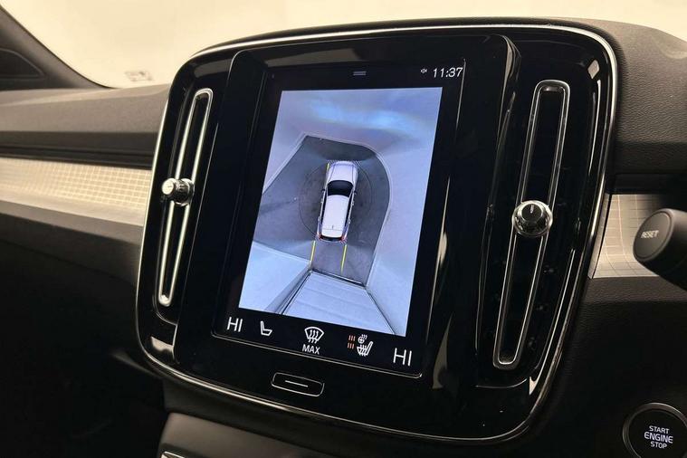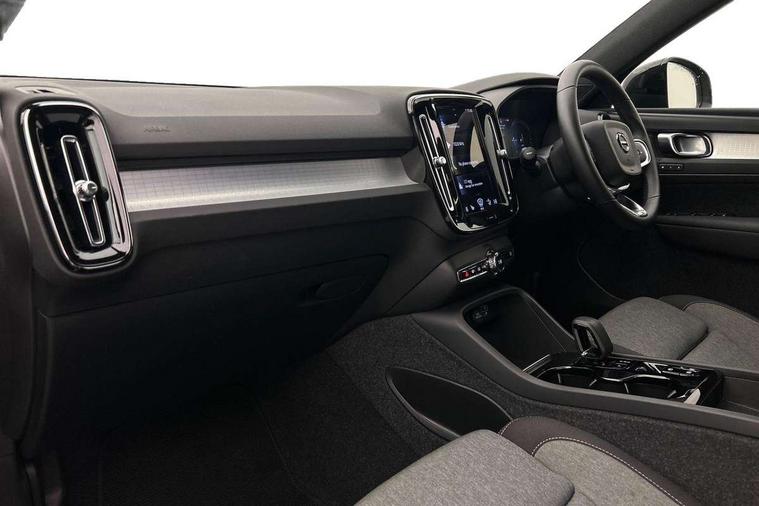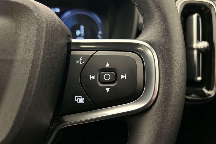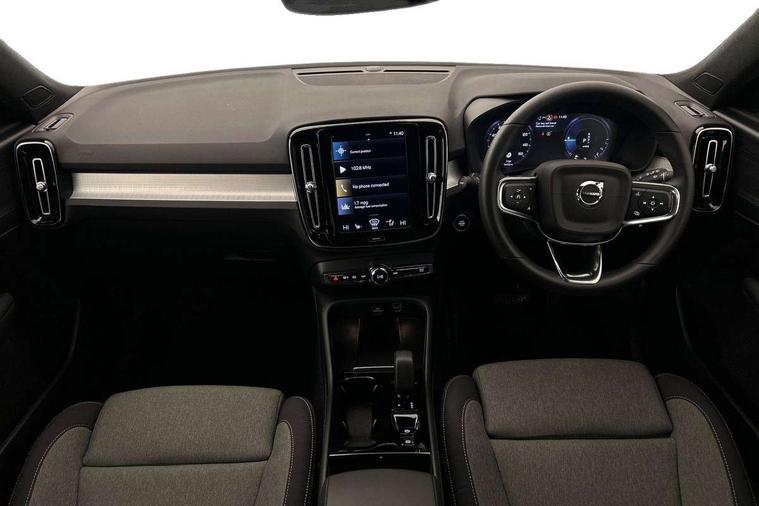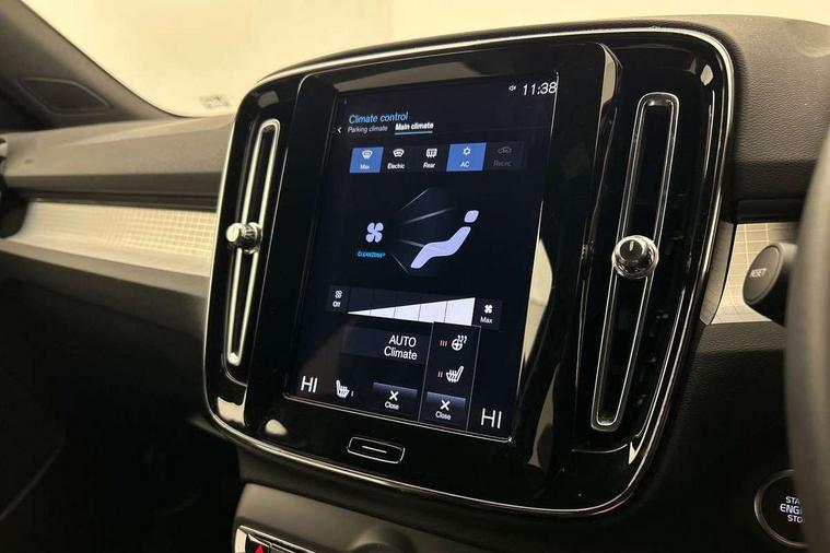 Climate pack without heated front seats - XC40, Anti-theft alarm including immobiliser/volume sensor + level sensor, Care key with user defined top speed, Key integrated remote control central locking + fuel flap with deadlocking system and auto open/close power windows, Keyless drive includes keyless entry and keyless start, Locking wheel nuts, Private locking for tailgate, DAB Digital radio, Low speed exterior sound speaker, Sensus connect with high performance sound, 8 speakers/250W, front USB and 2 rear type C USB, Steering wheel mounted remote controls, 3x3 point rear seatbelts, City safety includes pedestrian, cyclist and large animal detection and front collision warning with full auto brake, Drivers knee airbag, Dual stage driver/passenger airbags, Electronic parking brake with auto hold, First aid kit, Front and outer rear seatbelt reminder and pretensioners, Front seats SIPS airbags, Hill descent control, Hill start assist, Inflatable curtain, Passenger airbag cut-off device, Power child locks on rear doors, Road sign information display, Run off Road Mitigation, Run off Road Protection, SIPS (Side Impact Protection System), Slippery road and hazard light alert, Stability and Traction Control with Spin control, Engine Drag Control and Corner Traction Control, Tyre pressure monitoring system, Vehicle deceleration control with Anti-lock Brake System, Electronic Brake Distribution and Emergency Brake Assist, Warning triangle, WHIPS whiplash protection system - front, Adaptive brake lights with high level LED brake lights, Auto dimming feature for exterior door mirrors, Auto dimming interior mirror, Automatic headlamp levelling, Automatic LED Headlights + Active high beam incorporating daytime running lights, Front and rear electric windows, Front recharge aluminium tread plates, High gloss black front and rear skid plate, High gloss black mesh front grille with high gloss black surround, High gloss black window trim, Home safe and approach lighting, Integrated roof rails in high gloss black, LED front fog lights, Puddle lights, Rain sensor with automatic windscreen wiper activation, Rear side wing doors, Rear wiper, Roof antenna, Roof spoiler, Visible VIN plate, 12V socket in front tunnel console and cargo compartment, 2 zone electronic climate control with clear zone air quality system and pollen filter, 3 seat bench in 2nd row, 3 Spoke tailored steering wheel with chrome trim, 60/40 versatile split folding rear seat, A-pillar parking ticket holder, C-pillar Recharge logo, Centre console cupholders and storage, Floor mats, Front door pocket, front cupholder, ambient front door, rear reading, rear courtesy, instrument panel and tailgate lighting, Front footwell illumination, Front headrests, Front reading light and theatre lighting, Front seat cushion extensions, Front tunnel pocket, Glovebox bag hook, Heated front seats, Height adjustable passenger seat, Height/reach adjustable steering column, High gloss centre tunnel deco, Illuminated glovebox, Illuminated luggage compartment, Illuminated vanity mirrors, Isofix attachments on rear seats, Load protection net, Multi directional lumbar support, Power driver seat with memory + exterior mirrors memory, Rear armrest / integral cup holders / storage tray, Rear headrests, Single front passenger seat, Underfloor cargo storage, 12.3" Active TFT crystal driver's instrument display, 360 degree surround view parking camera, 9" centre console portrait touch screen, Adjustable steering wheel force, Bluetooth hands free telephone kit, Cruise control, Drive mode selector, E-call, Front park assist, Hands free power tailgate, Lane keep assist with driver alert control, Oncoming Lane Mitigation, Rear park assist, Sensus navigation with European mapping and traffic information, Speed limiter, Speed sensitive steering, Voice activated control for key functions, Wireless Smartphone Integration includes Apple CarPlay and Android auto, Wireless/Inductive Mobile Phone Charging, 3.7 kW monophase on board charger, 7m 10amp charge cable with 3 pin plug and 7m 1 phase 16amp type 2/mode 3 charge cable, Dynamic chassis, Electric front axle drive, Recharging port located in nearside front wing,