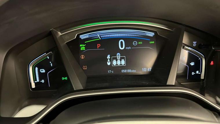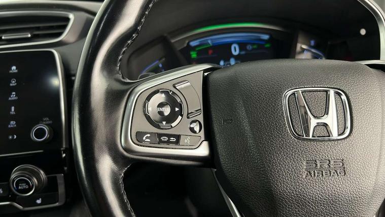 Tyre repair kit, Honda super locks, Immobiliser, Security alarm, Selectable door unlock, Smart entry + Smart start, Ultrasonic security sensor, 2 USB sockets in rear, 2x USB sockets in front, 9 speakers, DAB Digital radio, Dashboard centre speaker, Front tweeters, Steering wheel mounted controls, Subwoofer, 5 x 3 point seatbelts, ABS/EBD, Anti-whiplash front headrests, Brake assist function, Collision mitigation braking system, Deflation detection system, Driver airbag, Electronic parking brake with auto hold, Front and rear curtain airbags, Front and rear seat belts with emergency locking retractor (ELR), Front centre airbag, Front passenger airbag, Front side airbags, Hill start assist, Manual child lock in rear doors, Passenger airbag deactivate switch, Aspheric door mirrors, Auto dimming rear view mirror, Auto wipers, Automatic headlights with dusk sensor, Body colour bumpers, Body colour door handles, Body colour door mirrors, Chrome grille, Cornering light, Door mirrors tilt when reversing, Electric front windows/one touch facility, Electric rear windows + one touch facility, Electrically adjustable and heated door mirrors, Electrically retractable door mirrors, Front LED Indicator lights, Front windscreen de-icer, High beam assist, LED daytime running lights, LED front fog lights, LED Headlights, LED rear lights, Panoramic opening glass sunroof, Rain sensor, Rear privacy glass, Rear side wing doors, Rear wiper, Roof rails, Shark fin roof aerial, Third brake light, Welcome home function, 3 seat bench in 2nd row, 60/40 split folding rear seat, 8 way electrically adjustable drivers seat + mirror memory, Accessory sockets, Ambient interior lighting, Ambient light in roof, AWD emblem rear, Cargo hooks, Courtesy lights, Driver's electric adjustable lumbar support, Driver/passenger front seatback pockets, Driver/passenger sunvisors with illuminated vanity mirrors, Dual zone automatic climate control, Electric lumbar adjustment on passenger's seat, Footwell ambient lighting, Front centre armrest, Front map lights, Front passenger seat height adjust, Heated front seats, Heated rear seats, Heated steering wheel, Hybrid emblem, Illuminated glovebox, Instrument panel with garnish wood film, Isofix child seat preparation, Leather steering wheel, Leather upholstery, Paddle shift controls, Rear air vents, Rear centre armrest, Rear headrests, Rear reading lights, Silver interior door handles, Silver interior panels, Single front passenger seat, Sunglasses holder with mirror, Tilt/telescopic adjustable steering wheel, Tonneau cover, Trunk light, Adaptive cruise control, Agile handling assist, BLIS (Blind Spot Information System) with dual power heated blind spot mirrors, Bluetooth hands free telephone connection, E-call, Economy mode, Electric power steering, Emergency stop signalling system, Forward collision warning, Front parking sensors, Hands free tailgate, Head up Display, Honda CONNECT with GARMIN Navigation + 7" touchscreen, DAB radio, Apple CarPlay, Android Auto, Aha app integration and internet browsing, Intelligent multi info display, Lane departure warning system, Lane keep assist system, Low speed following, Rear parking sensors, Rear view camera, Road departure mitigation, Speed limiter, Traffic sign recognition, Wireless charging, Drive mode (Econ, Sport, EV), Vehicle stability assist,