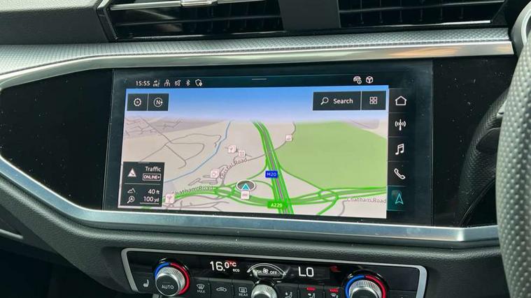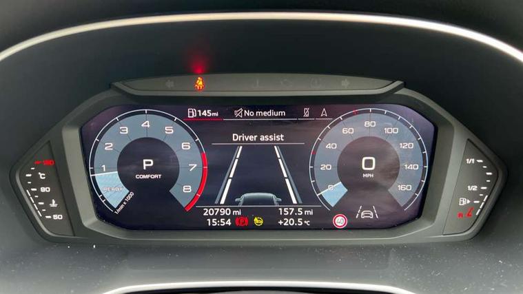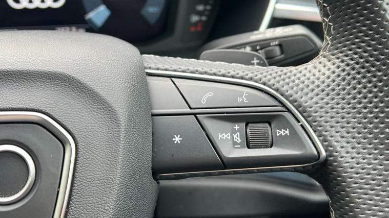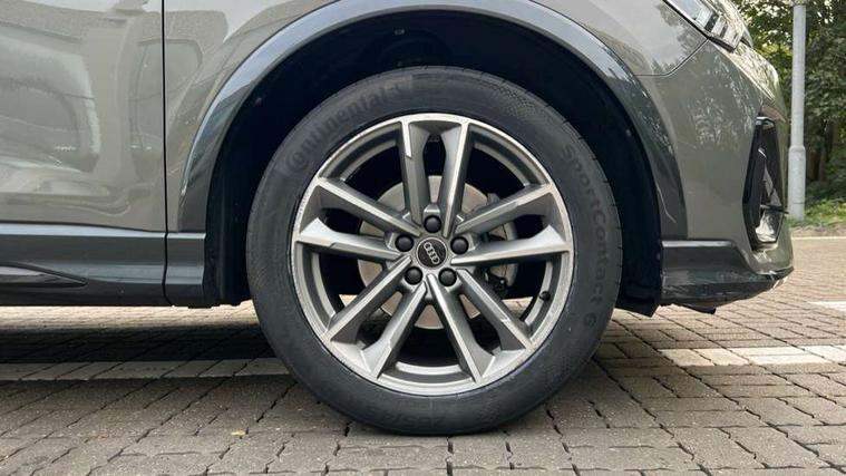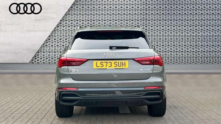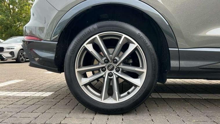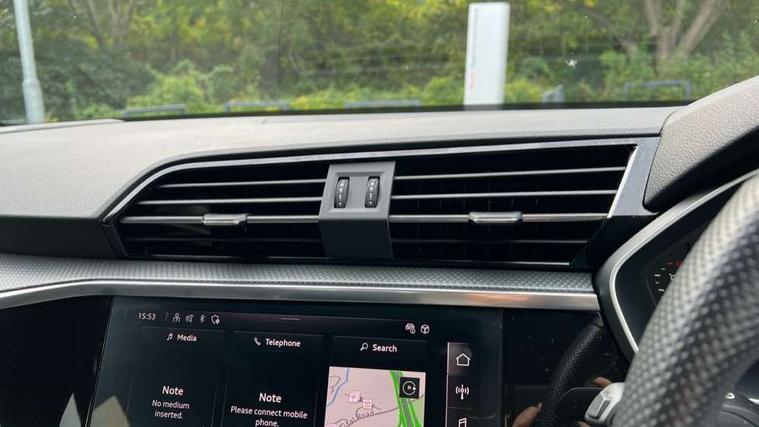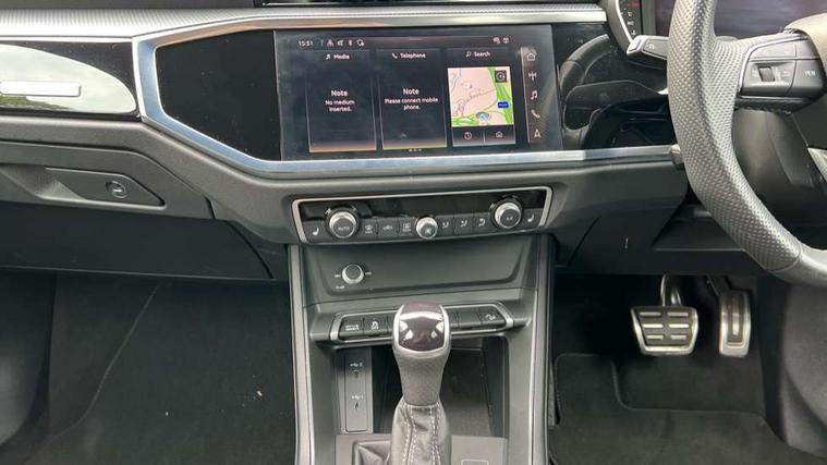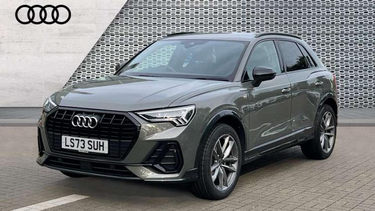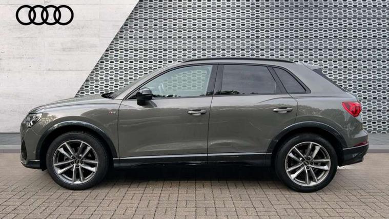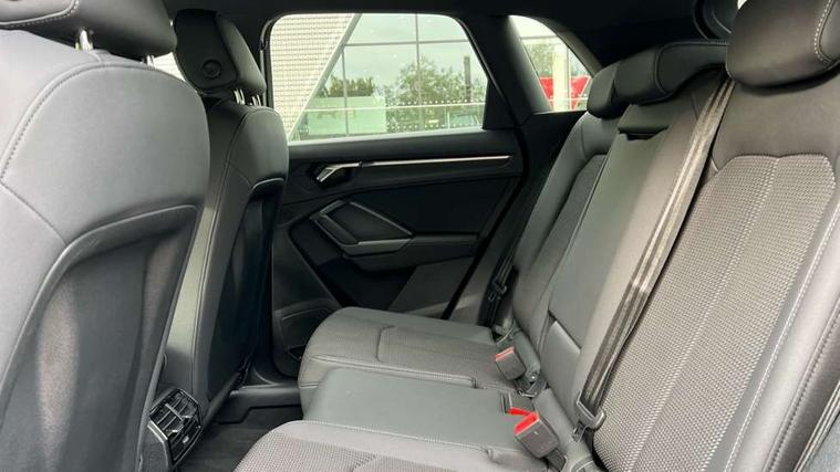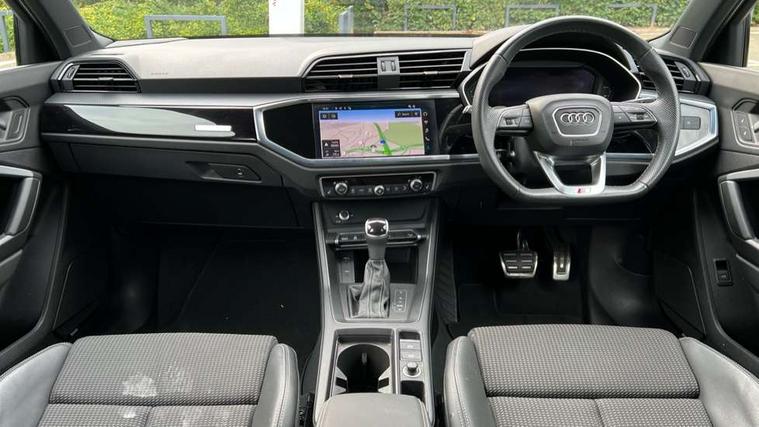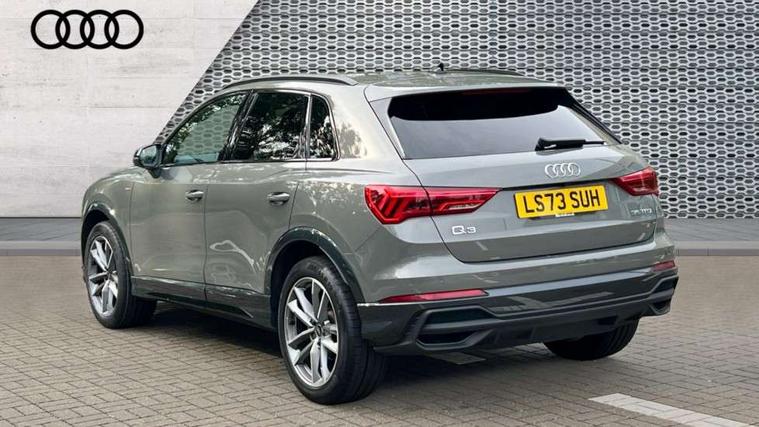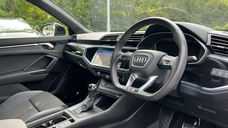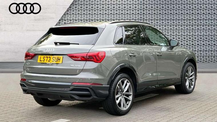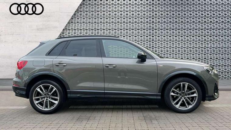 Aluminium look interior elements, Detail dashboard around MMI touch colour display in glass look, black with surround in aluminium look, Leatherette door armrest, Piano black inlay, Ambient lighting pack - Q3, Black styling pack - Q3, Non smoking pack - Q3, 19" 5 twin arm design diamond cut audi sport alloy wheels in matt grey look, Anti theft alarm, Anti theft wheel bolts, Immobiliser, Remote central locking, 2 USB-C ports with charge and data functions, 6 passive loudspeakers, DAB digital radio module, 3x3 point rear seatbelts, 6 airbags - Driver, front passenger, curtain and side windows, Audi pre-sense front with pedestrain and cyclist recognition, Electrically operated child locks on rear doors, Electromechanical parking brake, Electronic stabilisation control including ABS, ASR and EDL, Front seatbelt reminder, Hill descent control, Hill hold assist, Pre sense basic, Seatbelt monitoring, Tyre pressure warning, Warning triangle and first aid kit, Acoustic windscreen, Auto dimming frameless rear view mirror, Black roof rails, Electrically folding, adjustable and heated door mirrors with integrated LED side indicators and kerb view function for passenger side, Front and rear electric windows, Front fog lights, Grille vertical bars in aluminium silver/Matt, High gloss black finish B and C pillars, LED Dynamic rear indicators, LED headlights with LED daytime running lights, LED rear lights, LED third brake light, Privacy glass dark tinted rear and rear-side windows (from B-pillar backwards), Rain and light sensors, Rear diffuser grille in grained matt black, Rear diffuser strip in matt anthracite black, Rear side wing doors, Rear wiper, S line bumpers in contrasting Manhattan grey, Variable front intermittent wipers, 12V socket in rear centre console, 3 seat bench in 2nd row, 40:20:40 folding with manual adjustment for 60:40 forwards/backwards position and backrest angle, Adjustable rear seat bench/backrest with centre armrest and cupholder, Black cloth headlining, Dual zone electronic climate control, Front and rear black floor mats with contrast stitching in rock grey, Front and rear headrests, Front and rear roof module including reading lights, Front centre armrest, Glove compartment lighting, Height and reach adjustable steering wheel, Illuminated door sill trims with S logo, ISOFIX child seat mounting for front passenger with airbag deactivation and outer rear seat including top tether attachment point for outer rear seats, Luggage compartment light, Manual front seats with height adjustment, Perforated leather gearknob, Single front passenger seat, Stainless steel luggage compartment sill finisher, Stainless steel pedals, Amazon alexa Integration, Audi drive select, Audi lane departure warning, Audi smartphone interface includes wireless Apple carplay/Android Auto, Audi Virtual Cockpit - 10.25" display, Bluetooth interface, Camera based traffic sign recognition, Legal emergency call, MMI Navigation Plus with high resolution 10.1 inch touchscreen colour display, Power operated tailgate, Progressive steering, Service interval indicator, Start stop system with recuperation, Voice control system with natural language interaction, Sports suspension,