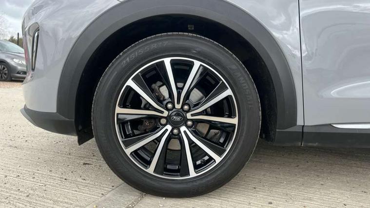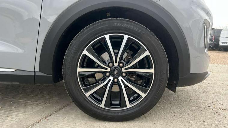 17" 10 spoke absolute black machined finish alloy wheel, Thatcham alarm, 3 rear seatbelts, Electronic stability control (ESC) and hill start assist, Pre-collision assist with autonomous emergency braking, pedestrian/cyclist detection & post-collision braking, Tyre pressure monitoring system (TPMS), Body coloured door mirrors, Front fog lights with cornering lights and LED rear lamps, Power foldable heated door mirrors with puddle lamps, Quickclear heated windscreen, Rear wiper, Centre console with armrest and stowage, Cloth upholstery, EATC - Electronic Auto Temperature control, Ford megabox extended bootspace, Front and rear head restraints, Front floor mats, Leather steering wheel/gear knob/handbrake, Ford easy fuel, Lane keeping aid with lane departure warning, Power assist steering, Rear parking sensor, Selectable drive modes(Normal, sport, Eco, trail, slippery),