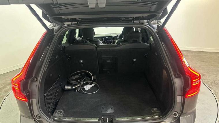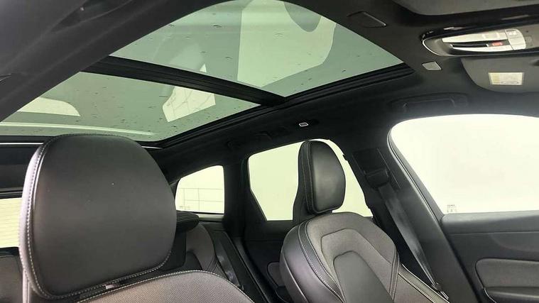 Metal mesh inlays, Tyre sealant kit + 12v compressor, Anti-theft alarm including immobiliser/volume sensor + level sensor, Care key with user defined top speed, Key integrated remote control central locking + fuel flap with deadlocking system and auto open/close power windows, Keyless Drive (includes Keyless Entry and Keyless Start) with Handsfree Tailgate Opening/Closing, Locking wheel nuts, Private locking for tailgate, DAB Digital radio, Fresh air subwoofer, 5 three point seatbelts, City safety with steering support with Pedestrian + cyclist + large animal detection + front collision warning with full auto brake, Drivers knee airbag, Dual stage driver/passenger airbags, Electronic parking brake with auto hold, First aid kit, Hill descent control, Hill start assist, IC (Inflatable Curtains) - Full Length, Mechanical child locks on rear doors, Passenger airbag cut-off device, Road sign information display, Run off Road Mitigation, Run off Road Protection, Seatbelt reminder and pretensioners, SIPS (Side Impact Protection System), SIPS airbags, Slippery road and hazard light alert, Stability and Traction Control with Spin control, Engine Drag Control and Corner Traction Control, Tyre pressure monitoring system, Vehicle deceleration control with Anti-lock Brake System, Electronic Brake Distribution and Emergency Brake Assist, Warning triangle, WHIPS whiplash protection system - front, Adaptive brake lights with high level LED brake lights, Auto dimming interior + exterior mirrors, Automatic headlight levelling system, Automatic LED Headlights + Active high beam incorporating daytime running lights, Dark tinted windows for rear side windows and cargo area, Electric adjustable/heated/auto power folding door mirrors, Electric front+rear windows, High gloss black door mirrors, High gloss black mesh front grille with high gloss black surround, High gloss black rear bumper deco, High gloss black window frame surround, Home safe and approach lighting, Integrated roof rails in high gloss black, Power glass tilt and slide panoramic sunroof with sun curtain, Puddle lights, Rain sensor with automatic windscreen wiper activation, Rear side wing doors, Rear wiper, Roof antenna, Roof spoiler, Tinted windscreen, Visible VIN plate, 12V socket in front tunnel console and cargo compartment, 2 zone electronic climate control with Clean zone air quality system and pollen filter, 3 seat bench in 2nd row, 3 spoke tailored sports steering wheel, A-pillar parking ticket holder, B Pillar ventilation, Bright metal luggage threshold, Centre armrest storage illumination, Centre console cupholders and storage, Charcoal headlining, Contour sports seats with nappa leather/textile upholstery, Floor mats, Front and rear door pocket and front cupholder illumination, Front footwell and side step illumination, Front reading lights, Front seat cushion extensions, Head restraints for all seats, Heated front seats, Height/reach adjustable steering column, High gloss black steering wheel remote infotainment controls, Illuminated glovebox, Illuminated luggage compartment, Illuminated vanity mirrors + ticket holder, Load cover, Load protection net, Multi directional lumbar support, Multicolour theatre lights, Rear armrest with cupholder, Rear footwell and side step illumination, Rear seat concealed storage, Recharge aluminium tread plates, Single front passenger seat, Sport leather gear knob, Sport pedals, Tailgate illumination and ambient door lighting, Underfloor stowage compartment, Versatile split folding rear seat - 60/40, 12.3" Active TFT crystal driver's instrument display, 9" centre console touch screen, Adjustable steering wheel force, Bluetooth handsfree system, Drive mode selector, Driver alert control with lane keeping aid, Emergency services call system, Front and rear park assist, Google Automotive Services, Oncoming Lane Mitigation, Service interval indicator, Speed limiter, Speed sensitive steering, Trip computer, Volvo on call with App, Wireless apple carplay, Wireless/Inductive Mobile Phone Charging, 7m 10amp Charge Cable with 3 Pin Plug and 7m 1-Phase 16amp Type 2 / Mode 3 Charge Cable, 8 speed automatic transmission with start/stop + manual change functions, Dynamic chassis, Electric rear axle drive, Recharging port located in nearside front wing,