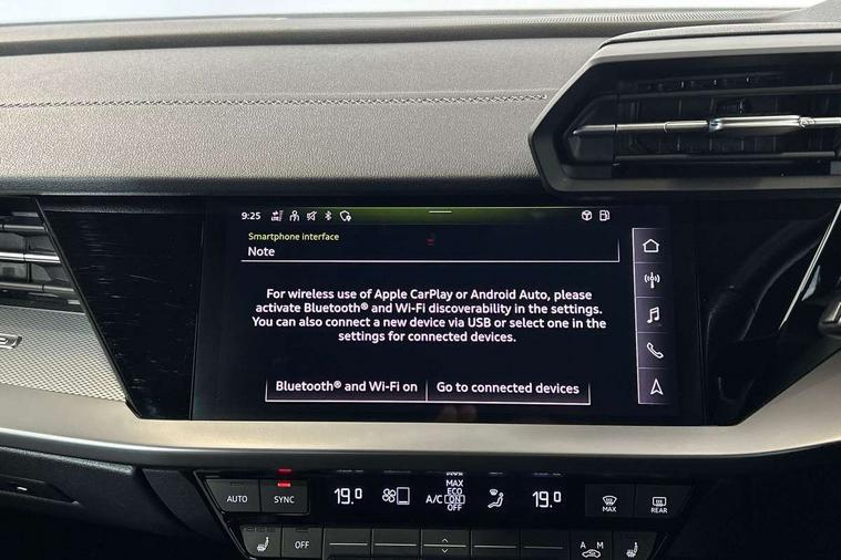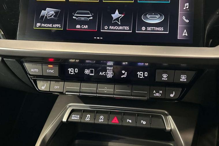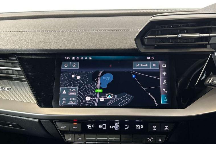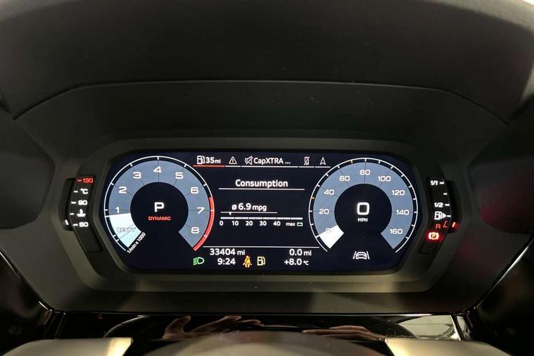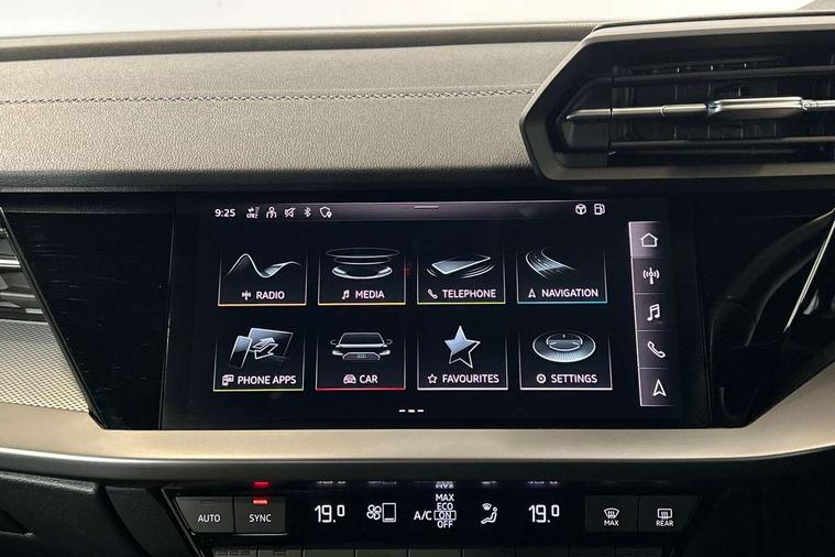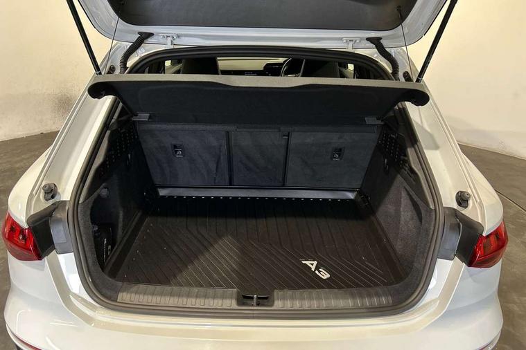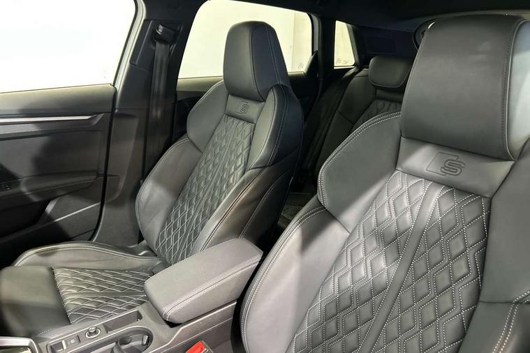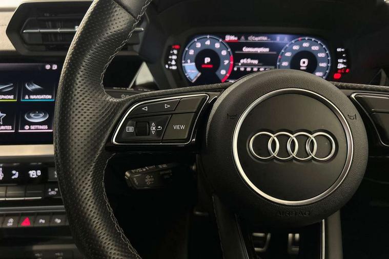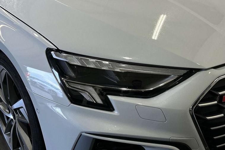 Accent surfaces in the dashboard and centre console in platinum grey silk effect paint finish, Dark spectrum aluminium inlays, Aluminium interior elements pack - A3 Sportback, Design body styling - A3 Sportback, LED interior lighting pack - A3 Sportback, Storage pack - A3 Sportback, Anti theft alarm, Anti-theft wheel bolts, Electronically operated child lock, Immobiliser, Remote control central locking, 2xUSB-C connection with data and charging functions, 6 passive loudspeakers, DAB Digital radio, 3x3 point rear seat belts, Audi pre sense front, Driver and front passenger airbag with passenger airbag deactivation, Electronic Stabilisation Control (ESC) including ABS, ASR and EDL, First aid kit with warning triangle and 2 safety vests, Front side airbags with head airbags and interaction airbag, Pre-sense front with pedestrian and cyclist detection, Seatbelt monitoring, Tyre pressure loss indicator, 3rd brake light, Acoustic glass windscreen, Aluminium window trim, Audi Beam uses LEDs to project the Audi S3 logo, Auto dimming frameless rear view mirror, Dual branch oval twin tailpipes in chrome plated finish, Electrically adjustable/heated/folding/dimming door mirrors with kerb view includes integrated LED indications + kerb view function for passenger side, Exterior mirror with aluminium look housing, Front electric windows, Headlight washers, Illuminated aluminium inserts front door sills with S logo, LED daytime running lights, LED headlights with LED rear lights and dynamic rear indicators, Light and rain sensors, Privacy glass - dark tinted rear window, rear door and side windows, Rear electric windows, Rear side air outlets in grained matt black, Rear side wing doors, Rear wiper, 12V socket and storage compartment in front centre console, 3 seat bench in 2nd row, 40/20/40 split folding rear seat bench with cupholder, Black cloth headlining, Dual zone electronic climate control, Fine Nappa leather upholstery with front sports seats S embossed logo, Front and rear centre armrest in leather, Front and rear headrests, Front/rear floor mats, Heated front seats, Height and reach adjustable steering wheel, Illuminated vanity mirror, Interior lighting - glove compartment light and right hand side, Luggage compartment floor covering, Manual boot compartment lid, Manually adjustable front seats, Seat side bolsters, Single front passenger seat, Stainless steel pedals and front footrest in black, Audi drive select (Auto, Comfort, Dynamic, Efficiency and Individual), Audi smartphone interface, Audi Virtual Cockpit - 10.25" digital and colour instrument cluster, Automatic start/stop system with recuperation, Bluetooth interface, Collision avoidance assistant, e-Call (emergency call), Lane departure warning system, MMI Navigation Plus with high resolution 10.1" colour touch screen display, Progressive steering, Service indicator, Trip computer, Voice control system with natural language interaction, Quattro permanent all wheel drive, S sports suspension,