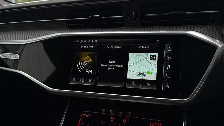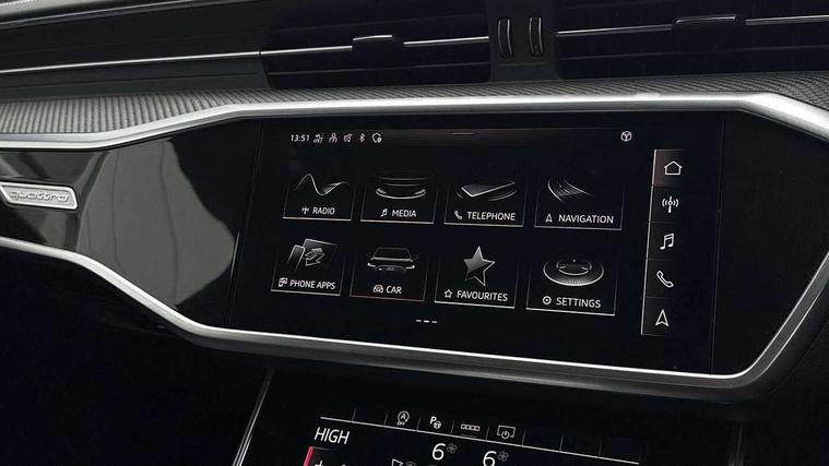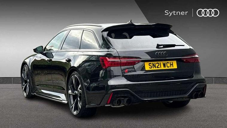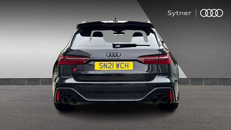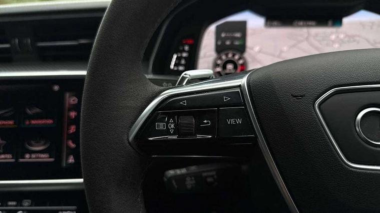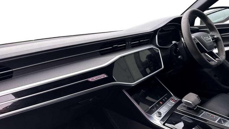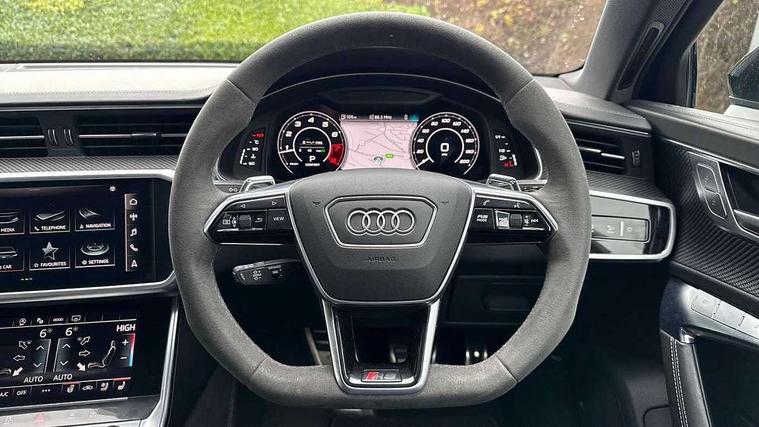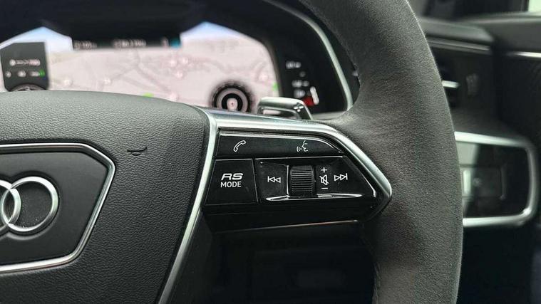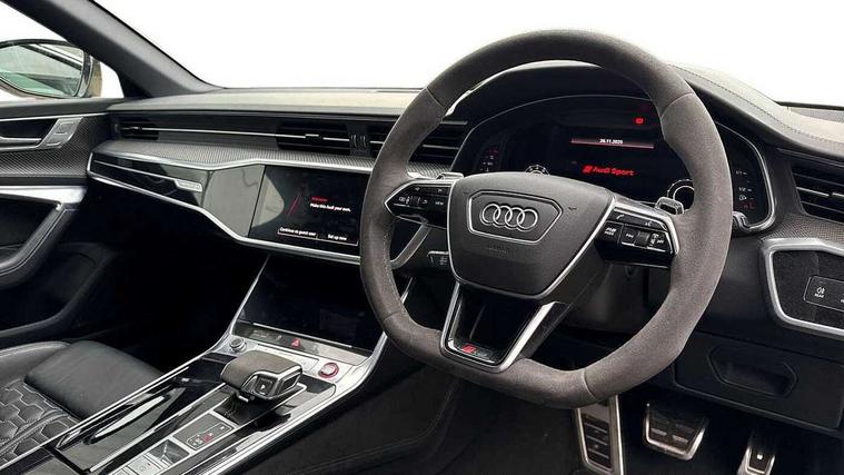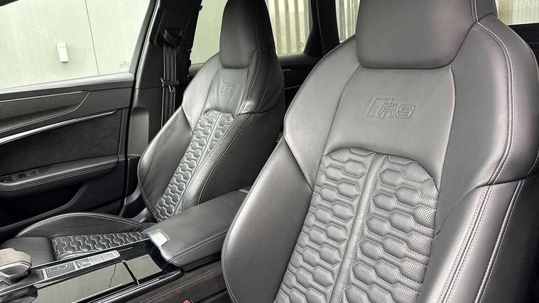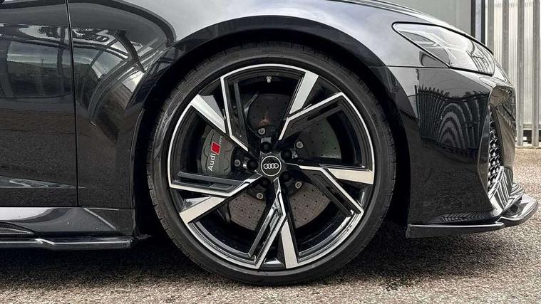 Audi connect safety and service (e-call), Audi connect with Amazon Alexa Integration, Audi drive select, Audi phone box with wireless charging, Audi smartphone interface includes wireless Apple carplay/Android Auto, Audi virtual cockpit plus with RS specific design and 12.3" display with additional graphic display options, Automatic start/stop system, Bluetooth interface, Dynamic all wheel steering, Lane departure warning system, MMI navigation with MMI touch + twin touch screens 10.1" and 8.6" with haptic and acoustic feedback, Operating buttons in black, glass look with haptic feedback including extended aluminium look, Power operated tailgate, Rear view camera, Service interval indicator, Voice control system, 73 litre fuel tank, Quattro sports differential, Audi music interface, Audi sound system, DAB Digital radio, Adaptive windscreen wipers with integrated washer jets, Black mirror caps, Body colour rear roof spoiler, Electric front/rear windows, Electrically adjustable, heated and folding door mirrors with integrated LED indicators and kerb view function for passenger side, Frameless auto dimming interior rear view mirror, HD Matrix LED headlights with Audi laser light with dynamic light design and dynamic turn signal, Headlight washers, Heat insulating glass in side and rear windows, Illuminated door sill trims with RS lettering, LED rear combination lamps with dynamic light design and dynamic turn signal, Privacy glass with rear/side windows and acoustic glazing side windows, Radiator grille in honeycomb structure, large front air inlets and rear diffuser in gloss black, Rain and light sensors, Rear wiper, RS front bumper with air inlets on both side, Wheel arch extensions, 4 way electric lumbar support for driver and front passenger, 4 zone deluxe automatic climate control, Aluminiium gear shift paddles, Audi Sport logo projection (Audi Beam) in front and rear, Black cloth headlining, Electric steering wheel adjustment, Electrically adjustable front seats with driver memory, Front and rear headrests, Front centre armrest, Front seat ventilation, Front/rear floor mats, Heated front seats, ISOFIX child seat mounting and Top Tether with front passenger airbag deactivation, Leatherette on upper instrument panel and door shoulders, RS Front sports seats, Stainless steel pedals and foot rest, Valcona leather upholstery with perforated honeycomb and RS lettering, Air quality pack - RS6, Carbon black styling pack - RS6, Extended LED interior multi coloured lighting pack - RS6, RS Grey design pack - RS6, Storage pack - RS6, 2 x 3-point rear seat belts, Airbags - Front side, front and rear including head, Audi pre-sense front, Direct tyre pressure monitoring system, EBD - Electronic brakeforce distribution, Electromechanical parking brake, Electronic Stability Control (ESC) including ABS, ASR and EDL, Extended pedestrian protection measures, Warning triangle and first aid kit, Anti theft alarm with tow away protection, Anti-theft wheel bolts and wheel loosening detection, Immobiliser, Keyless Go, Remote central locking, Carbon twill inserts, 22" Gloss black turned finish alloy wheels, Tyre repair kit,