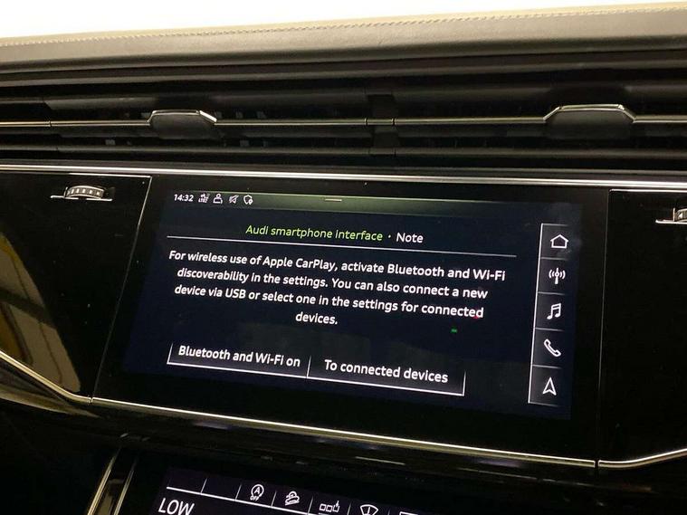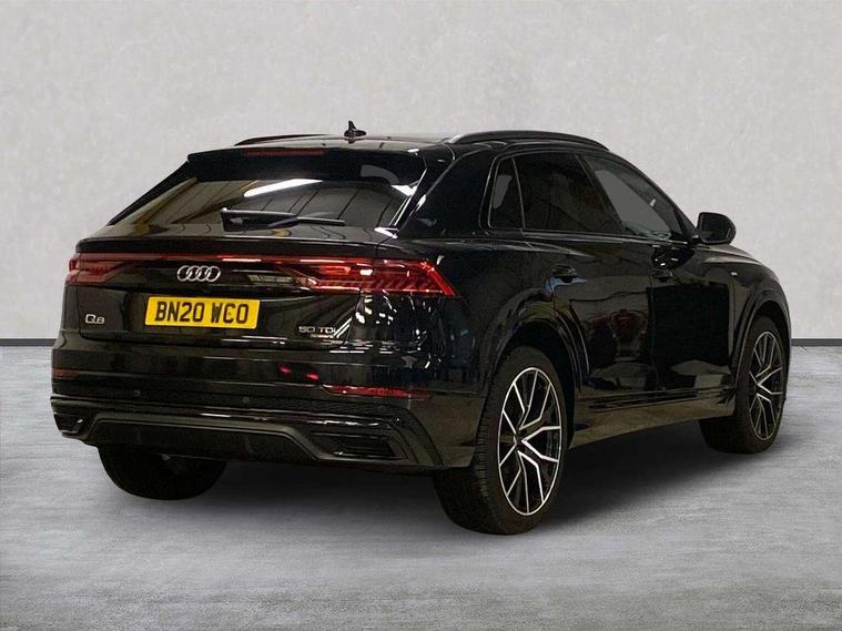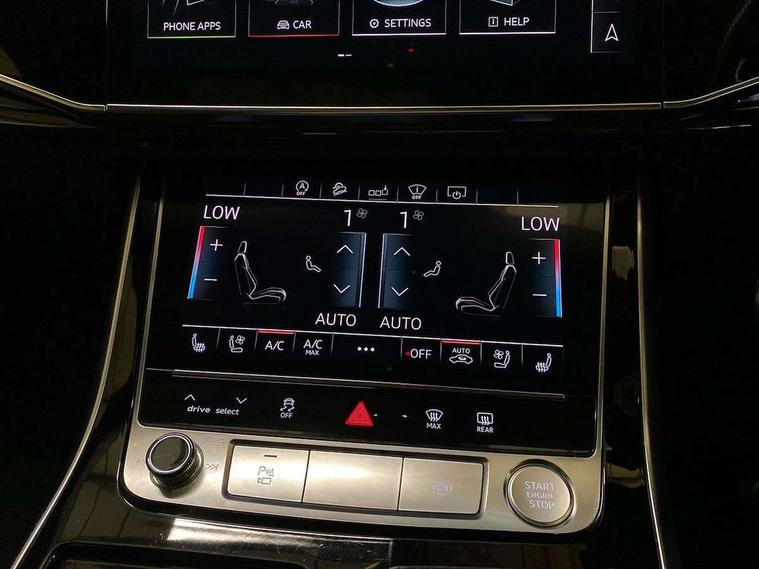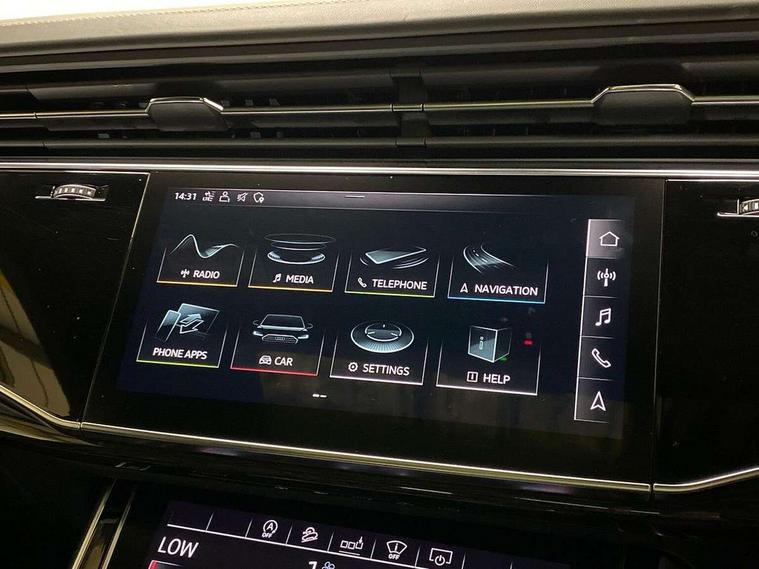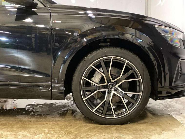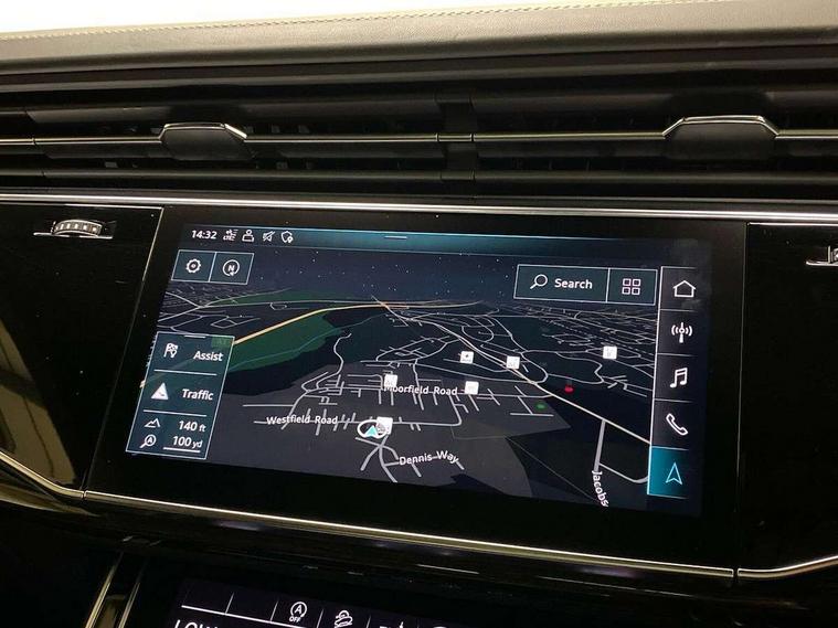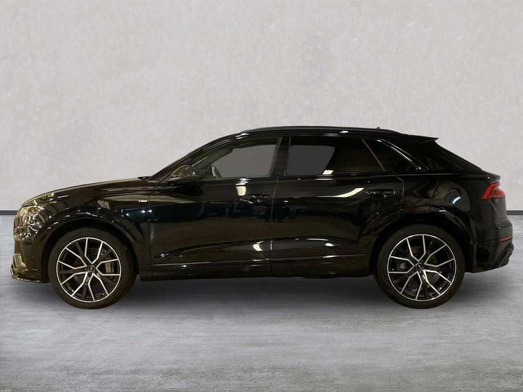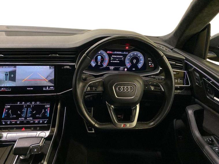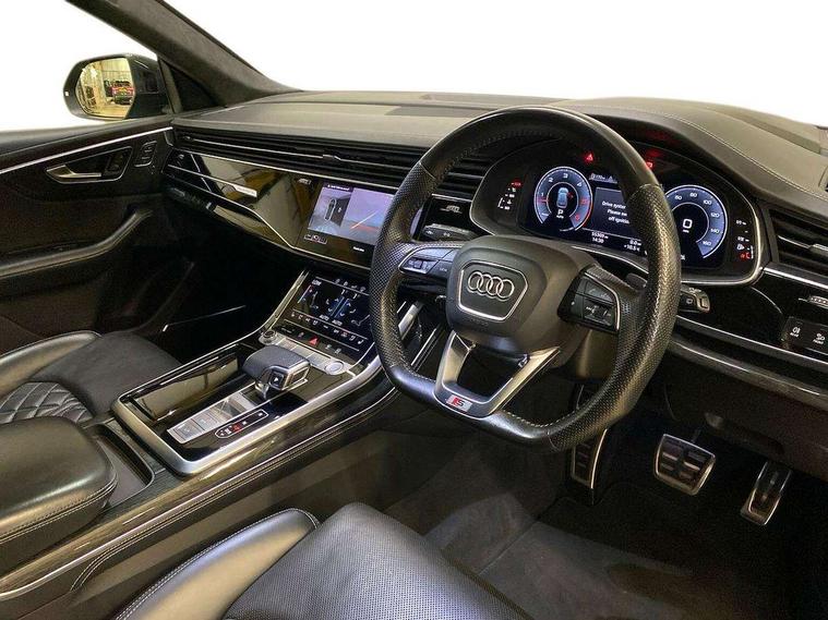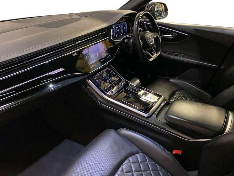 Polished oak trim with grey finish inlay, City assist pack - Q8, Comfort and sound pack - SQ8, Extended leather pack - Q8, Titanium Black Styling Pack - Q8, Tour pack - Q8, Tyre repair kit, Anti theft alarm with tow away protection, Anti-theft wheel bolts and wheel loosening detection, Immobiliser, Keyless go with remote central locking, Audi music interface at rear, Audi music interface with 2 USB ports with charge and data functions in the rear, Aux-in socket, DAB Digital radio, 3 point seatbelts on all seats, Audi pre sense front, Driver and front passenger, front side and curtain airbags, Electromechanical parking brake, Electronic Stability Control (ESC) including ABS, ASR and EDL, Front passenger airbag deactivation, Hill descent control, Hill hold assist, Predictive pedestrian protection, Seatbelt monitoring, Traction control, Tyre pressure loss indicator, Warning triangle and first aid kit, Acoustic windscreen, Adaptive windscreen wipers with integrated washer jets, Audi HD Matrix LED headlights with dynamic front and rear indicators, Auto dimming frameless rear view mirror, Coming/leaving home lighting function, Electric front+rear windows, Electric panoramic glass sunroof, Electrically adjustable/heated/folding/dimming door mirrors with kerb view includes integrated LED indications + kerb view function for passenger side, Headlight washers, Heat insulating glass in windshield, LED signature daytime running lights, Platinum grey front spoiler lip and diffuser insert with honeycomb grille in black, Privacy glass - dark tinted rear and rear side windows from B-pillar backwards, Rain and light sensors, Rear wiper, S line side ventilation grille, 3 spoke flat bottomed high multi-function leather sport steering wheel with gearshift paddles, 4 zone deluxe automatic climate control, 4-way lumbar support for front seats, 40:20:40 split folding rear bench seat, Black Alcantara headlining, Comfort front centre armrest, Double sun visor with illuminated vanity mirror on driver and passenger side extendable, Driver and front passenger seat memory function for electrically adjustable front seats, Electric adjustable steering column with memory functionality, Electric sunblind for the rear side windows and manual sunblind for the rear window, Front head restraints, Front/rear floor mats, Heated front and outer rear seats, ISOFIX child seat mounting for front passenger seat and 2 outer rear seats with top tether child seat mounting for all 3 rear seats, Luggage compartment sill protection in stainless steel, Massage and ventilation function for front seats, Rear centre armrest with 2 cupholders, Rear headrests, Rear seat bench plus, Self-locking centre differential, Stainless steel pedals, Tool kit, Valcona leather upholstery + super sports seats with S embossed logo, 10.1" and 8.6" Dual colour touchscreens, All wheel steering, Audi connect safety and service (e-call), Audi drive select, Audi parking system plus with front and rear sensors, Audi phone box with wireless charging, Audi smartphone interface, Audi virtual cockpit plus, Automatic start/stop system, Electro-mechanical PAS, Head up Display, Low washer fluid indicator, MMI - Multi Media Interface control system, MMI navigation plus with MMI touch, Natural voice recognition, On board computer, Operating buttons in black, glass look with haptic feedback, Power door closure, Power operated tailgate, Service interval indicator, Adaptive air suspension, Diesel particulate filter,