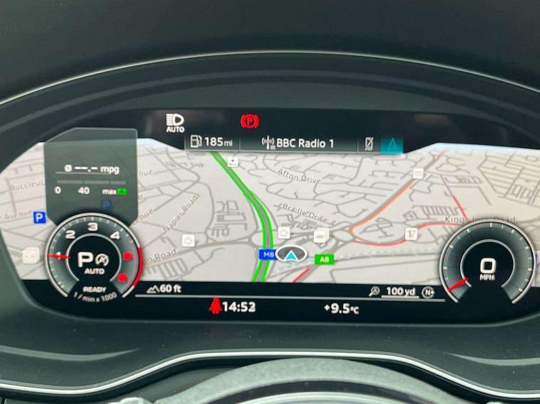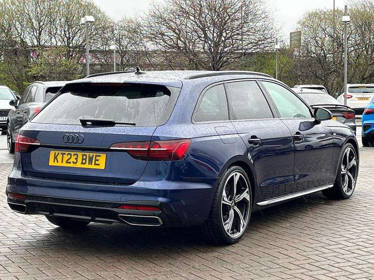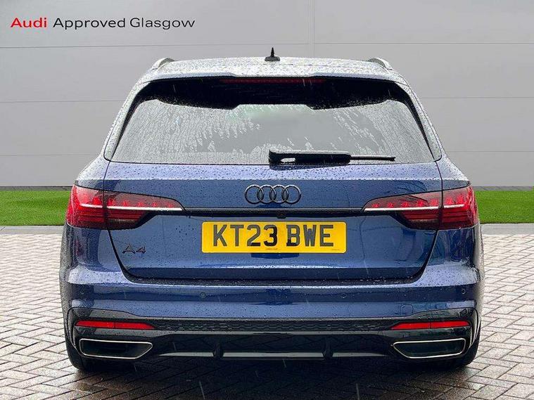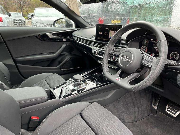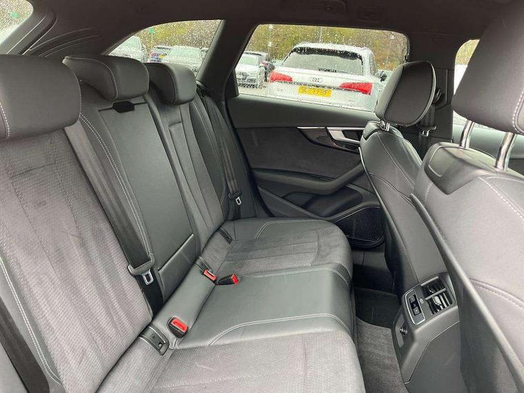 Piano black finish inlay, Black styling pack - A4 Avant, LED Interior light pack - A4/S4, Tyre repair kit, Anti theft alarm, Anti theft wheel bolts, Central locking, Keyless Go, 2 USB charging ports, 8 passive loudspeakers, DAB digital radio reception, 3 rear seatbelts, 6 airbags - Driver, front passenger, curtain and side windows, Attention and drowsiness assist, Electronic Stabilisation Control (ESC) including ABS, ASR and EDL, Hill hold assist, Multi collision brake assist, Pop-up bonnet for pedestrian protection, Pre sense city, Rear door child safety locks, Seatbelt monitoring, Warning triangle and first aid kit, Audi beam uses LEDs to project the audi logo onto the ground as you exit your A4, Auto dimming rear view mirror, Black Audi rings and black badging (model name in black badging, no engine badging), Body colour door handles, Body colour front spoiler lip, Body colour side sill trim, Electrically folding auto dimming/adjustable/heated door mirrors with LED side indicators and kerb view function for passenger side, Exhaust tailpipes in high dark chrome, Grained matt black side air inlets with matt aluminium silver inlay, High beam assistant, High gloss black B pillar trims and triangular rear door trim, LED headlights with LED rear lights + dynamic rear indicators + headlight adjustment and high beam, turning light + LED daytime running lights, LED third brake light, Privacy glass, Rain and light sensors, Rear diffuser in matt black with trim strip in matt aluminium silver, Rear side wing doors, Rear wiper, RS4 rear spoiler in body colour, S Line roof edge spoiler, Sport front and rear bumpers with side skirts, Variable intermittent front wash/wipe, Windscreen with acoustic glazing, 4 way electric lumbar support for driver and front passenger, 40/20/40 split folding 3 rear seat bench in 3 parts with rear centre armrest, Black cloth headlining, Black perforated leather gearknob, Contrast stitching on seats, steering wheel and gear lever gaiter, Deluxe 3 zone electronic climate control, Door sill trims with aluminium inlay, Electric load area cover, Front and rear head restraints, Front centre armrest, Heated front seats, Illuminated door sill trims with S logo, ISOFIX child seat mounting and top tether, Manual seat adjustment, Single front passenger seat, Stainless steel pedals and foot rest, Tool kit, Audi connect safety and service (e-call), Audi drive select, Audi smartphone interface, Audi virtual cockpit, Automatic start-stop system with coasting functionality and efficiency programme, Bluetooth interface, Camera based traffic sign recognition, Electromechanical power steering, Email, calendar and text messages displayed via MMI, Front and rear parking sensors, Lane departure warning, MMI Navigation plus with MMI touch includes 10.1" high resolution colour MMI display, 3D map, Power operated tailgate, Rear view camera, Voice control system, Sports suspension lowered by 23mm,