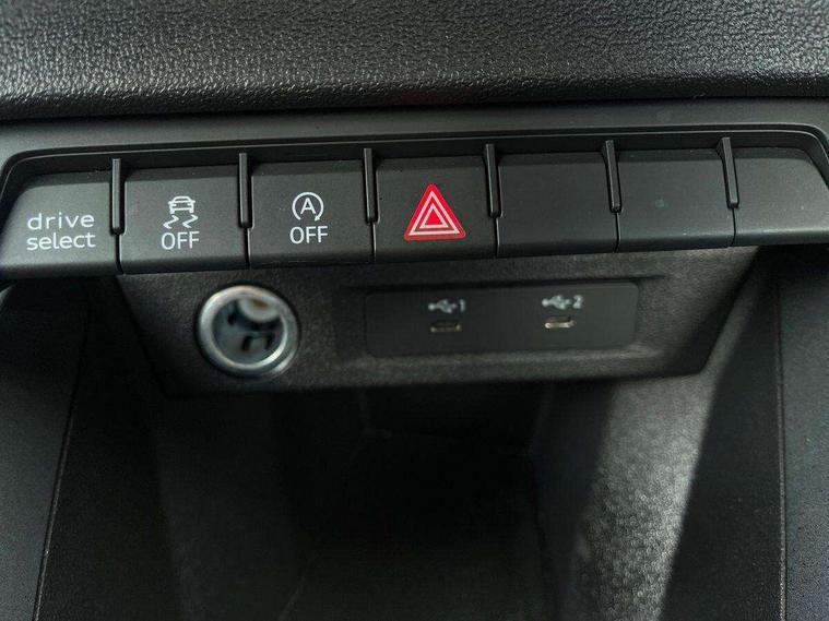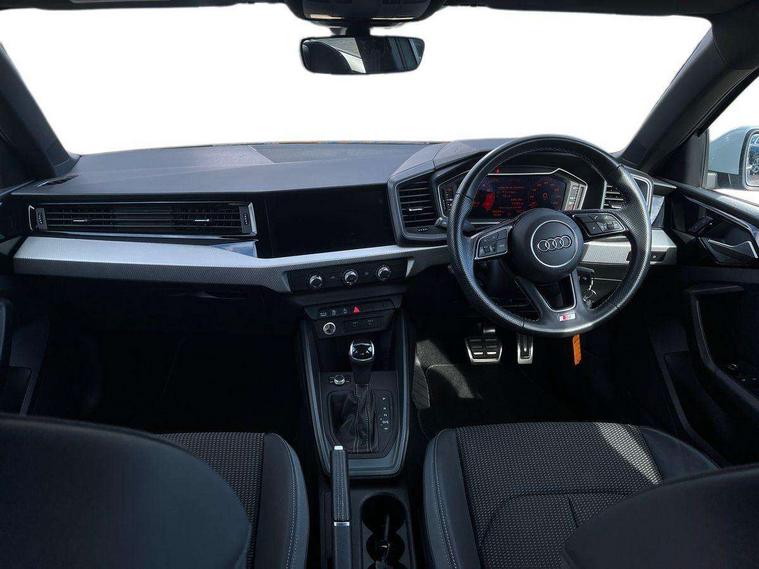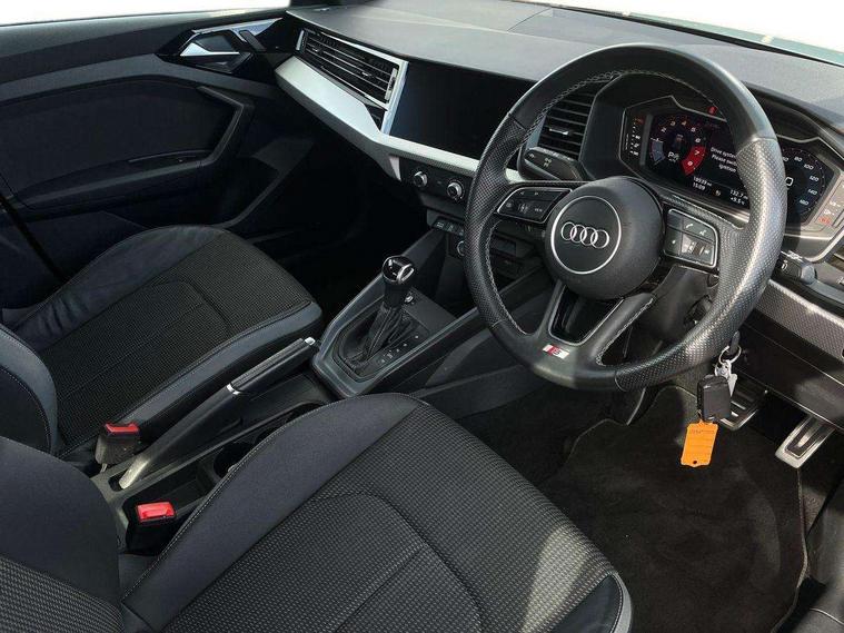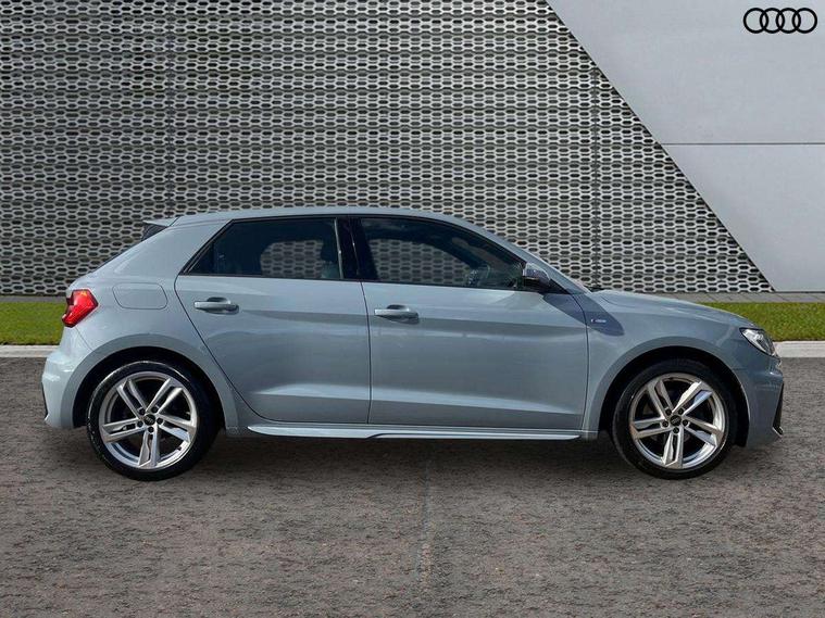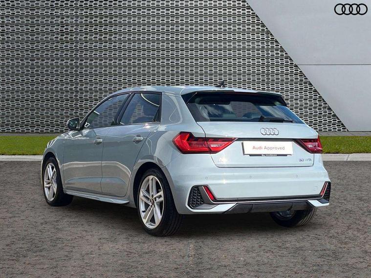 Aluminium trim for control switches, air vents and digital instrument cluster, Silver grey inlays polygon structure in diamond paint finish, Structured grey accent areas including air vents, door handle recesses and centre console in quartz paint finish, LED interior lighting pack - A1, Luggage compartment pack - A1, S line exterior styling pack - A1 Sportback, Anti theft alarm, Anti theft wheel bolts and loose wheel warning, Immobiliser, Remote central locking with 2 foldaway keys, 1 x SDXC card reader, 2 x USB type C connection points, DAB Digital radio, MMI radio plus with 8.8" colour MMI display screen and MMI touch, 3x3 point rear seatbelts, Audi pre-sense front with pedestrain and cyclist recognition, Brake assist function, Driver and front passenger airbag with front side and head airbags, Electronic Stability Control including ABS, EBD, ASR and EDL, Front passenger airbag deactivation switch, Hill hold assist, Manual rear child locks, Seatbelt height adjustment for front seats, Seatbelt monitoring, Tyre pressure warning light, Warning triangle and first aid kit, Auto dimming rear view mirror, Body coloured door mirrors, Door sills with aluminium inlays and S Line logo, Electric front and rear windows, Electrically adjustable, heated, folding door mirrors with integrated LED side indicator, Front side air inlets in grained matt black and C frame in anthracite black, Heat insulating glass windscreen and side windows, Heated rear windscreen, High level LED brake light, LED headlights with LED rear lights + dynamic rear indicators + headlight adjustment and high beam, turning light + LED daytime running lights, Radiator grille and rear diffuser in matt anthracite black, Radiator protective grille frame in matt aluminium silver, Rain and light sensors, Rear fog lights, Rear side wing doors, Rear wing door, Rear wiper, S line badges on front wings, Side front spoiler lips in grained matt black, 12V socket in centre console with two cup holders, 3 rear seats with headrests, 3 seat bench in 2nd row, 3 spoke leather multi-function plus steering wheel features S badging and grips in perforated leather with contrast stitching, 40:60 Split folding rear seat or folded fully, Black cloth headlining, Driver and passenger seat with manual height adjust with forward and backwards adjustment, Front and rear black floor mats with contrast stitching in fine silver, Front head restraints, Front passenger seat, Height and reach adjustable steering wheel, ISOFIX child seat mounting for front passenger and outer rear seats including top tether attachment point of outer rear seats, Leather gear knob with aluminium trim, Luggage compartment light with front and rear reading lights, Manually adjustable lumbar support in front seats, Stainless steel pedals, 10.25" Digital instrument cluster display classis style instrument dials + speed, odometer, time, outside temperature, telephone menu + fuel level warning, Audi drive select - power steering assistance + engine + gear shift 3 preset modes (auto, dynamic, efficiency and an Individual mode), Audi smartphone interface with connect compatible smartphone via USB directly MMI display + Nav, music, third party apps controlled via MMI controller, Automatic start/stop system, Bluetooth interface, Cruise control, Driver's information system, Electromechanical power steering, Emergency e-call, Emergency services call system, Lane departure warning system, Service interval indicator, Speed limiter, Voice control system, Washer fluid level indicator, Sports suspension,