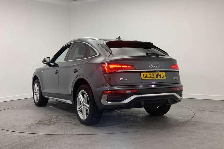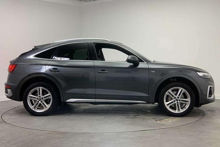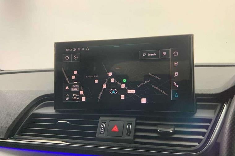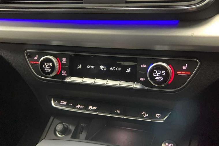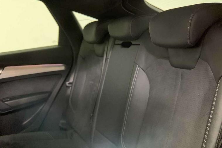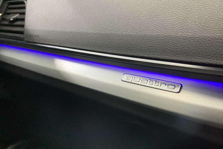 Air vents inserts and centre console in gloss black, Matt brushed aluminium inlays, High gloss pack - Q5, LED interior light pack - Q5, Tyre repair kit, Anti theft alarm, Anti-theft wheel bolts, Remote central locking, Remote control key with SAFELOCK and keyless go, 8 loudspeakers, DAB Digital radio, 3 point seatbelts on all seats, 6 airbags - Driver, front passenger, curtain and side airbags, Attention and drowsiness assist, Electrically operated child locks on rear doors, Electromechanical parking brake, Electronic stabilisation control including ABS, ASR and EDL, First aid kit with warning triangle and vests, Front passenger airbag deactivation, Hill descent control, Hill hold assist, ISOFIX child seat mounting for front passenger seat and ISOFIX child seat mounting with Top Tether for outer rear seats, Multi collision brake assist, Pop-up bonnet for pedestrian protection, Pre sense city, Seatbelt monitoring, Tyre pressure warning, 3rd brake light, Acoustic windscreen, Aluminium roof rails, Auto dimming door mirrors, Auto dimming frameless rear view mirror, Automatic headlight adjustment, Automatic headlights and windscreen wipers, Body colour bumpers, Body colour door mirrors, Body colour rear diffuser with matt aluminium silver surrounds, Body colour underbody protection, Chrome plated exhaust trims, Daytime running lights, Door sills in Selenite silver, Electric adjustable/heated/folding door mirrors, Front air inlet surrounds in aluminium, Front and rear electric windows, Front radiator grille in honeycomb design, LED headlights and LED tail lights, Lower bumpers painted in contrast Manhattan grey, Rear chrome trim strip below lights, Rear privacy glass and rear side windows, Rear side wing doors, Rear wiper, Roof bars, S Line badges on the front wing panels, S Line front and rear bumpers, S Line rear spoiler, S Line side skirts, 2 x USB charging port with aux input socket, 3 rear headrests, 3 spoke leather multifunction steering wheel with S badging perforated leather grips, Black cloth headlining, Comfort front centre armrest, Contrast stitching on seats, steering wheel and gear lever gaiter, Deluxe 3 zone electronic climate control, Front head restraints, Front sport seats with S embossed logo, Front/rear floor mats, Gear lever in black leather, Heated front seats, Height/reach adjustable steering column, Illuminated door sill trims with S logo, Loading edge protection in stainless steel, Luggage compartment cover, Manual seat adjustment with 4-way electric lumbar support, Single front passenger seat, Stainless steel pedals, Sunvisors with vanity mirrors, Tool kit, Acoustic front and rear parking sensor, Audi connect safety and service (e-call), Audi drive select, Audi virtual cockpit plus with 12.3" screen and three different layout designs, Audi wireless smartphone interface, Automatic start-stop system with coasting functionality and efficiency programme, Bluetooth interface, Camera based traffic sign recognition, Electro - mechanical power assisted steering, Lane departure warning, MMI navigation plus with 10.1" touch screen, Power tailgate, Reversing camera, Service interval indicator, Voice control system with Audi hotword activation "Hey Audi", Quattro on demand, S line sports suspension,