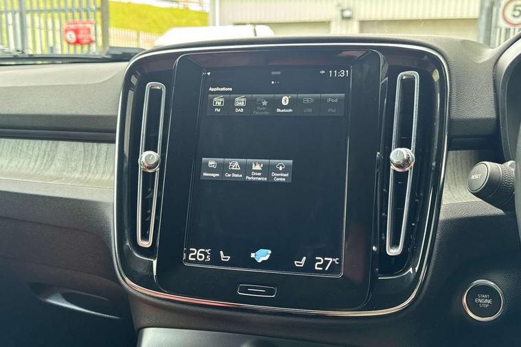 12.3" Active TFT crystal driver's instrument display, 9" centre console portrait touch screen, Adjustable steering wheel force, Bluetooth hands free telephone kit, Drive mode selector, Lane keep assist with driver alert control, Oncoming Lane Mitigation, Sensus navigation with European mapping and traffic information, Speed limiter, Speed sensitive steering, Voice activated control for key functions, Volvo on call, Dynamic chassis, DAB Digital radio, Steering wheel mounted remote controls, Active bending headlights, Adaptive brake lights with high level LED brake lights, Auto dimming interior mirror, Automatic headlamp levelling, Chrome window surround, Colour coordinated auto folding and heated power door mirrors, Dual exhaust pipes, Front aluminium tread plates, Front and rear electric windows, High gloss black front grille with chrome inserts, High gloss black sensus surround deco, High Gloss silver front and rear skid plate, Home safe and approach lighting, LED front fog lights with static cornering light function, LED Headlights + Active high beam incorporating daytime running lights, Rain sensor with automatic windscreen wiper activation, Rear side wing doors, Rear wiper, Roof antenna, Roof spoiler, Silver roof rails, Visible VIN plate, 12V socket in front tunnel console and cargo compartment, 2 zone electronic climate control and rear air vent, 3 seat bench in 2nd row, 3 spoke leather steering wheel with chrome trim, 60/40 split folding rear seat, Ambient front door and instrumental panel lighting, Bright metal luggage threshold, Centre console cupholders and storage, Driver's side lower dashboard credit card storage compartment, Front door pocket and front cupholder illumination, Front footwell illumination, Front headrests, Front reading light and theatre lighting, Front tunnel net pocket and integrated waste bin, Glovebox bag hook, Height/reach adjustable steering column, High gloss centre tunnel deco, Illuminated glovebox, Illuminated luggage compartment, Illuminated tailgate, Illuminated vanity mirrors, Isofix attachments on rear seats, Key integrated remote, Leather faced upholstery, Load protection net, Luxury floor mats, Multi directional lumbar support, Multicolour theatre lights, Orrefors Crystal Gear Lever Knob, Rear armrest / integral cup holders / storage tray, Rear coat hook, Rear reading and courtesy lights, Single front passenger seat, Underfloor cargo storage, Power seat pack - XC40, 3x3 point rear seatbelts, City safety includes pedestrian, cyclist and large animal detection and front collision warning with full auto brake, Drivers knee airbag, Dual stage driver/passenger airbags, Electronic parking brake with auto hold, First aid kit, Front and outer rear seatbelt reminder and pretensioners, Front seats SIPS airbags, Hill descent control, Hill start assist, Inflatable curtain, Passenger airbag cut-off device, Road sign information display, Run off Road Mitigation, Run off Road Protection, SIPS (Side Impact Protection System), Slippery road and hazard light alert, Stability and Traction Control with Spin control, Engine Drag Control and Corner Traction Control, Tyre pressure monitoring system, Vehicle deceleration control with Anti-lock Brake System, Electronic Brake Distribution and Emergency Brake Assist, Warning triangle, WHIPS whiplash protection system - front, Anti-theft alarm including immobiliser/volume sensor + level sensor, Care key with user defined top speed, Key integrated remote control central locking + fuel flap with deadlocking system and auto open/close power windows, Locking wheel nuts, Private locking for tailgate, Driftwood inlays,